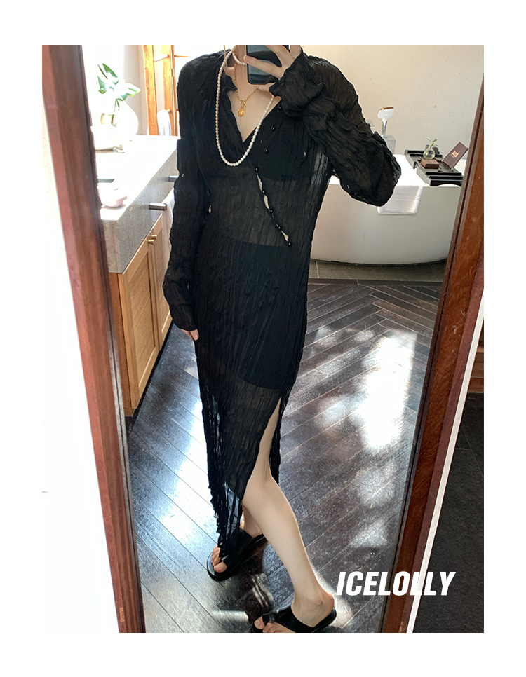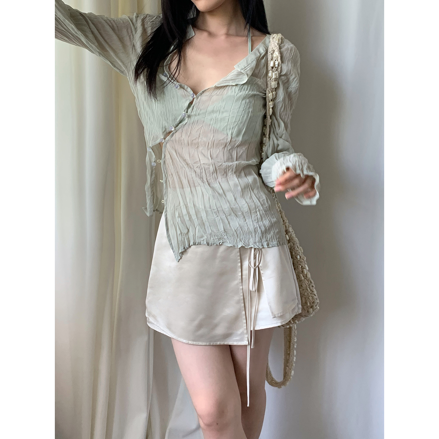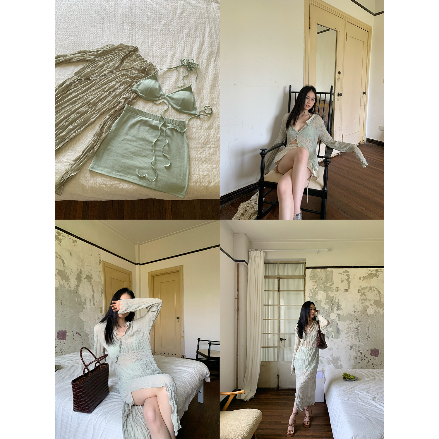顏色分類 豆蔻綠 襯衫(送比基尼).,暮色黑 襯衫(送比基尼).,豆蔻綠洋裝(送比基尼+打底半裙).,暮色黑洋裝(送比基尼 +打底半裙).