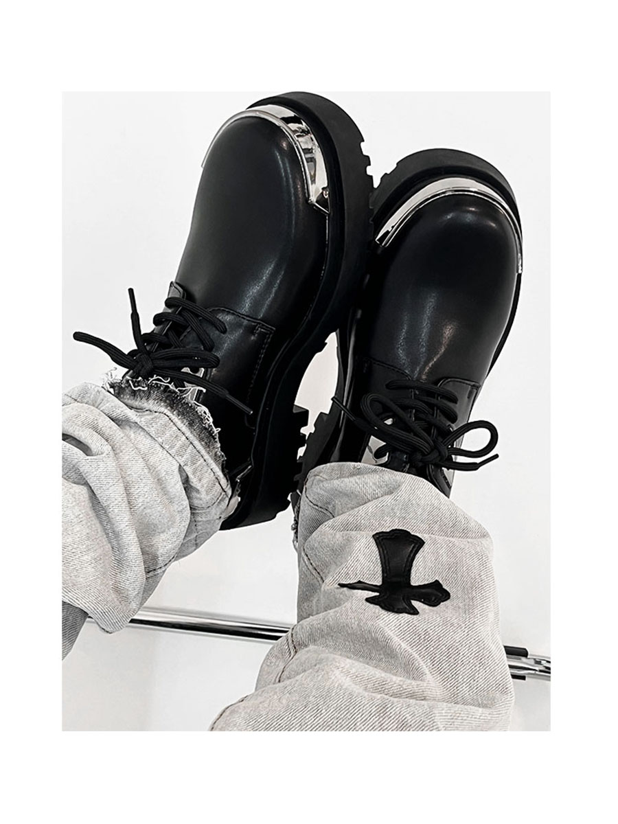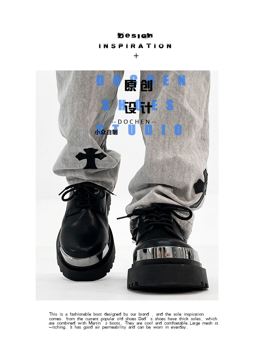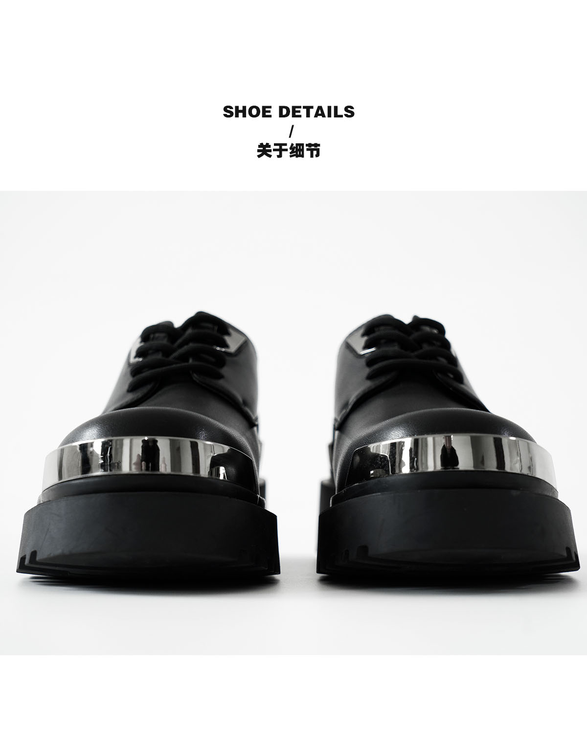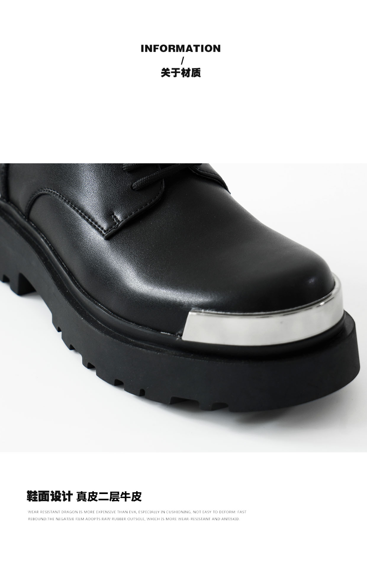 真皮高級感德比鞋男圓頭英倫風厚底增高皮鞋小眾高街情侶大頭鞋女