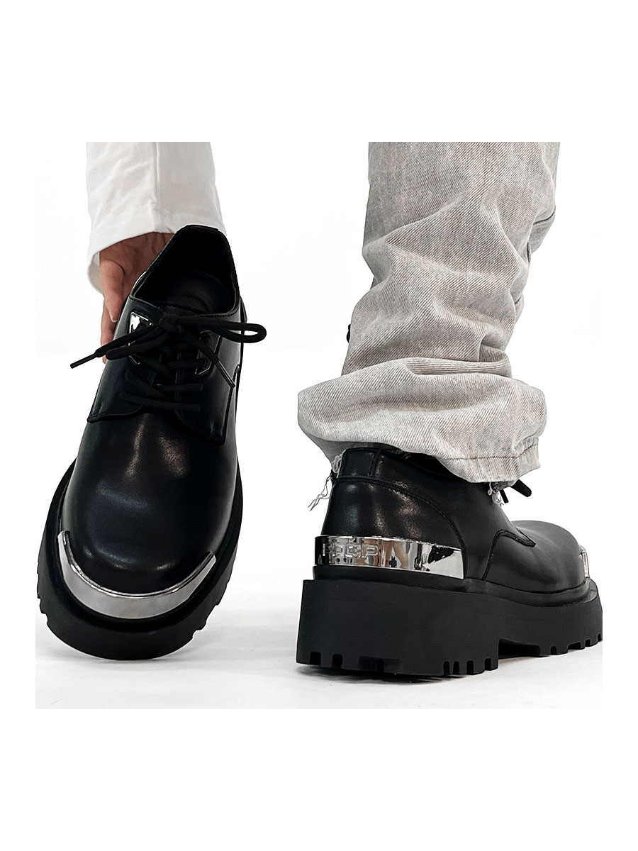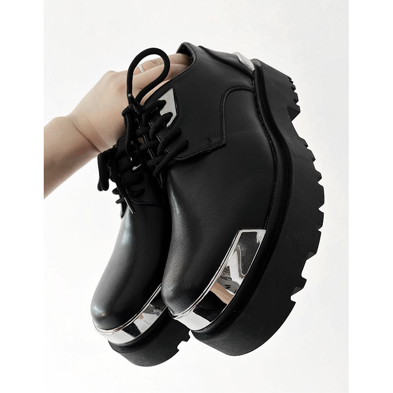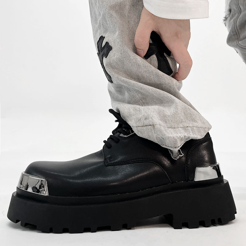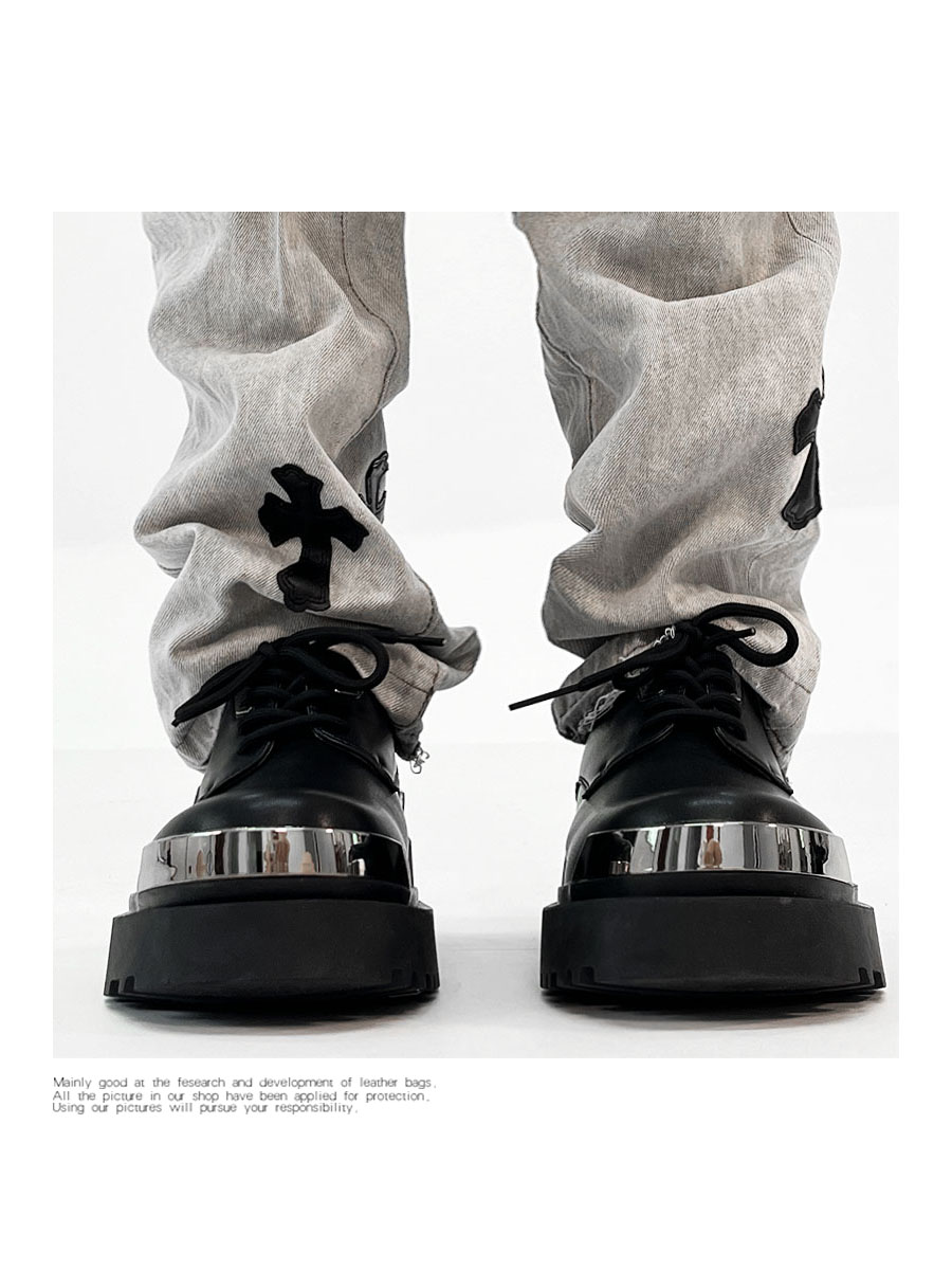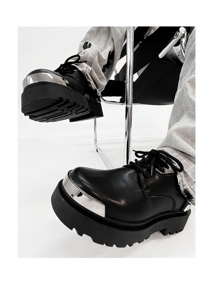 真皮高級感德比鞋男圓頭英倫風厚底增高皮鞋小眾高街情侶大頭鞋女