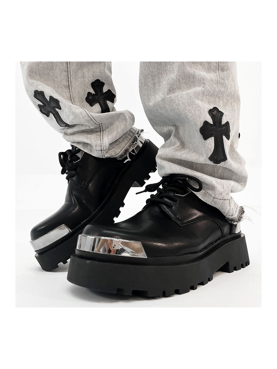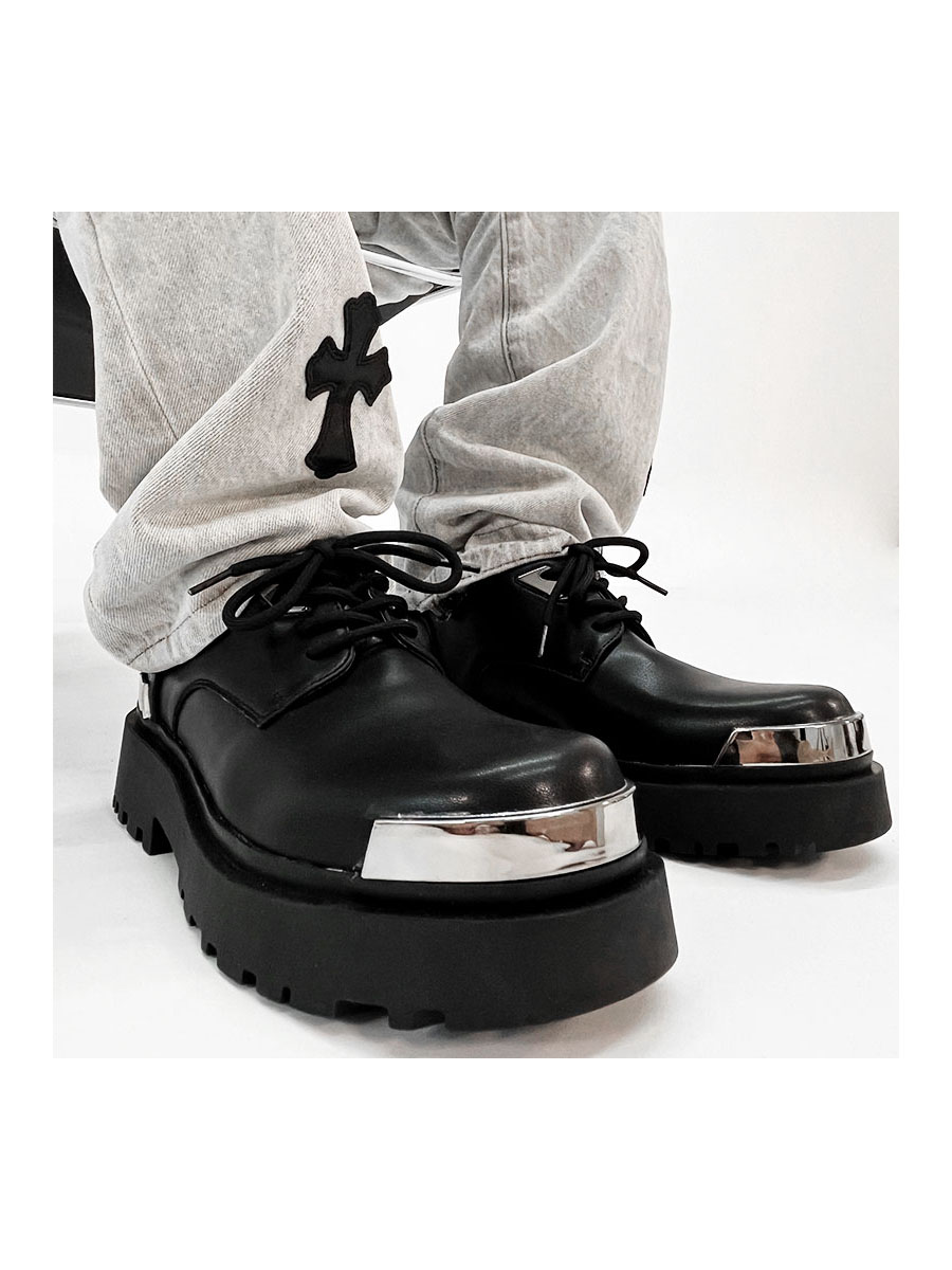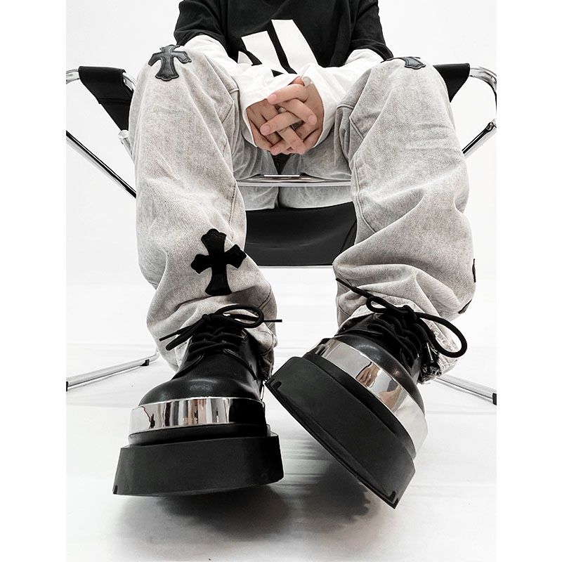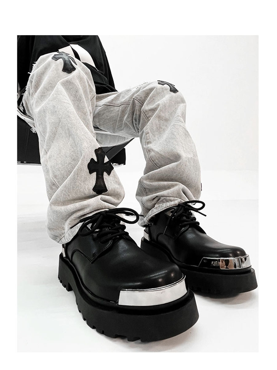 真皮高級感德比鞋男圓頭英倫風厚底增高皮鞋小眾高街情侶大頭鞋女