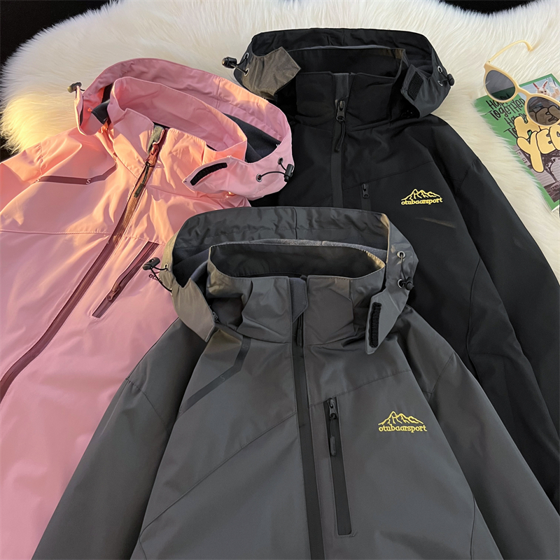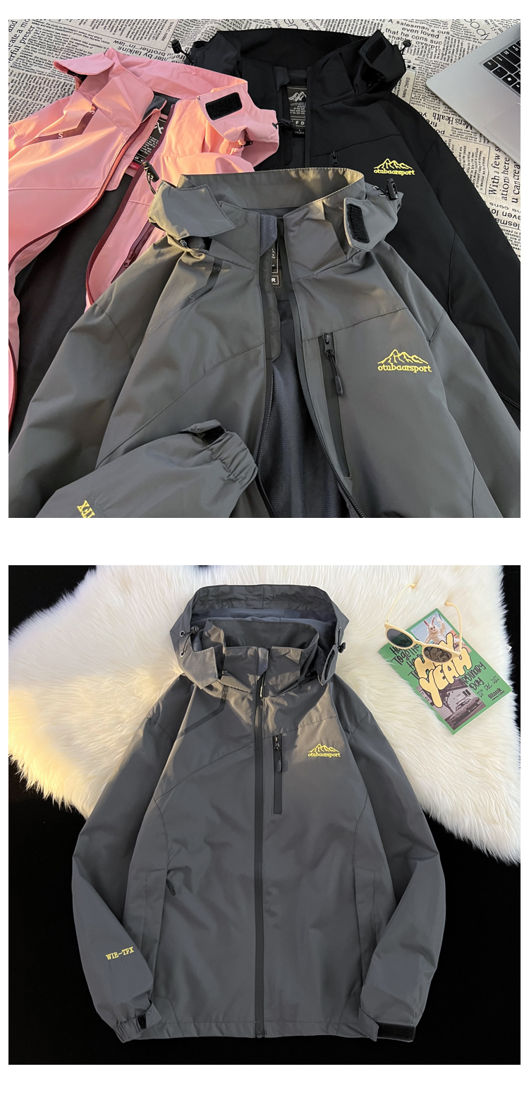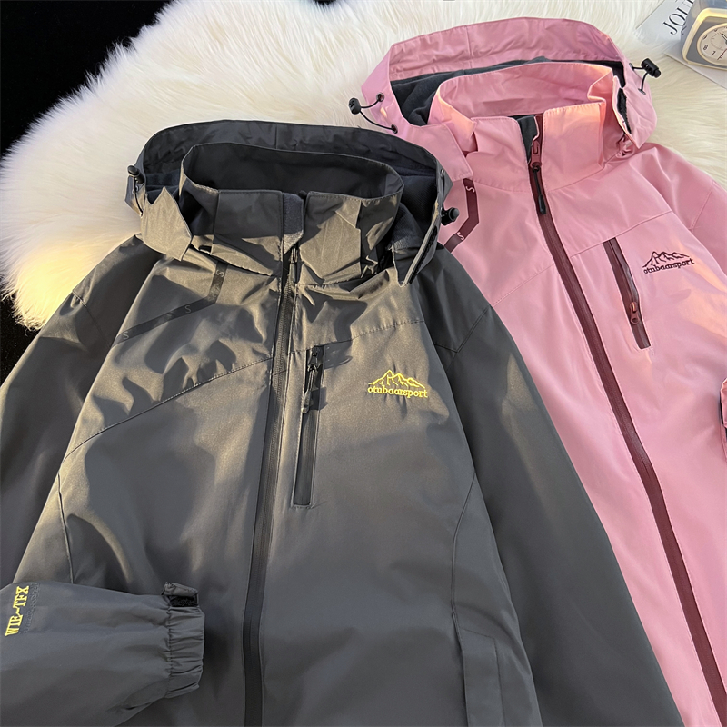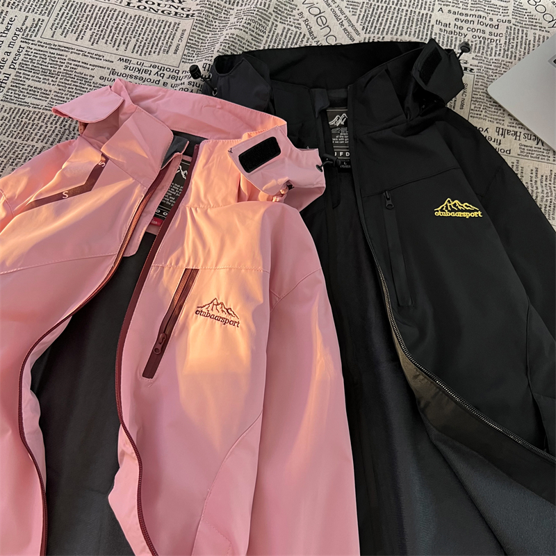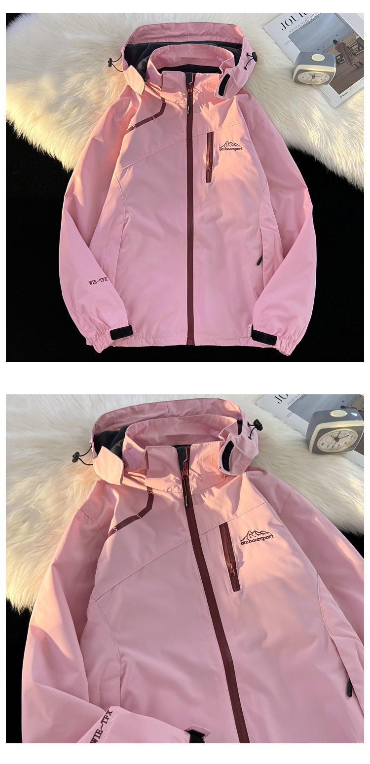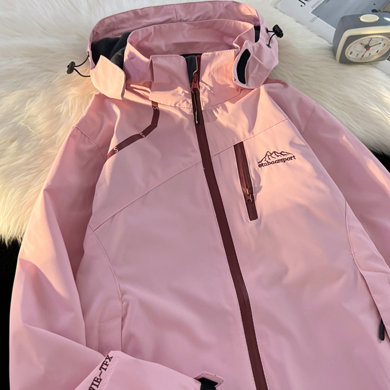 vintage美式衝鋒衣外套女春秋款粉色國潮機能防水防風小眾夾克衫
