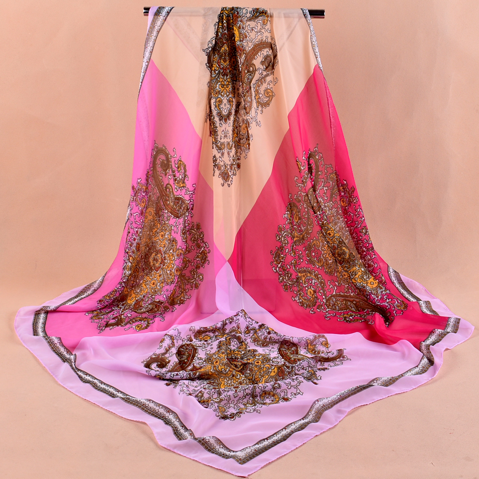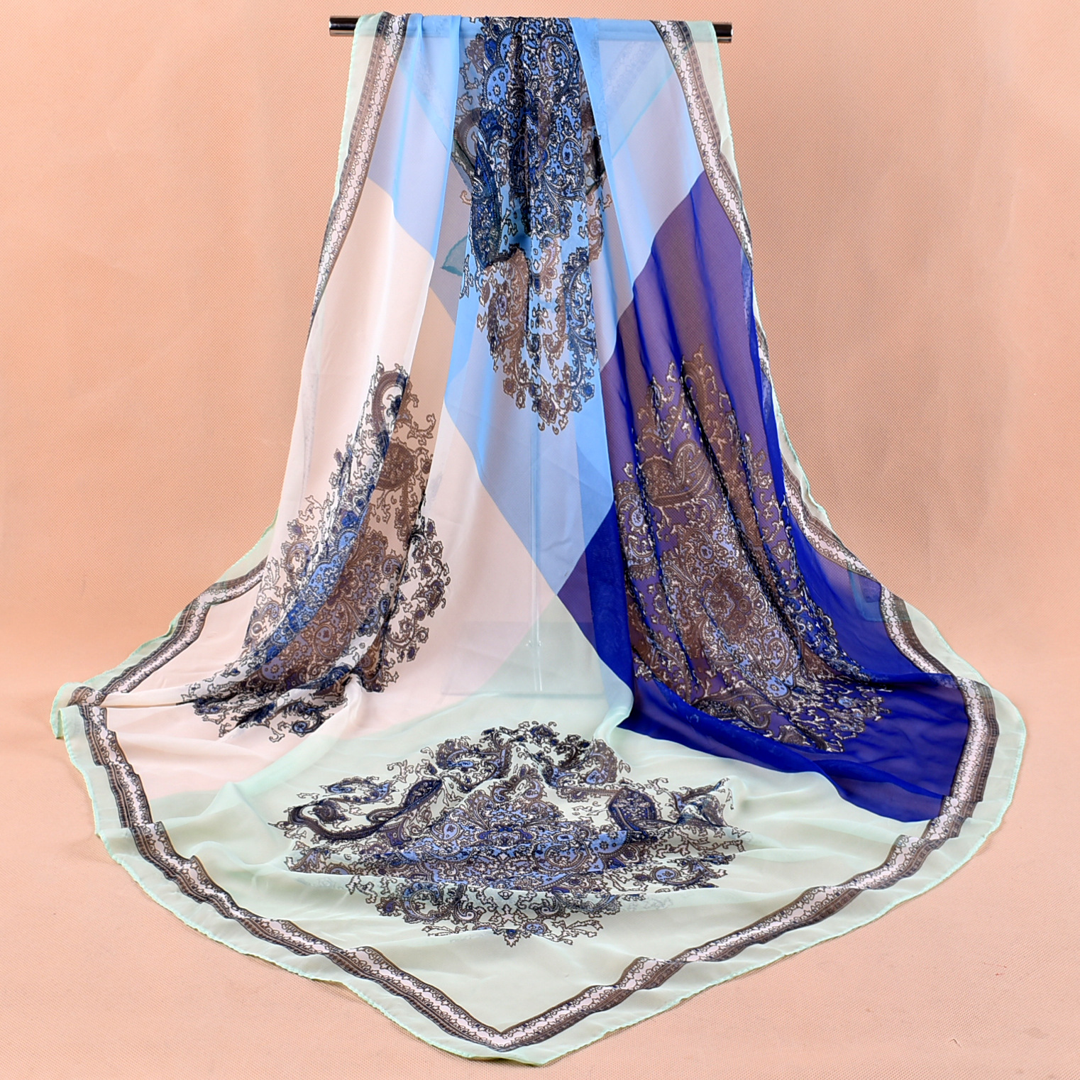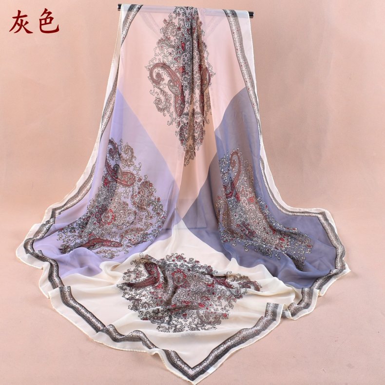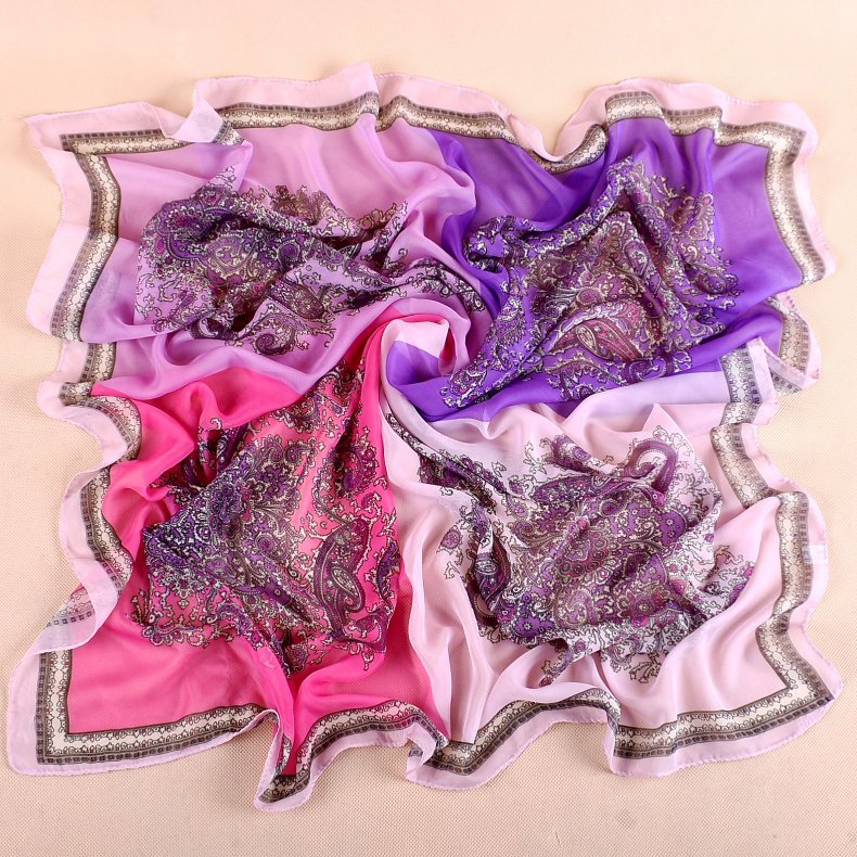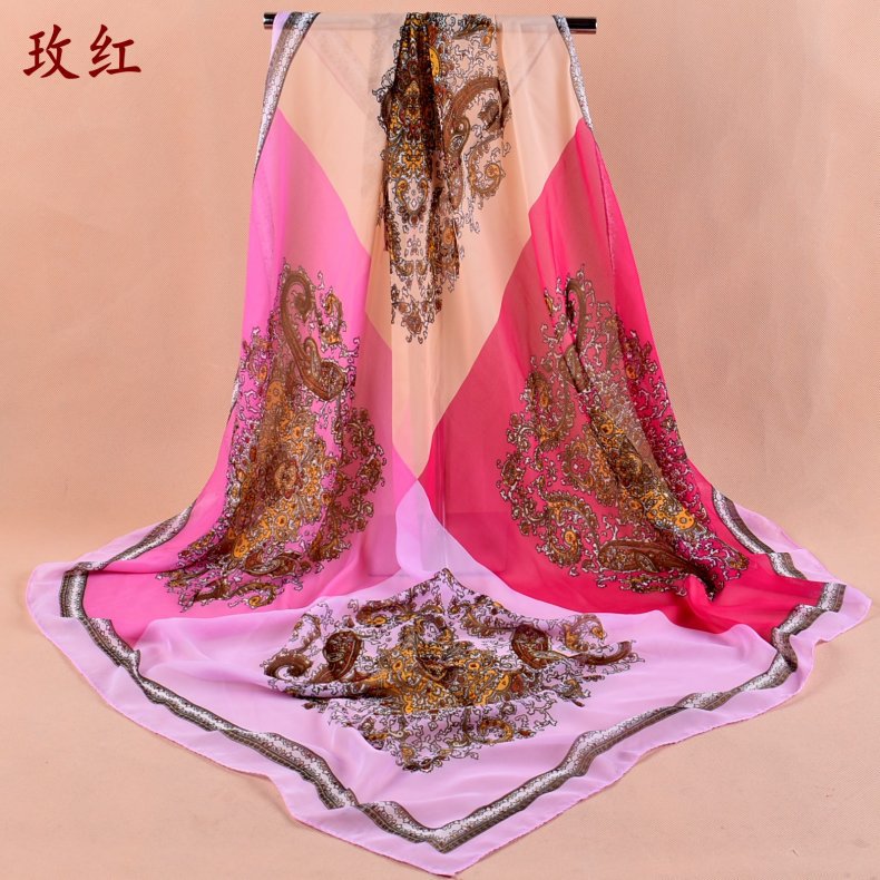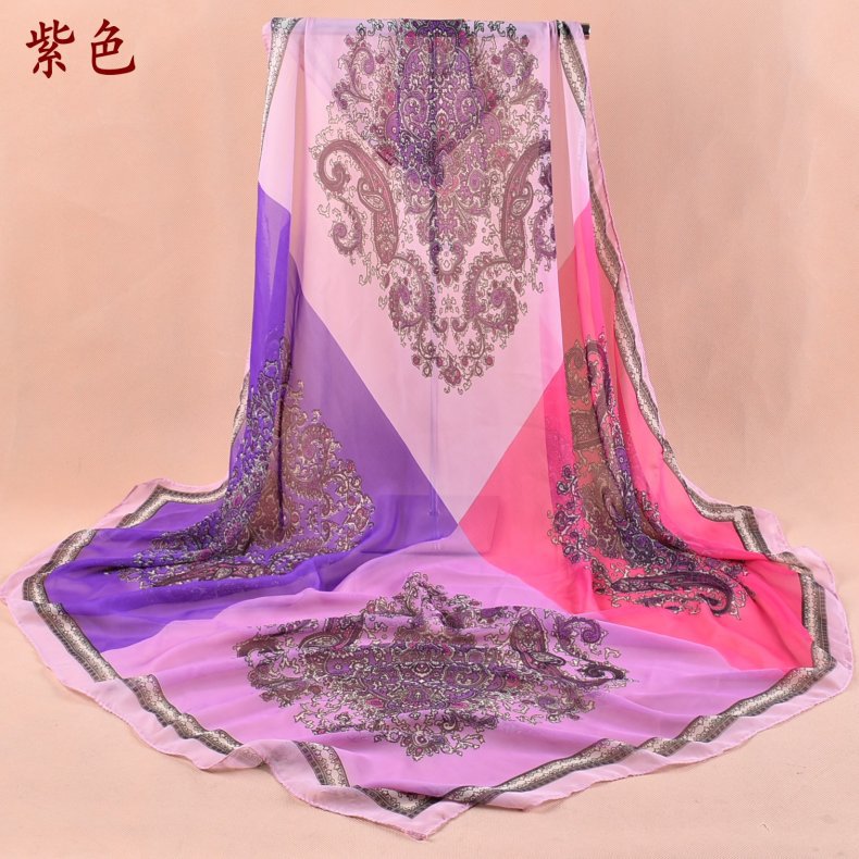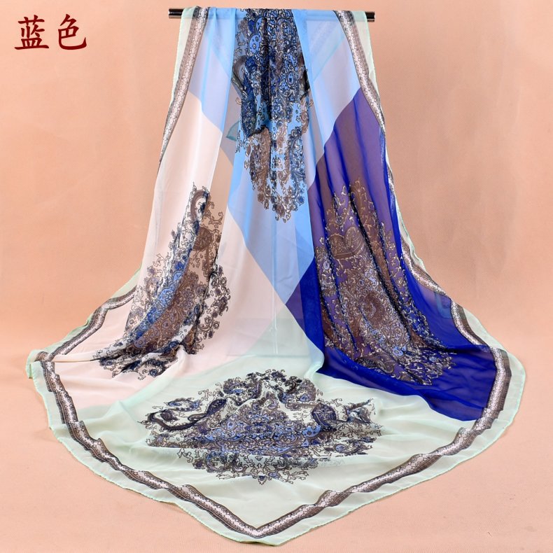 新款时尚佩里斯花纹腰果雪纺沙滩方巾女中国风丝巾批发