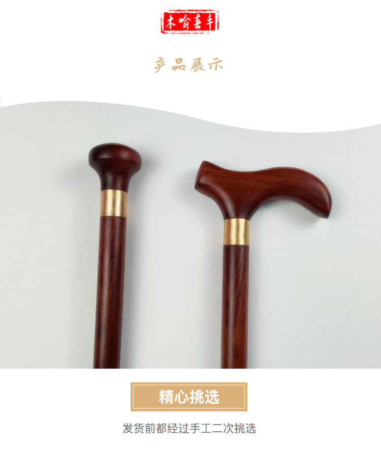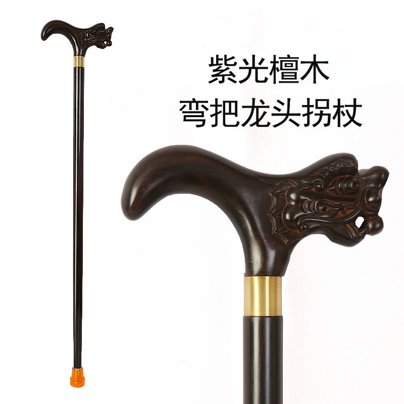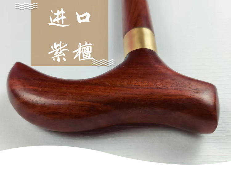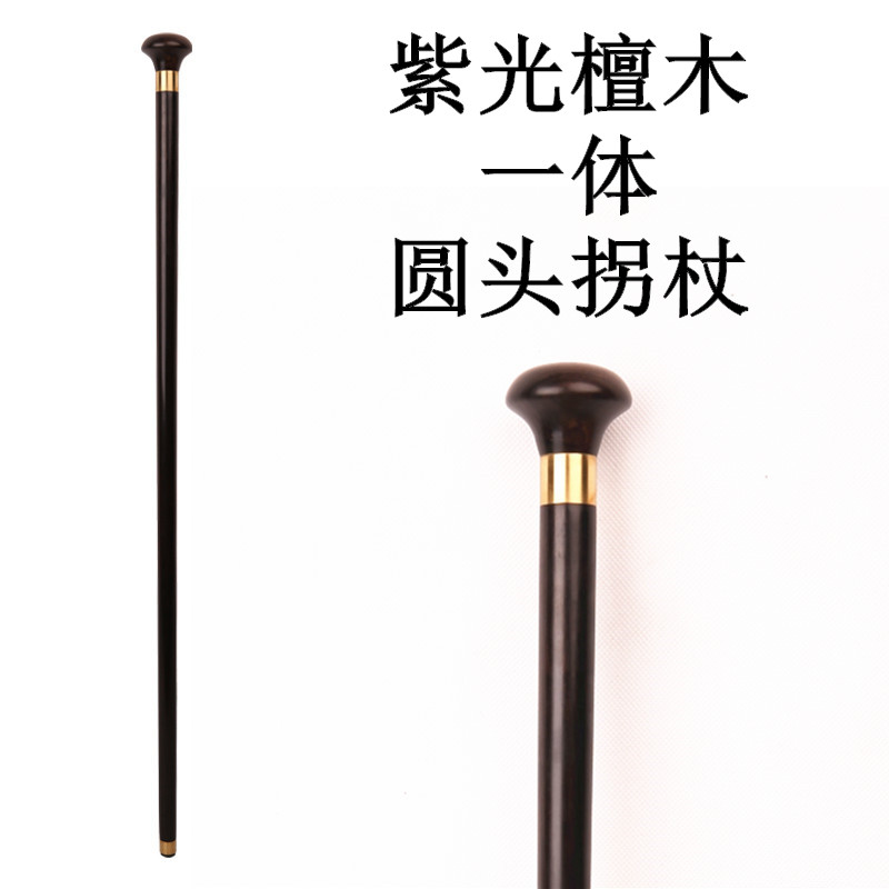 央選實木烏木紫光檀木老年防滑柺杖圓頭柺棍老人紅木手杖木質文明