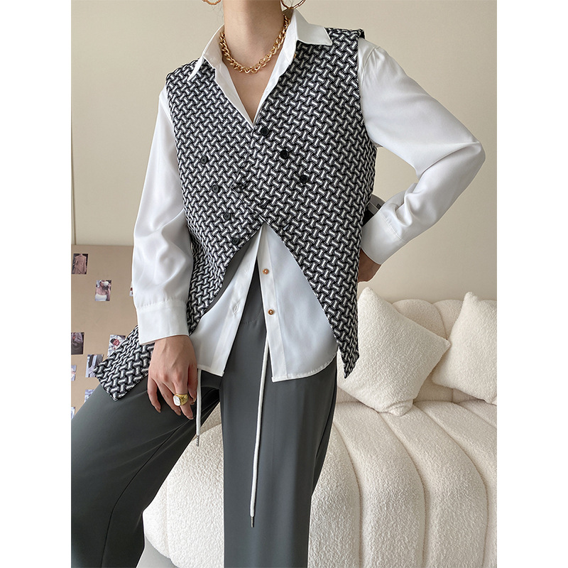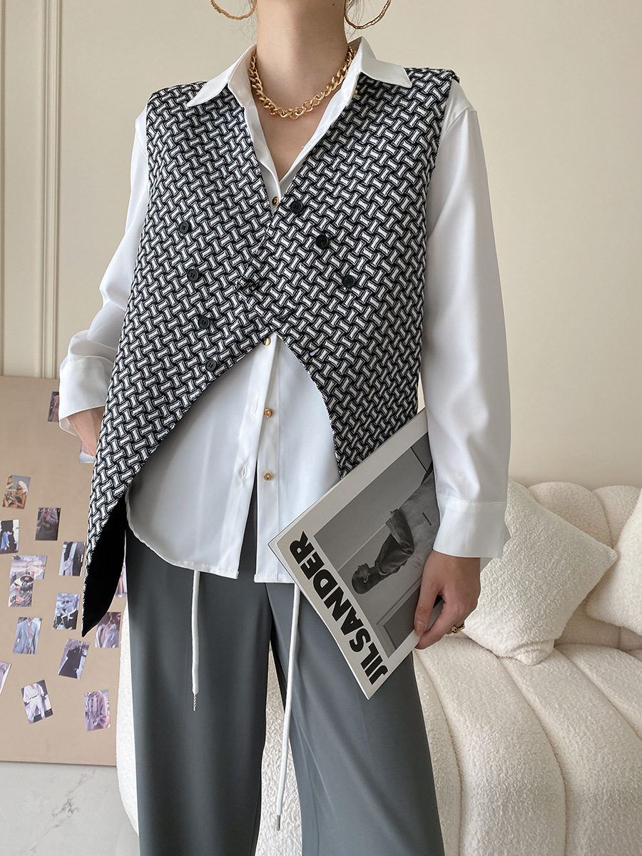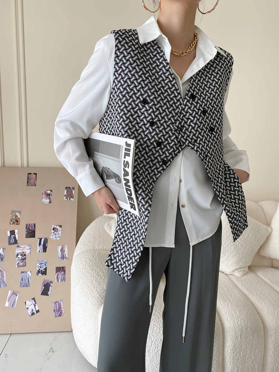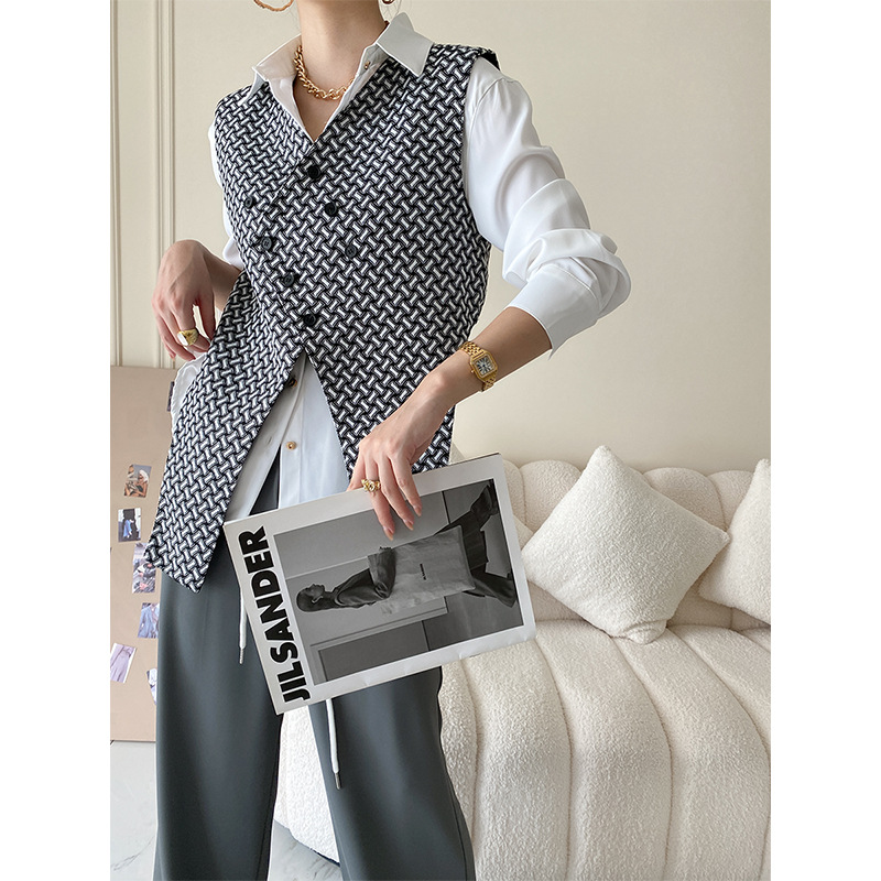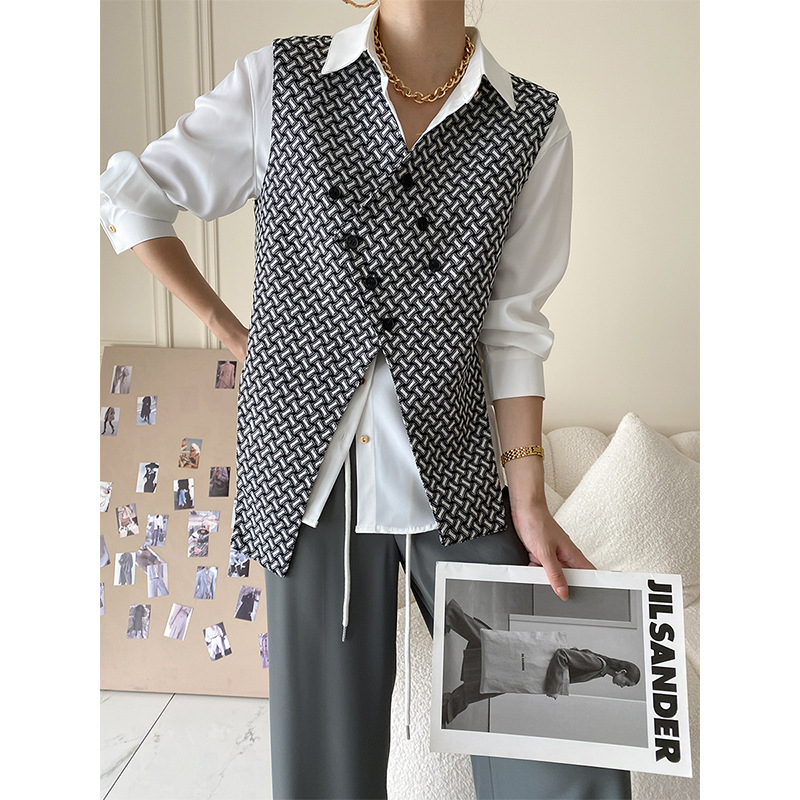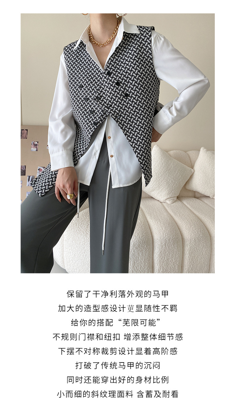司南 不规则设计感格纹V领马甲叠穿设计感2022年秋季新款 SN1830