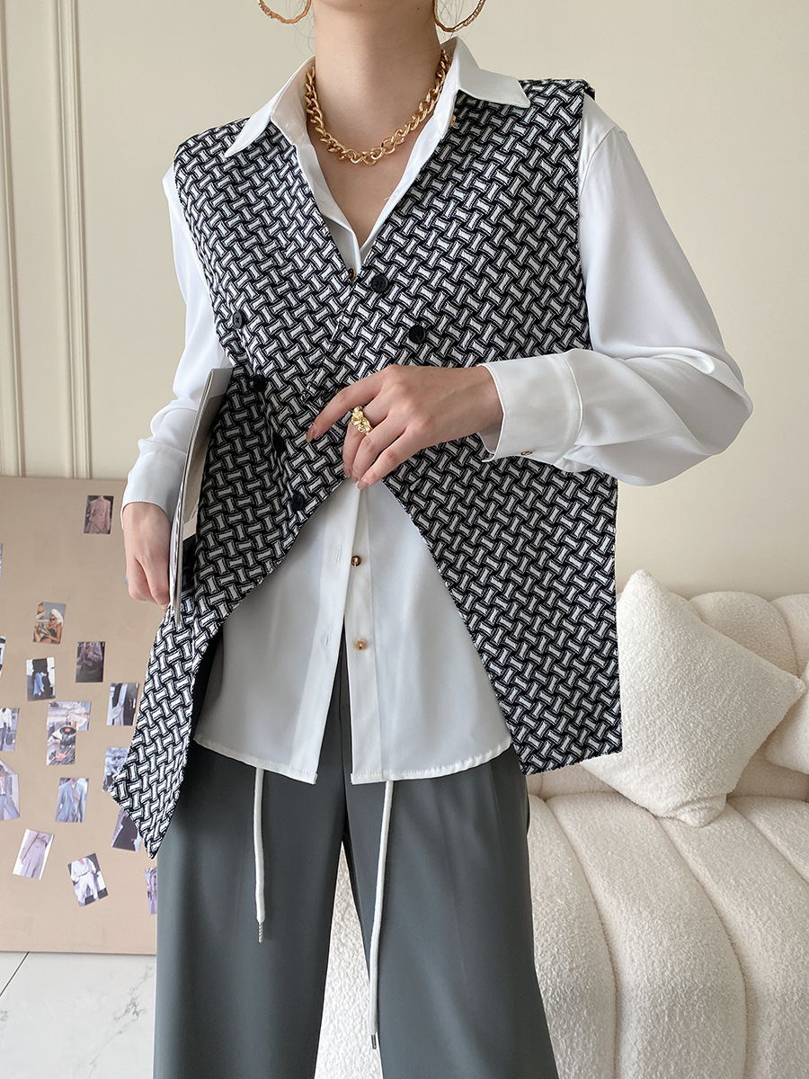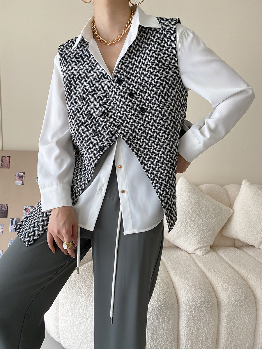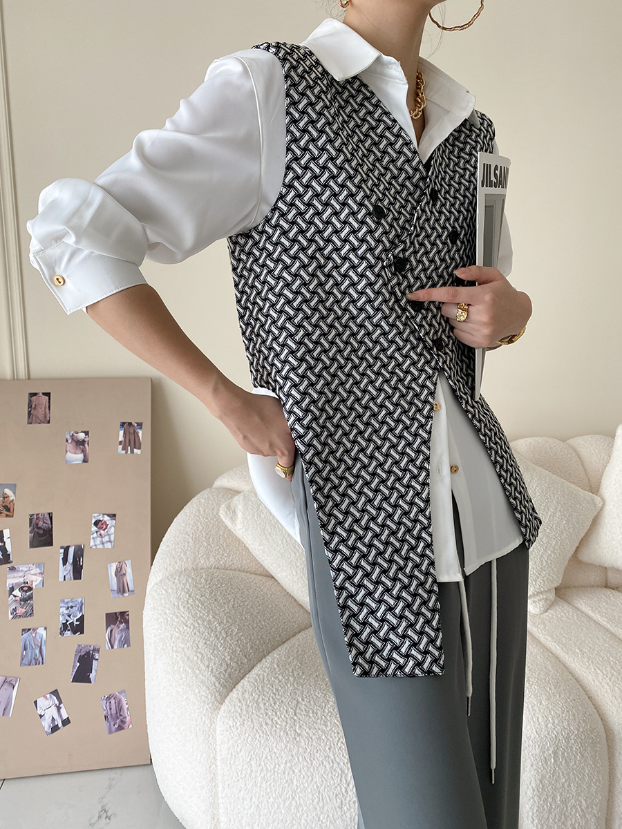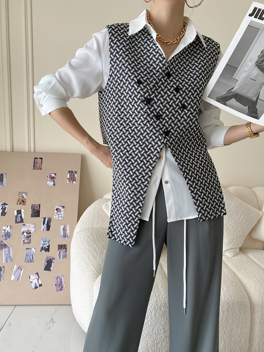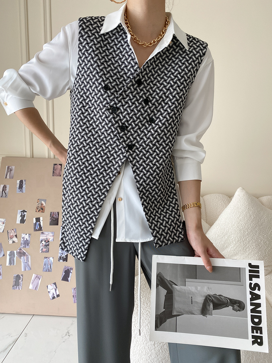 司南 不规则设计感格纹V领马甲叠穿设计感2022年秋季新款 SN1830