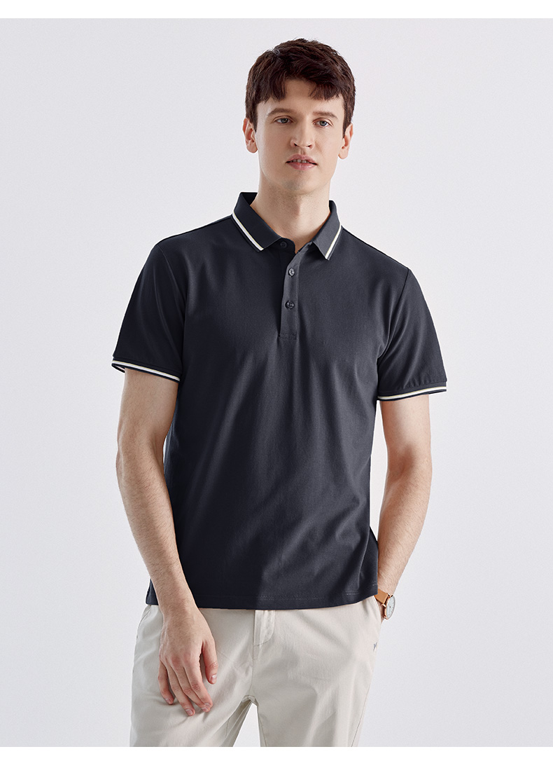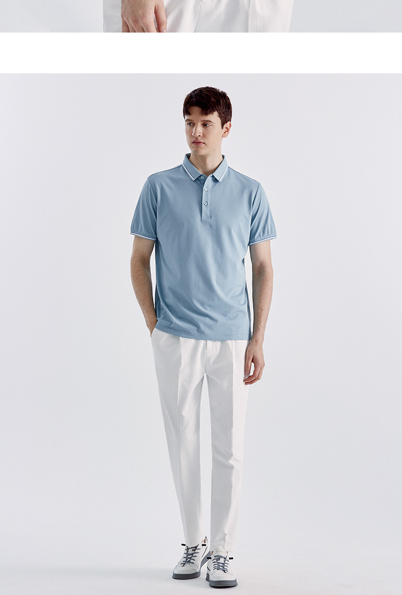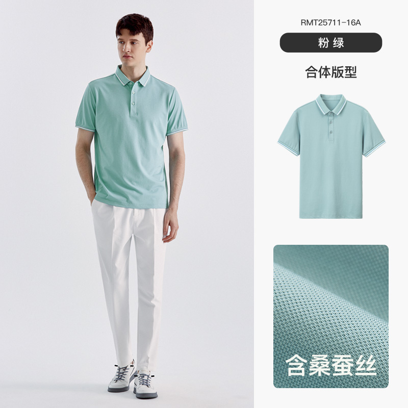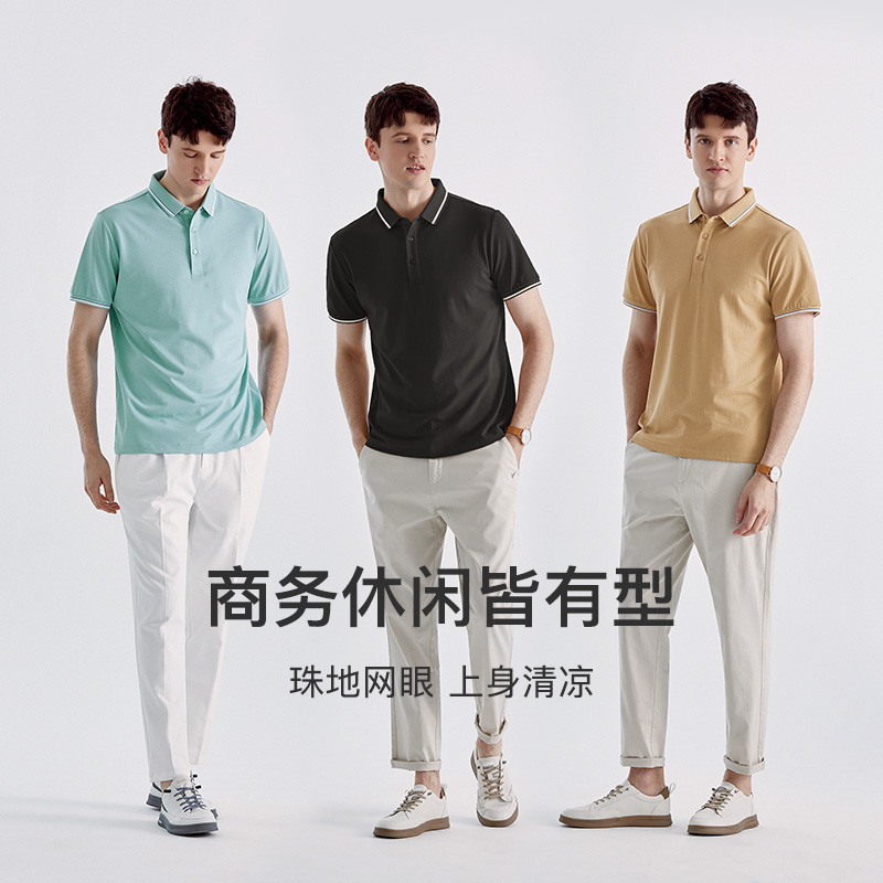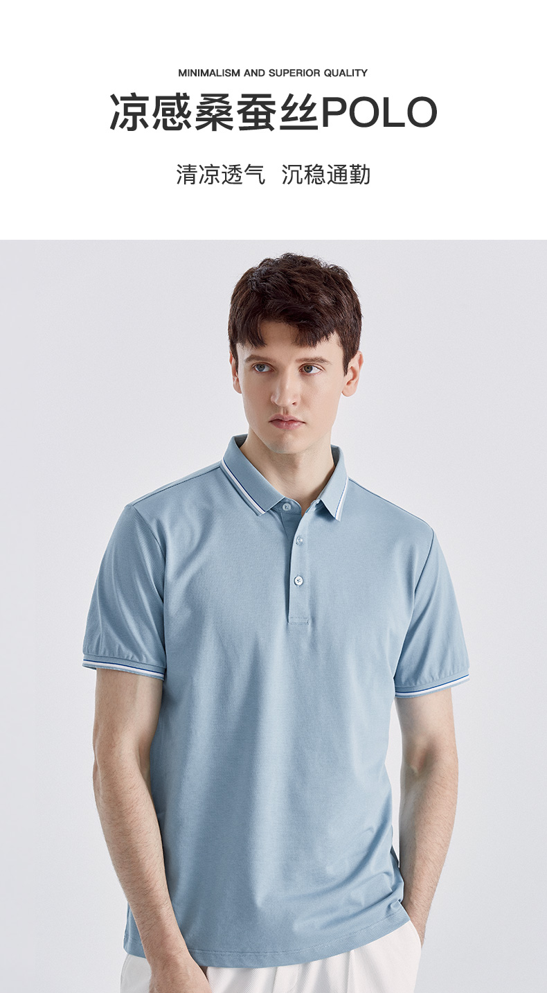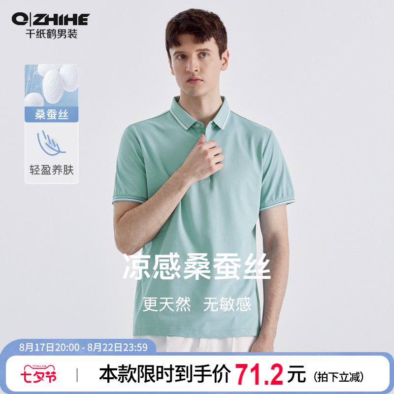 【含桑蠶絲】千紙鶴男士polo衫短袖男士冰絲涼感上衣商務T恤男款