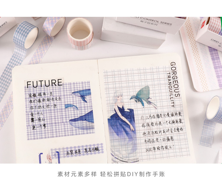 松岛 胶带套装 格子控系列 简约时尚手帐素材贴 12款