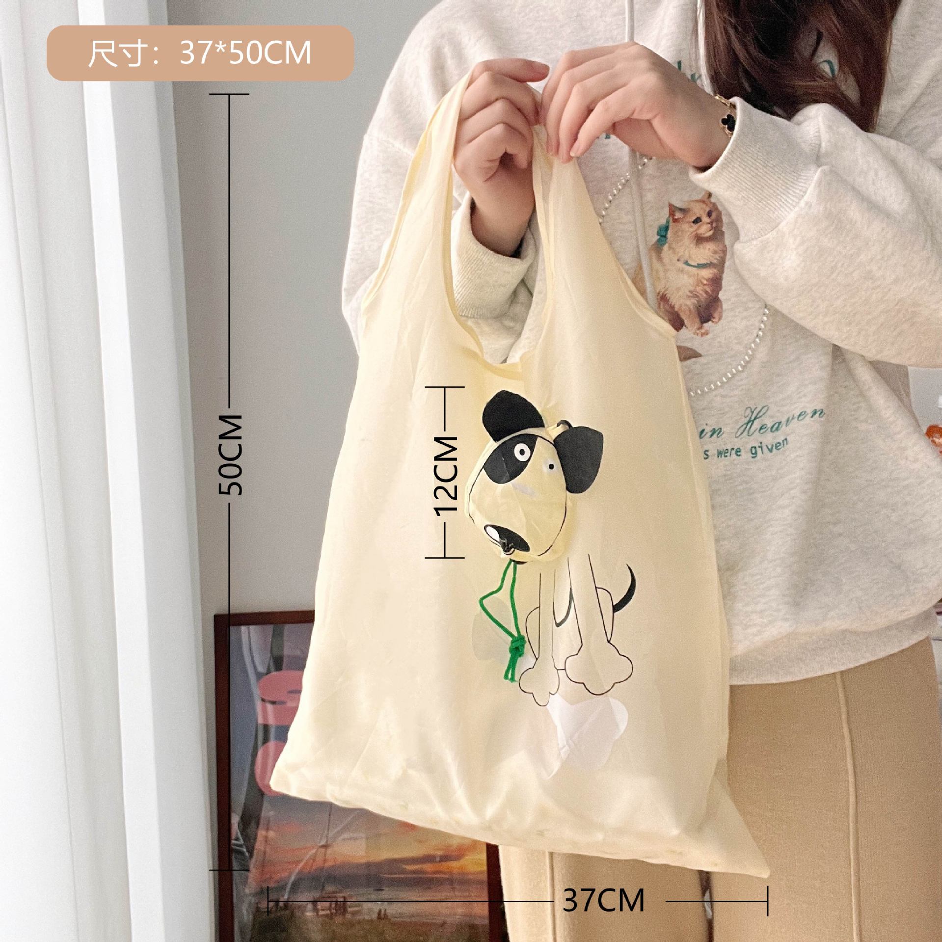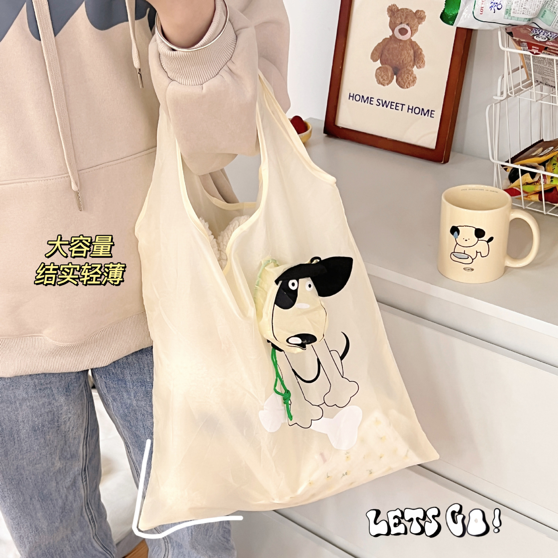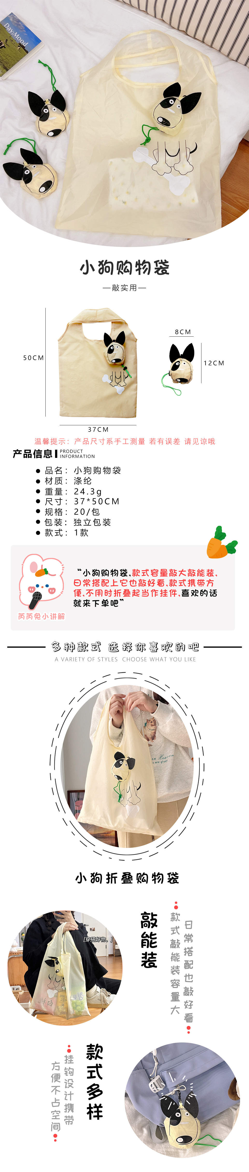 ins风简约卡通小狗可折叠购物袋随身便携大容量环保袋手提袋