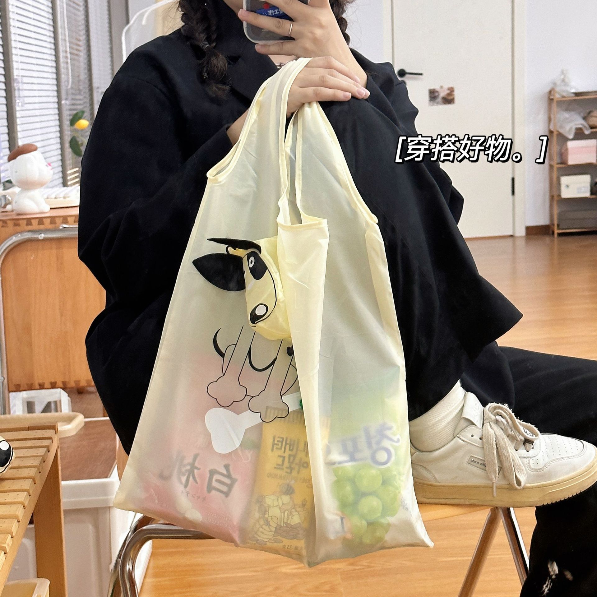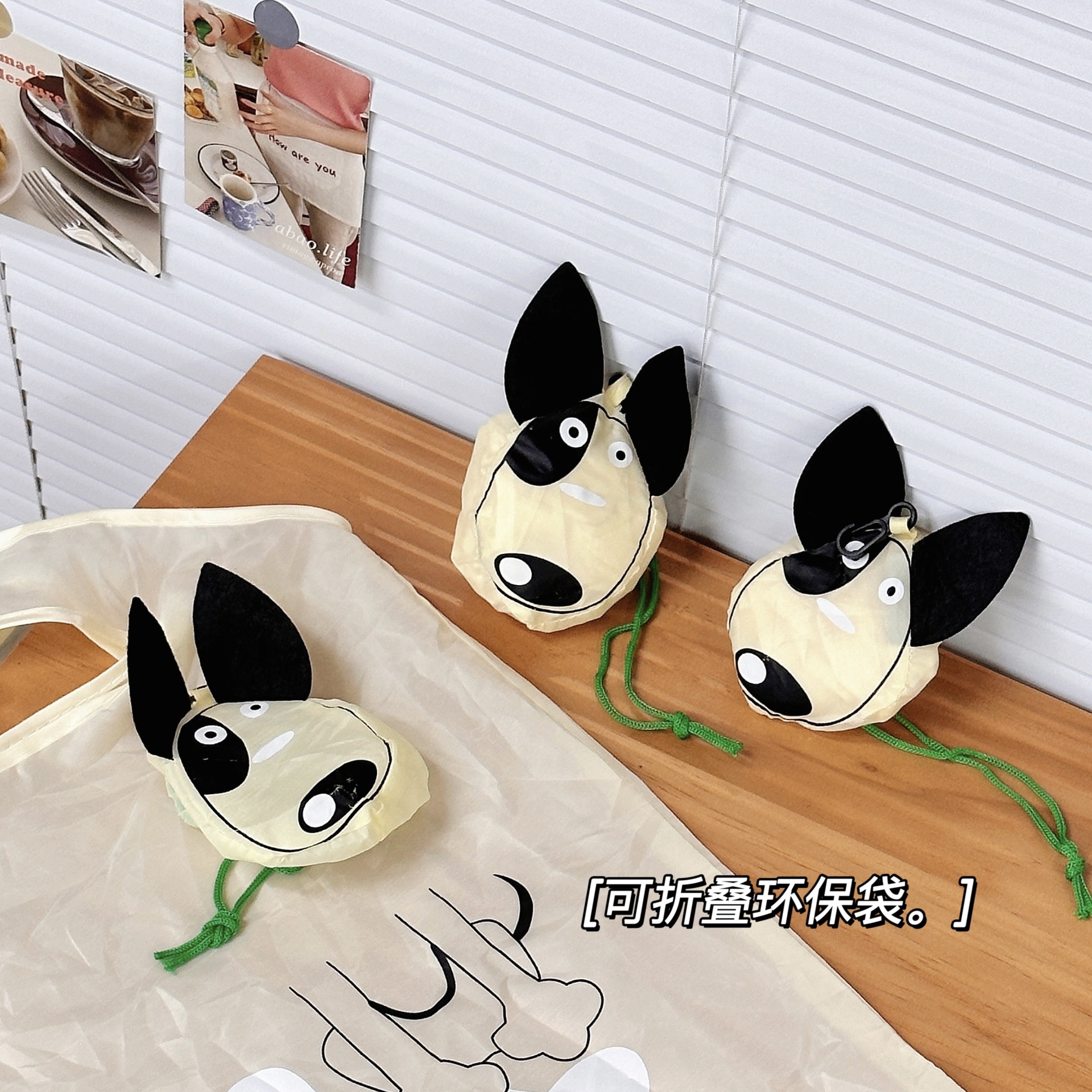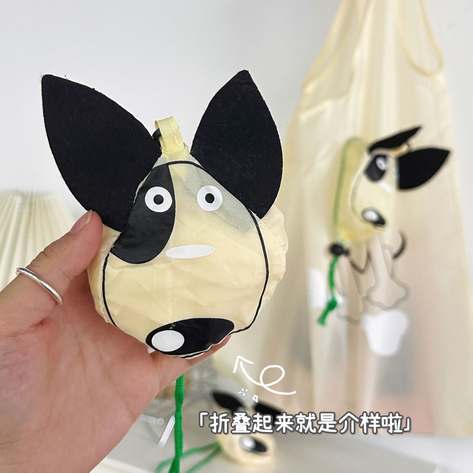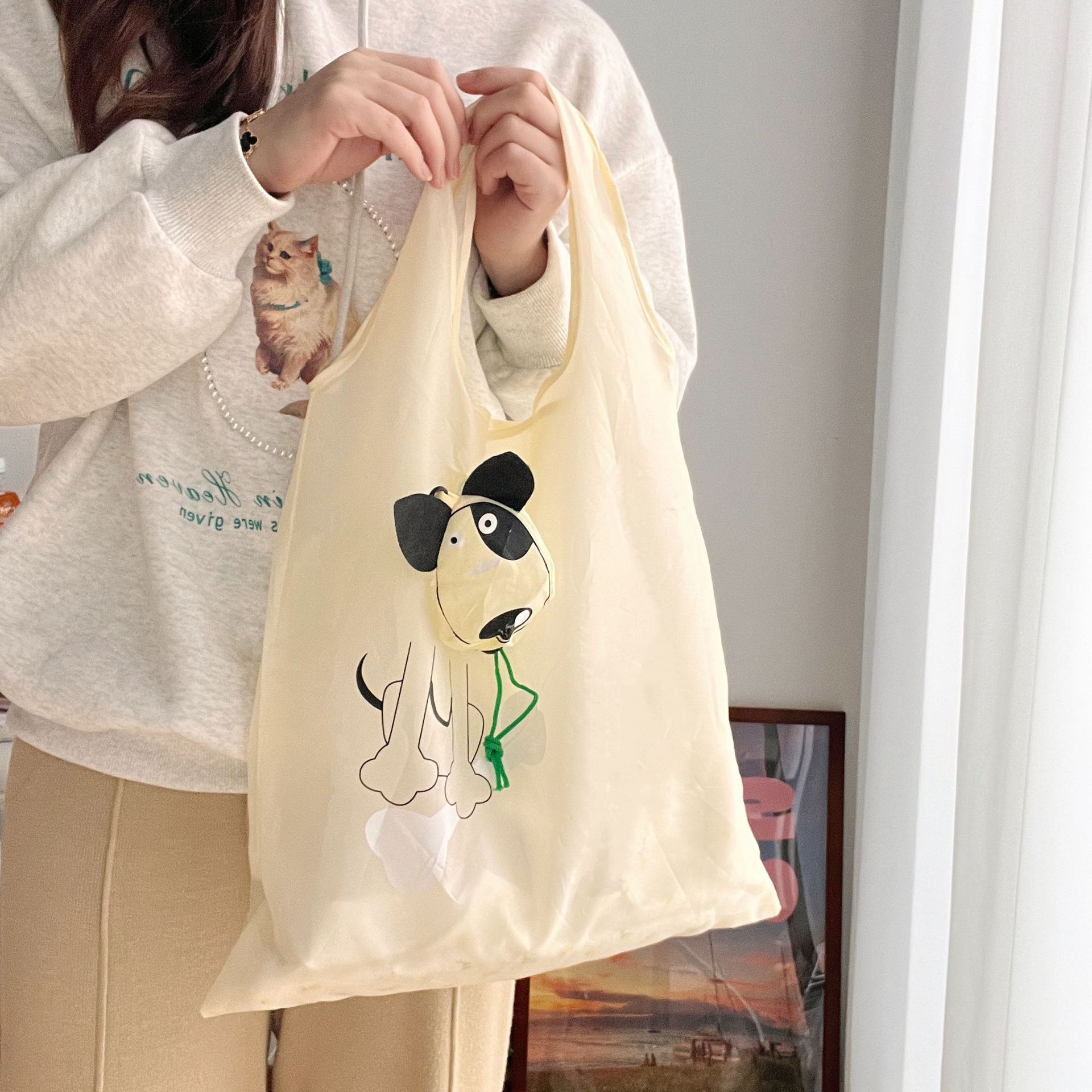 ins风简约卡通小狗可折叠购物袋随身便携大容量环保袋手提袋