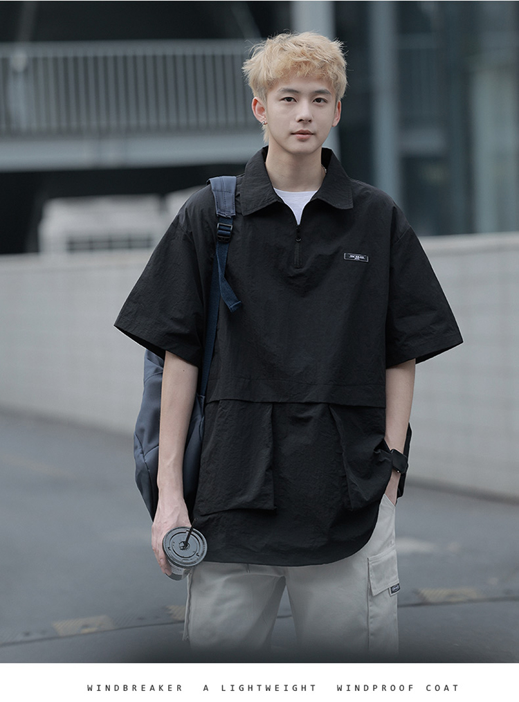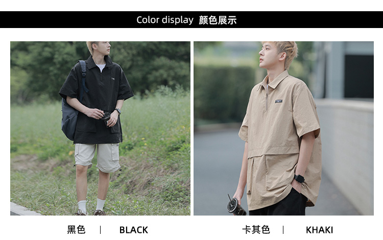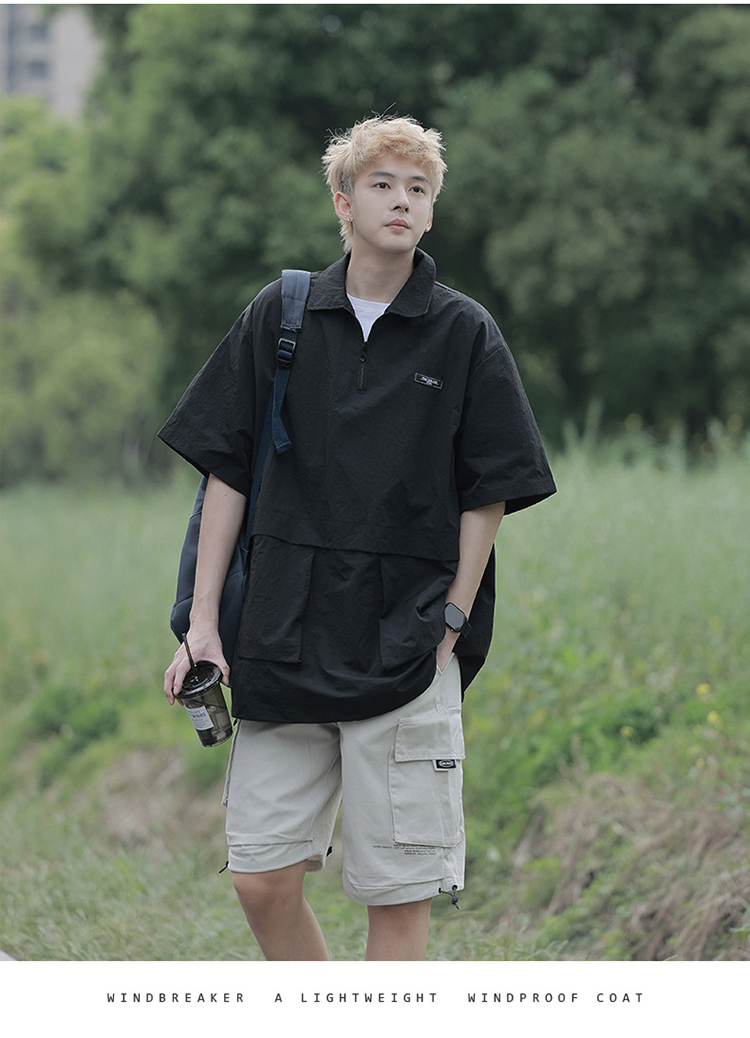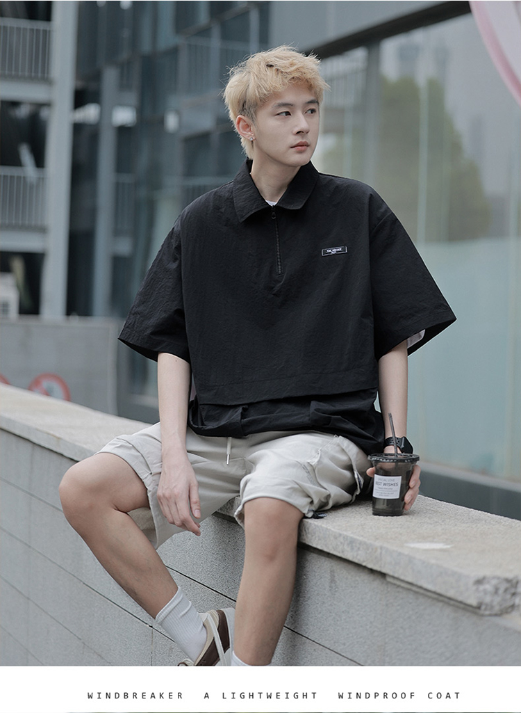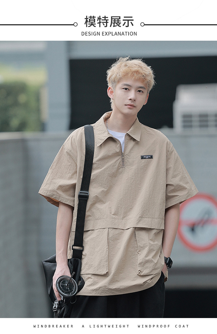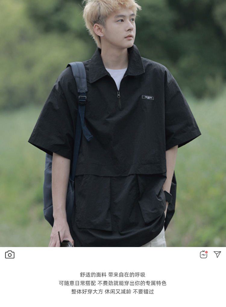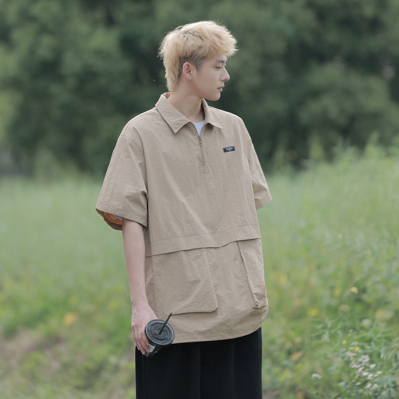 日系POLO衫男士夏季薄款美式復古寬鬆大尺碼休閒設計感小眾短袖t恤
