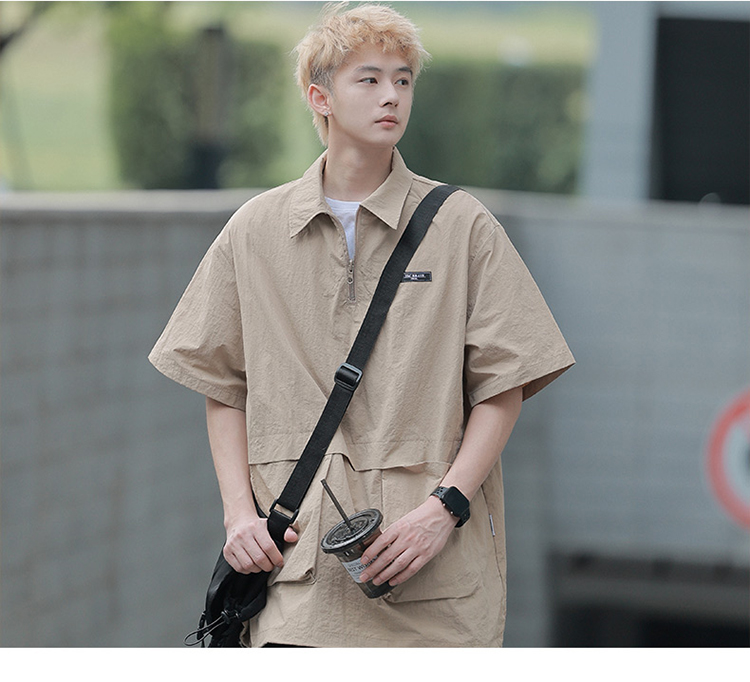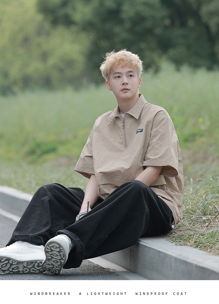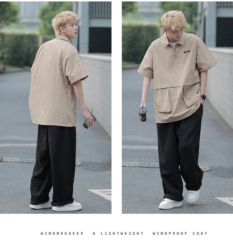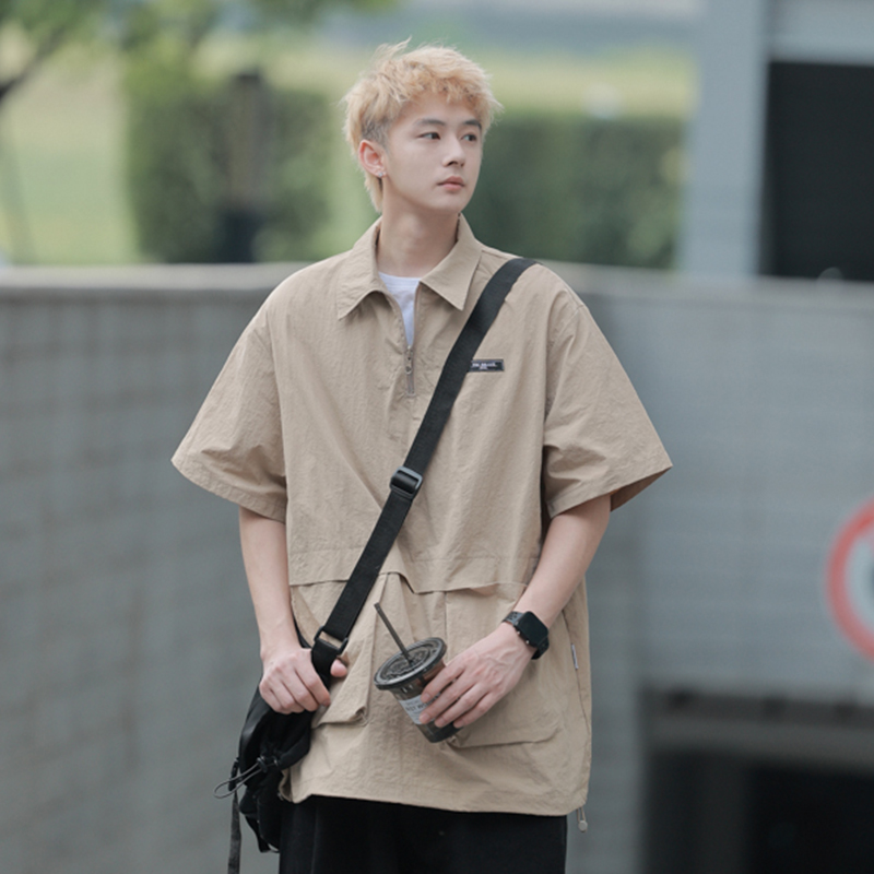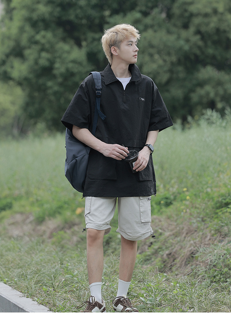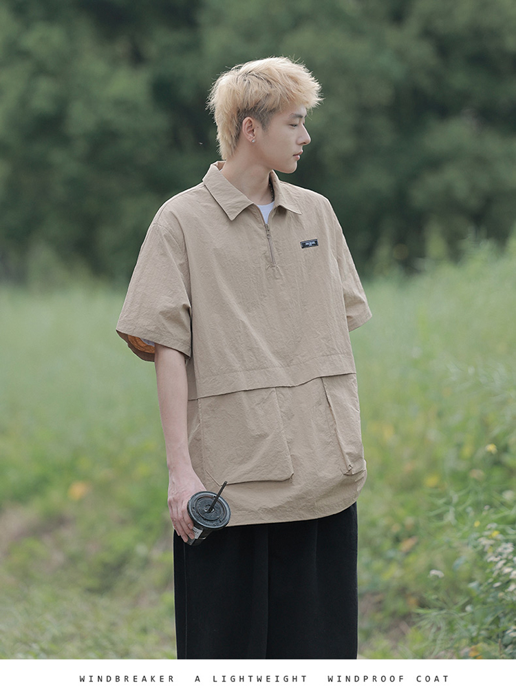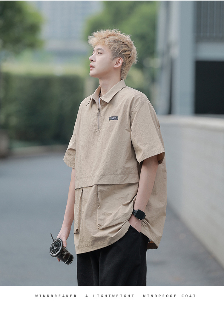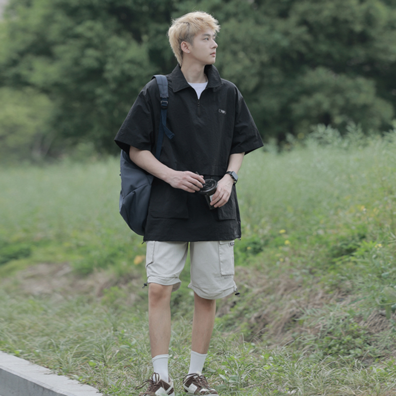 日系POLO衫男士夏季薄款美式復古寬鬆大尺碼休閒設計感小眾短袖t恤