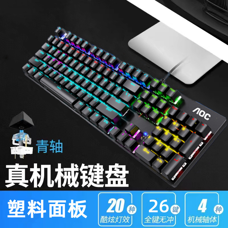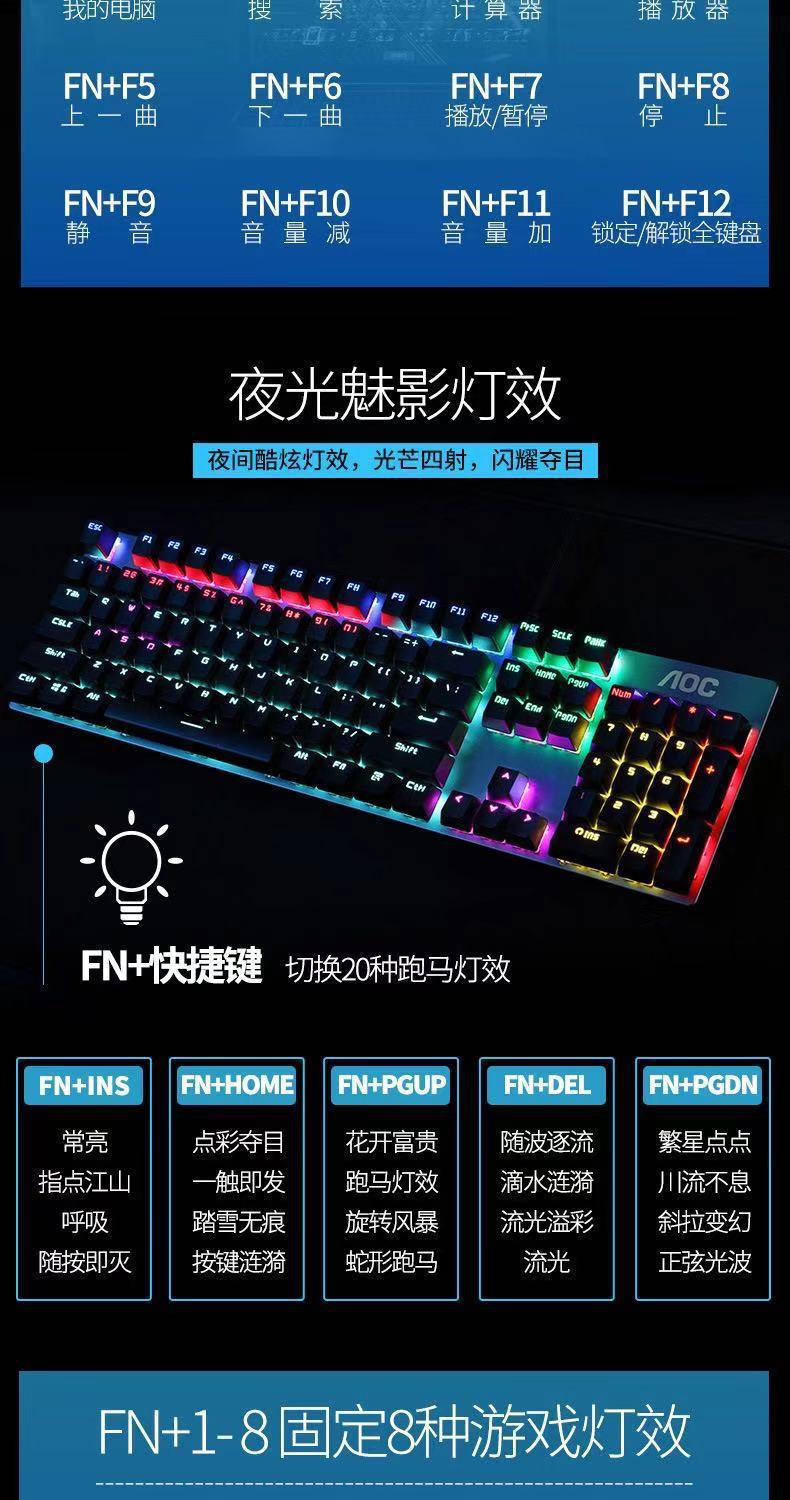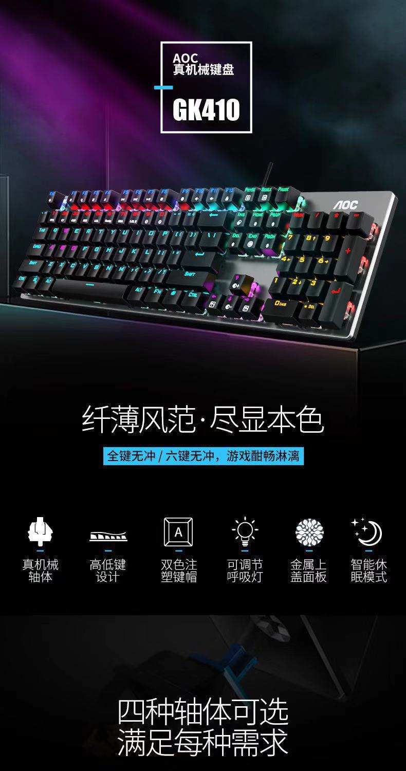 AOC GK410机械键盘有线USB混光青红茶黑轴电脑电竞游戏吃鸡键盘