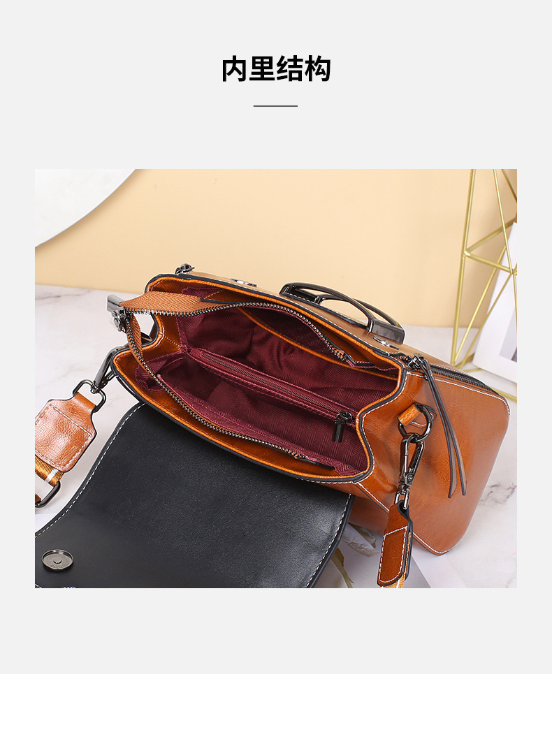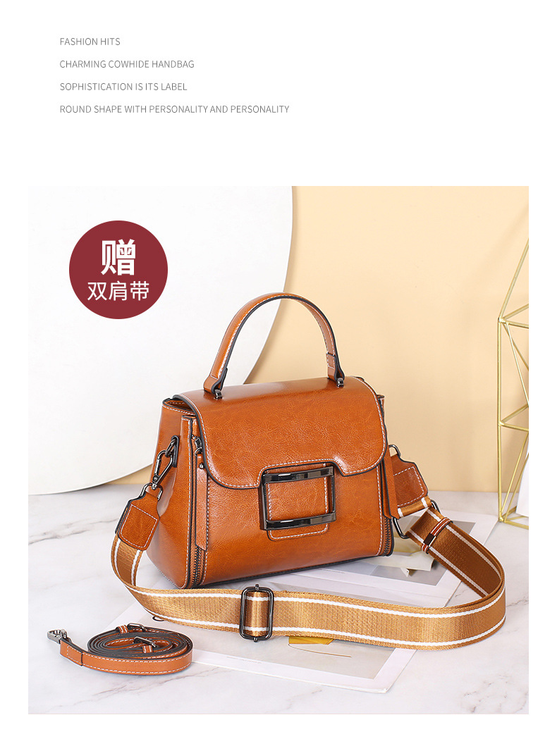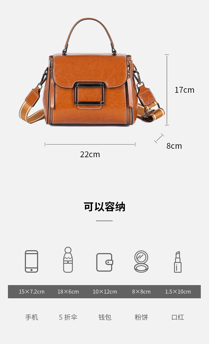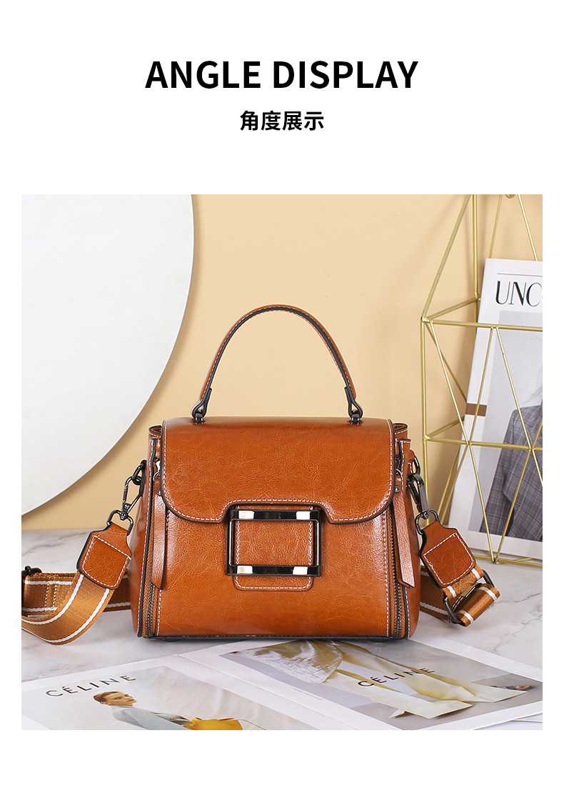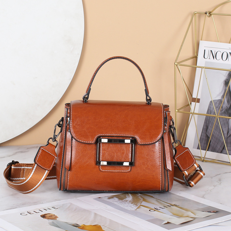 抖音爆款油蜡皮单肩包 真皮斜挎化妆品女款包 批发时尚简约翻盖包