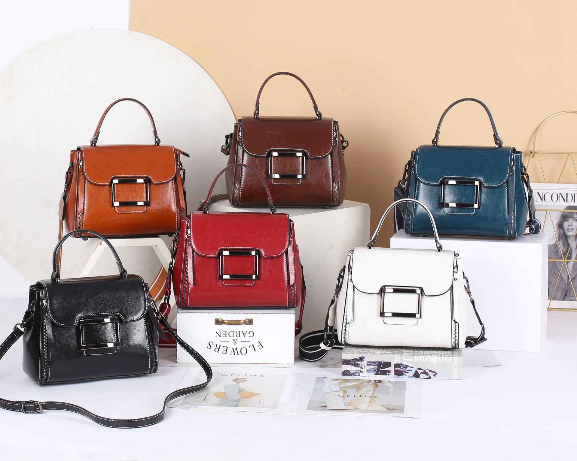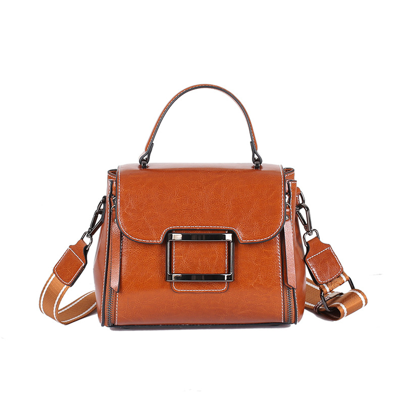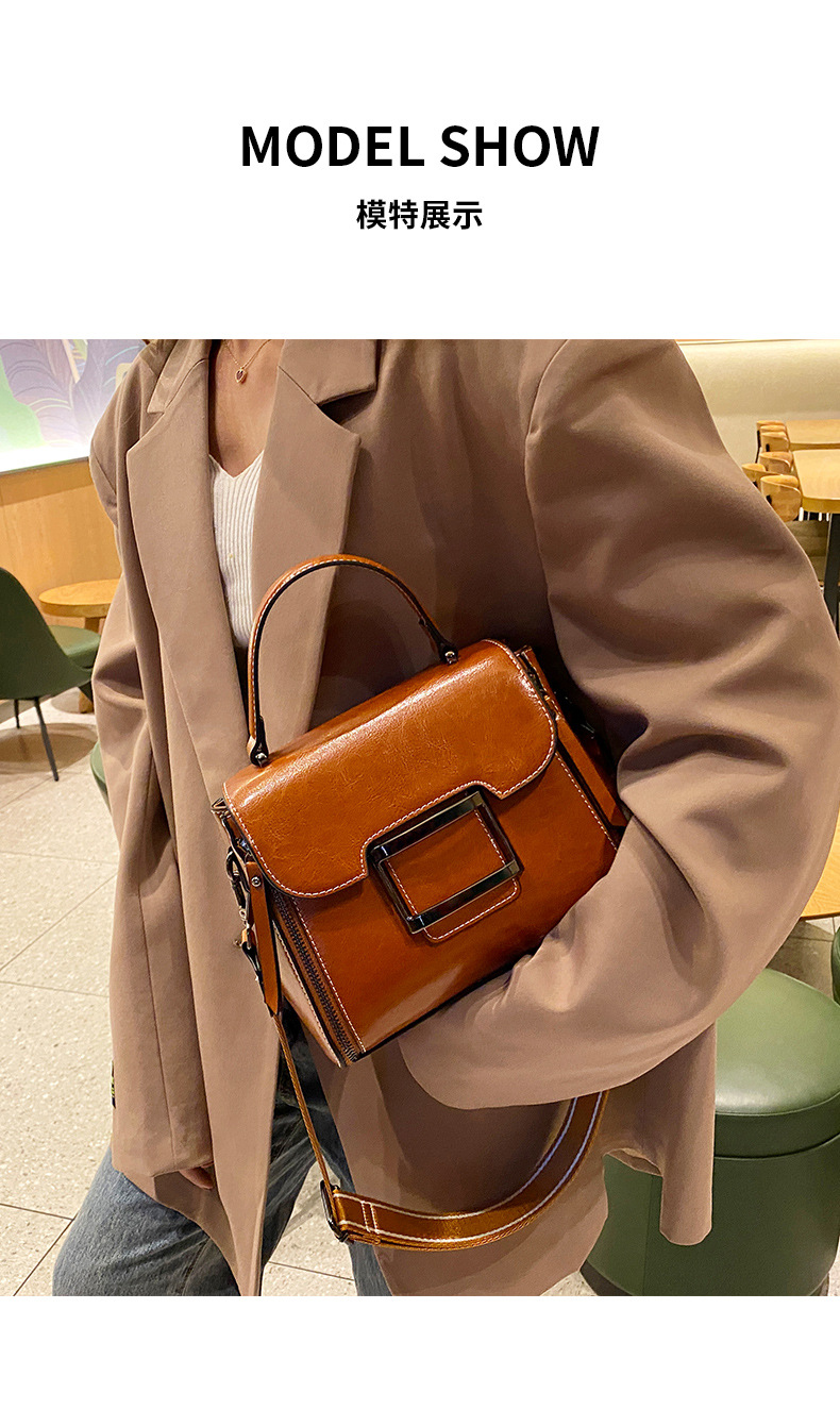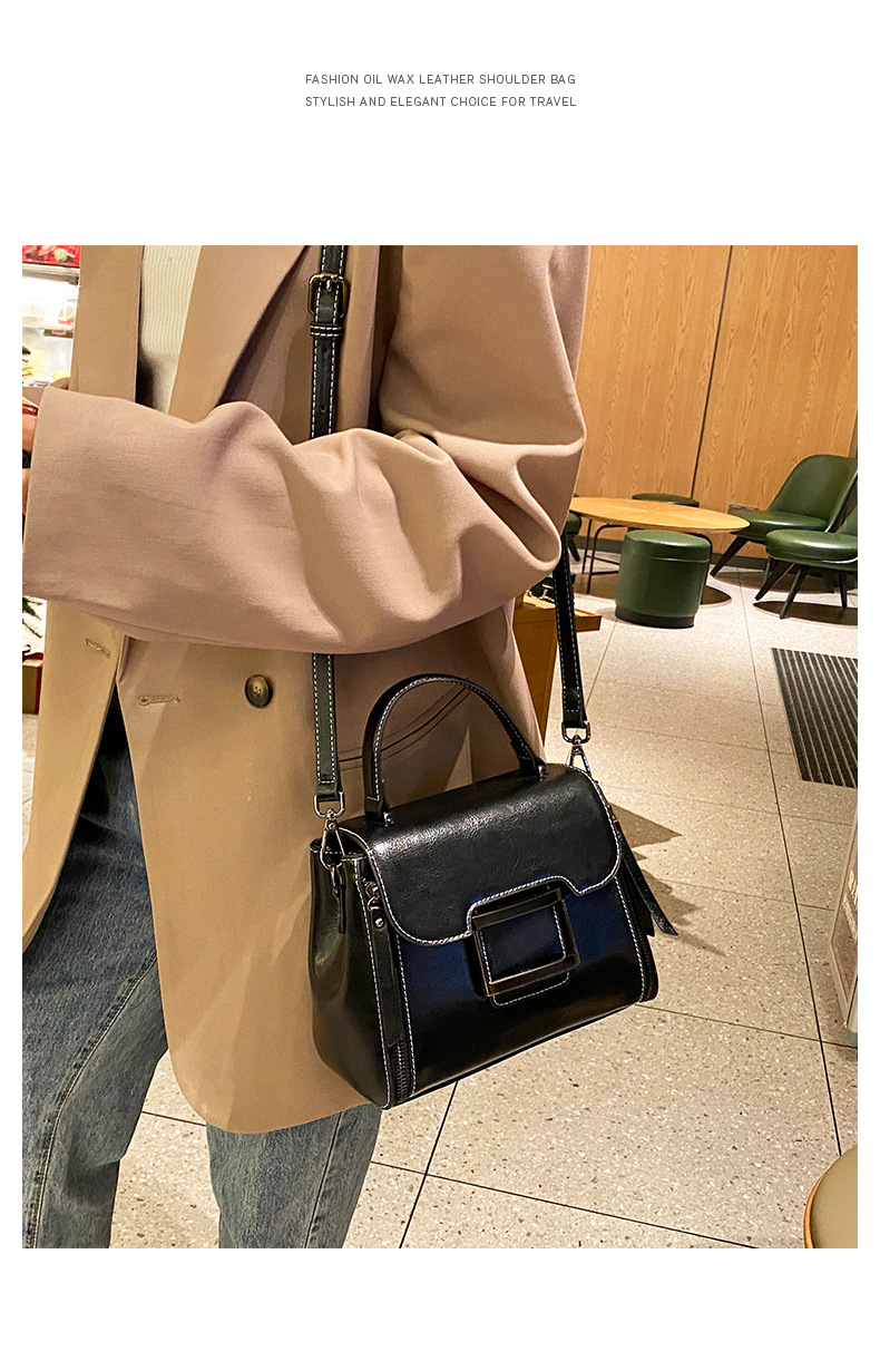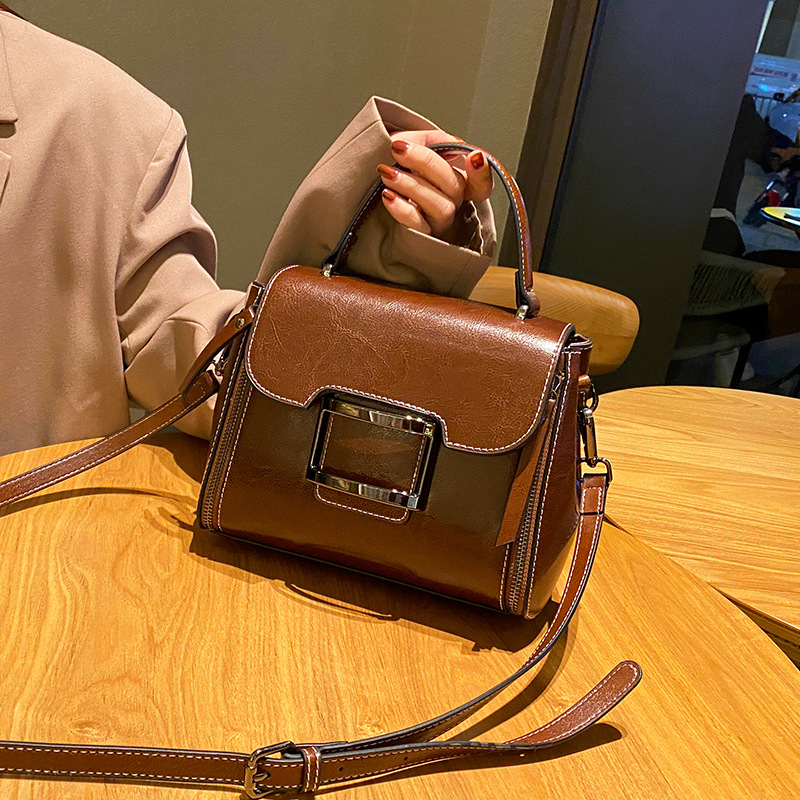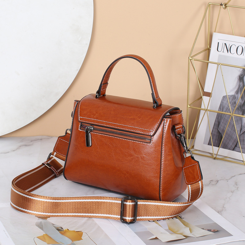抖音爆款油蜡皮单肩包 真皮斜挎化妆品女款包 批发时尚简约翻盖包