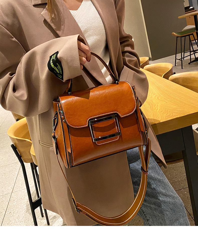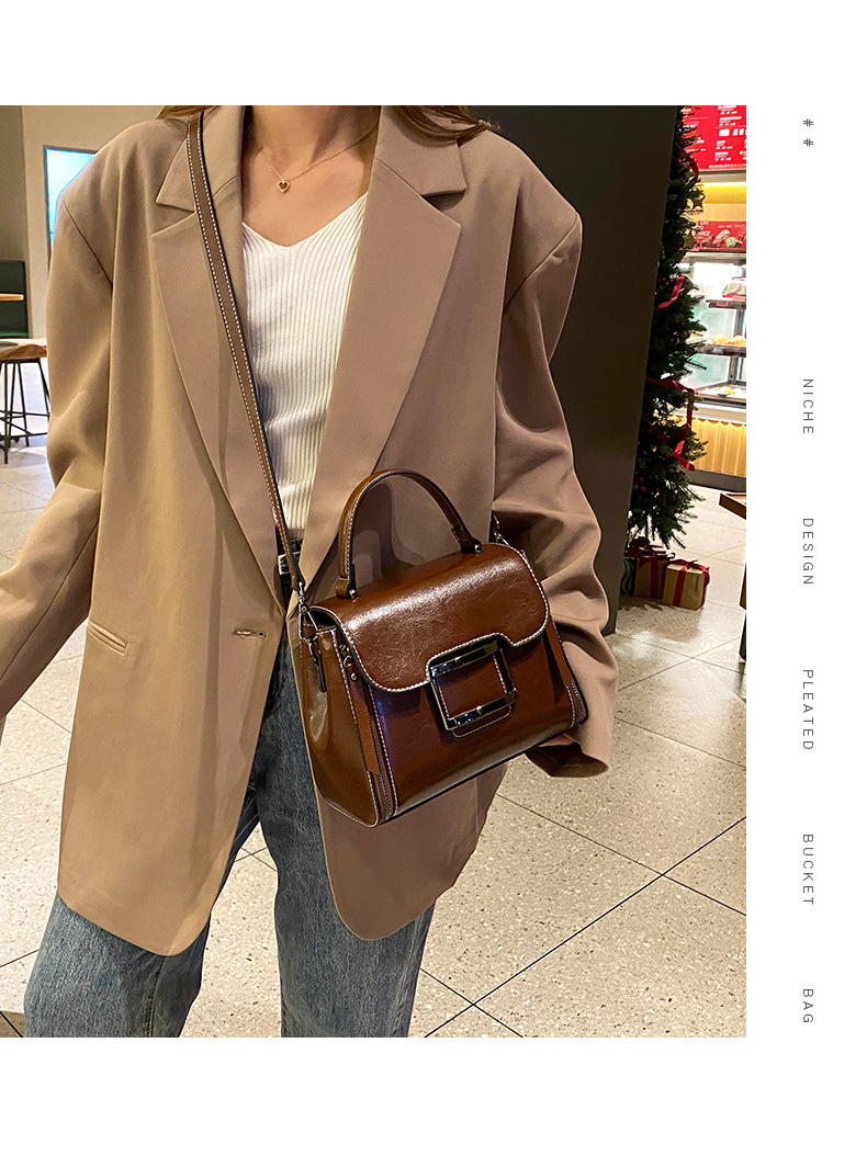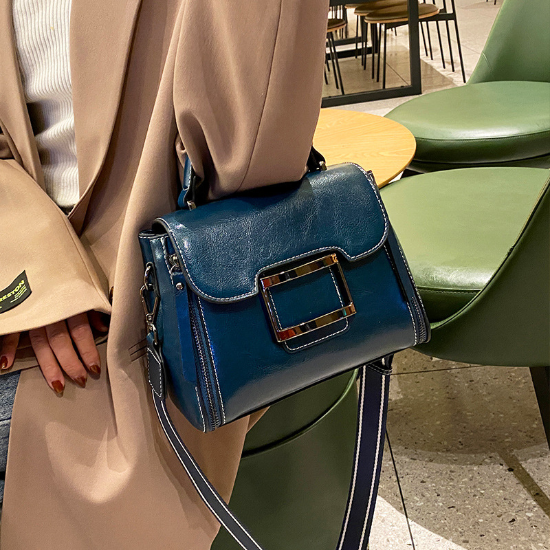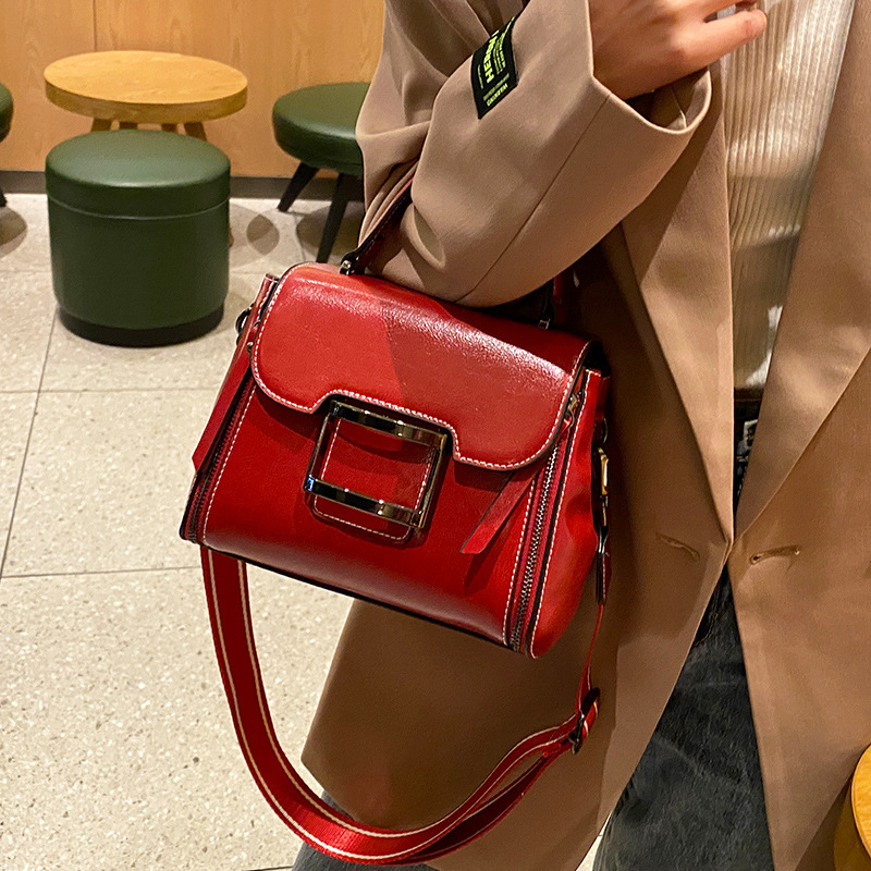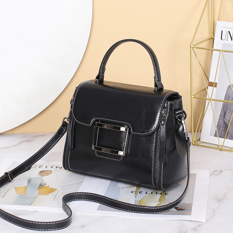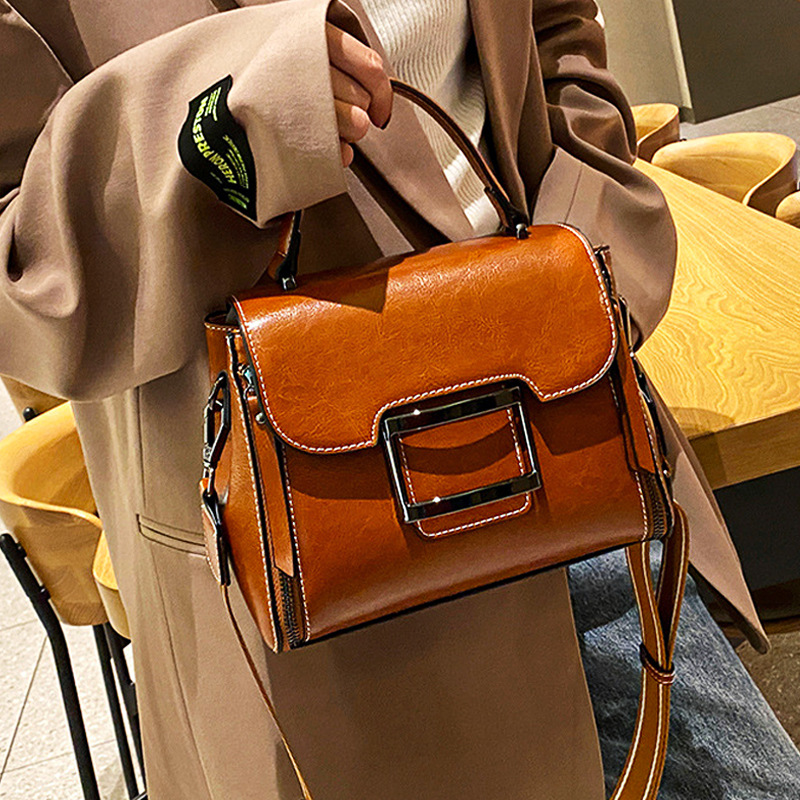 抖音爆款油蜡皮单肩包 真皮斜挎化妆品女款包 批发时尚简约翻盖包