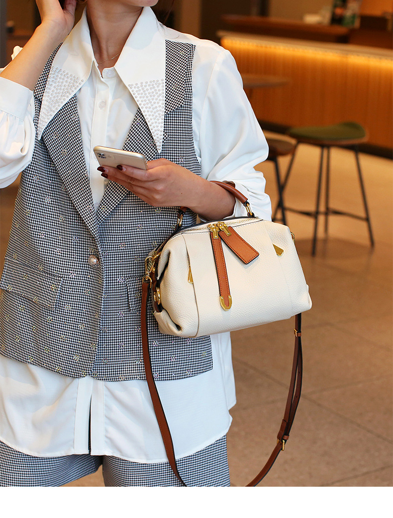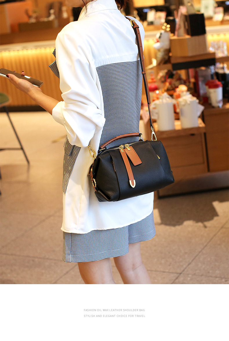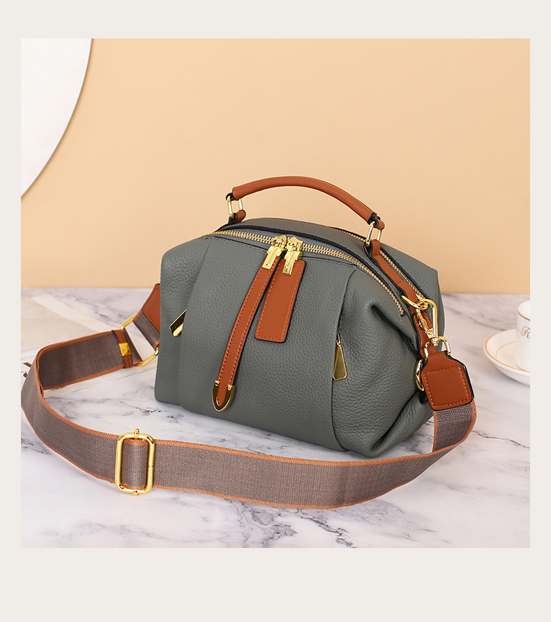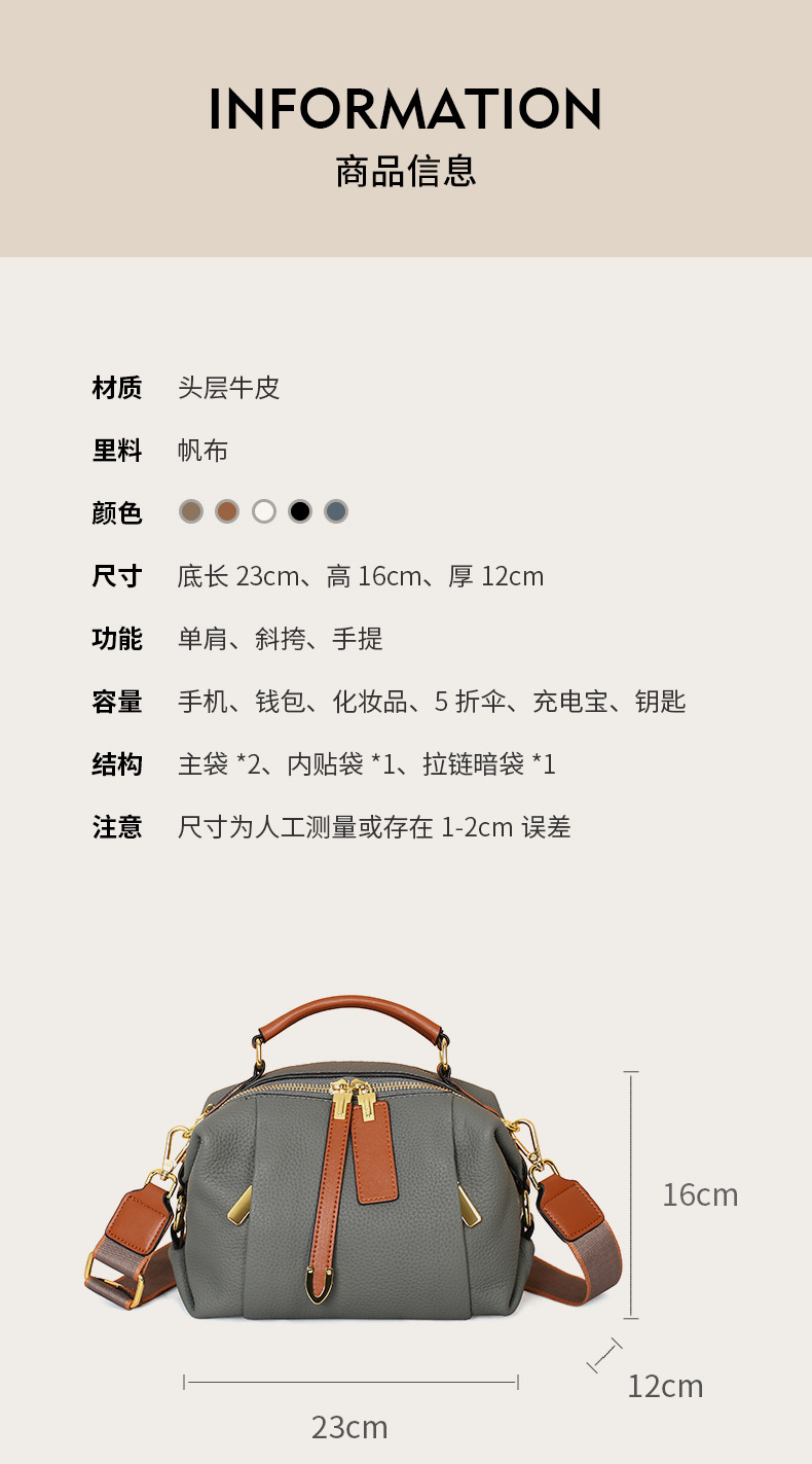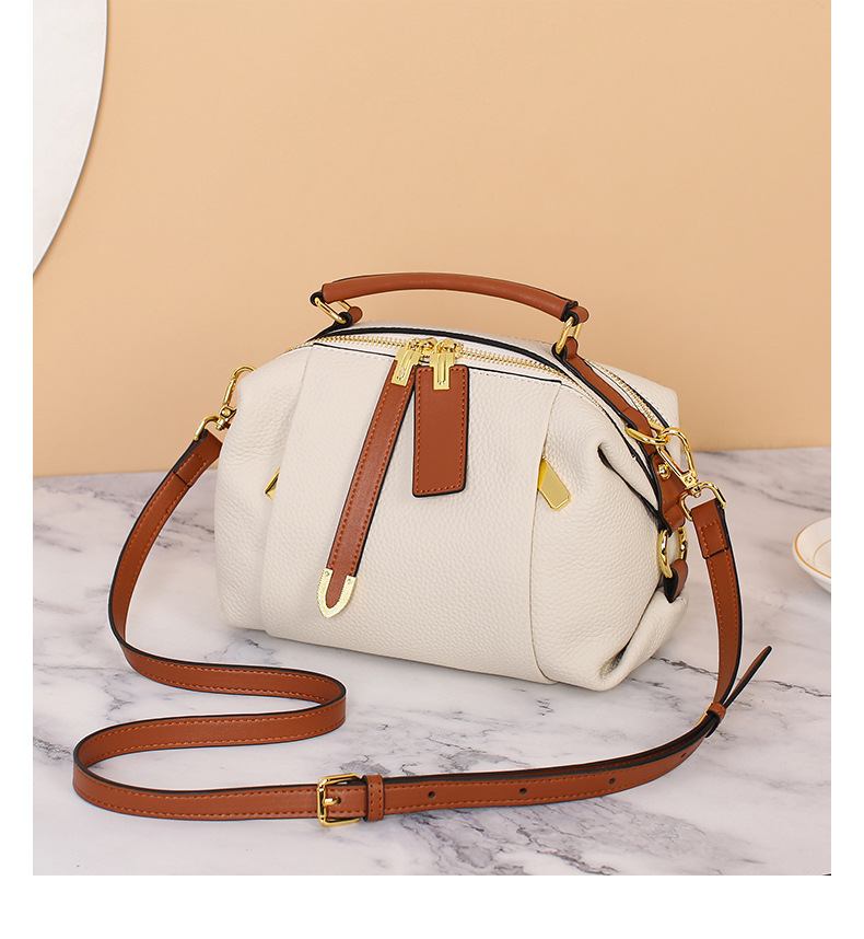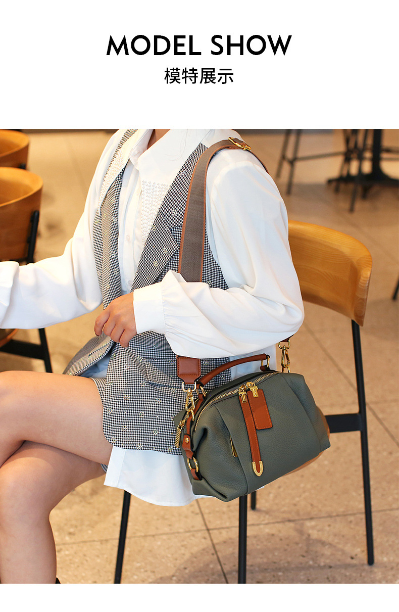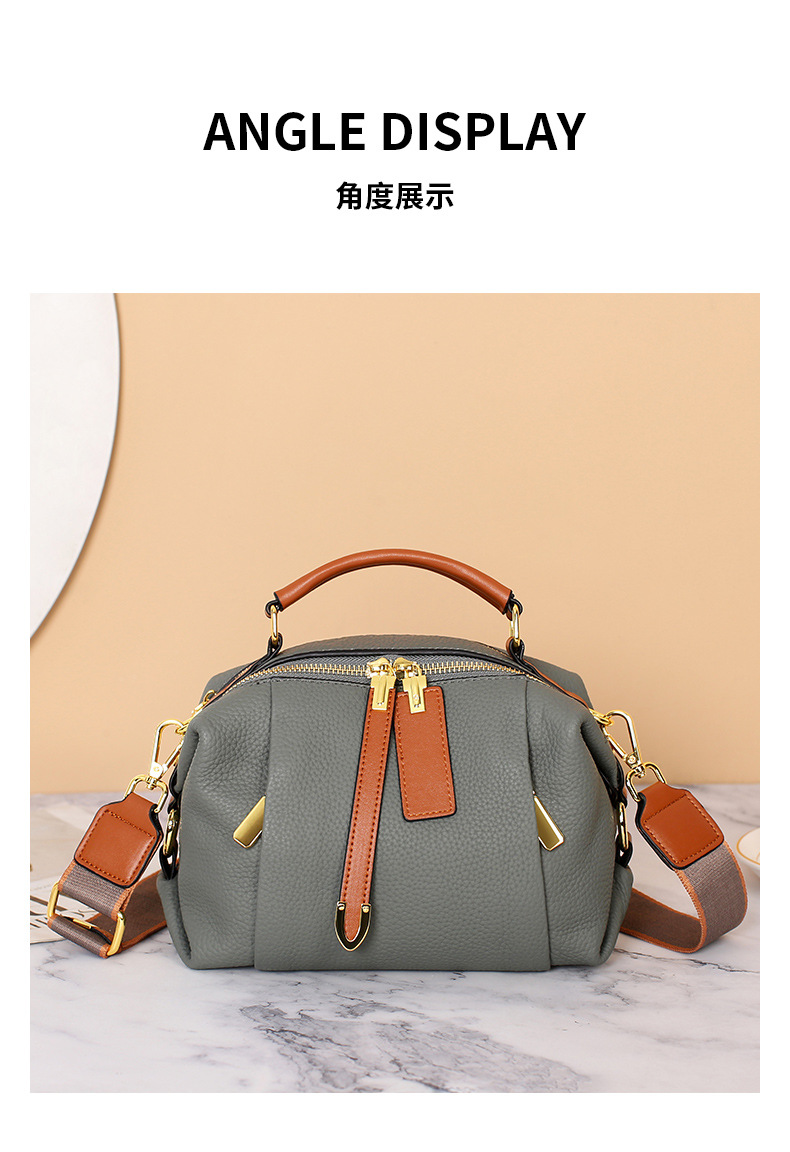 真皮包包批发新款百搭头层牛皮撞色斜挎女包波士顿手提单肩枕头包