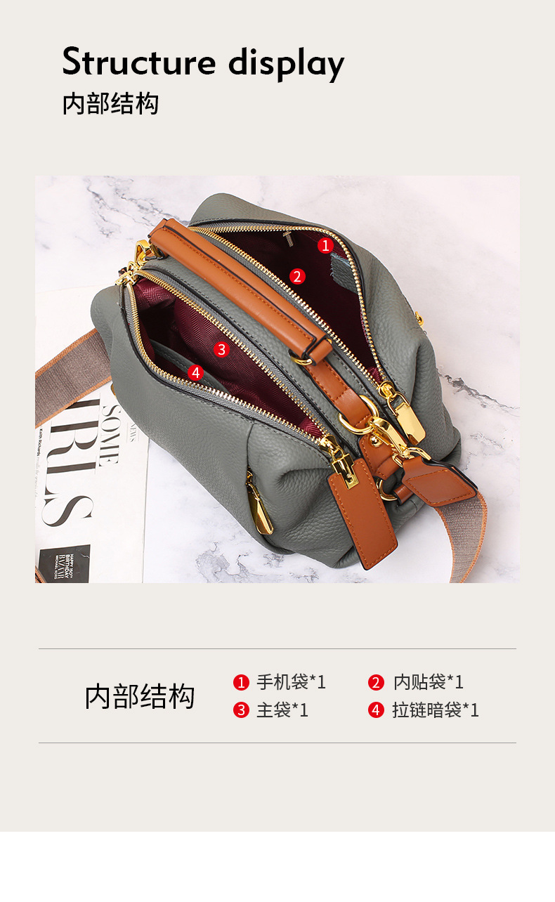 包内部结构 拉链暗袋,手机袋,证件袋,夹层拉链袋