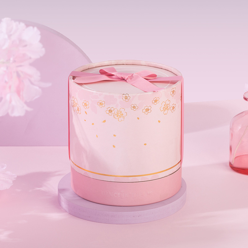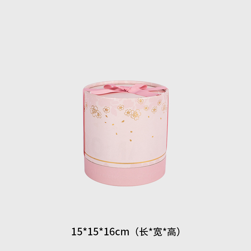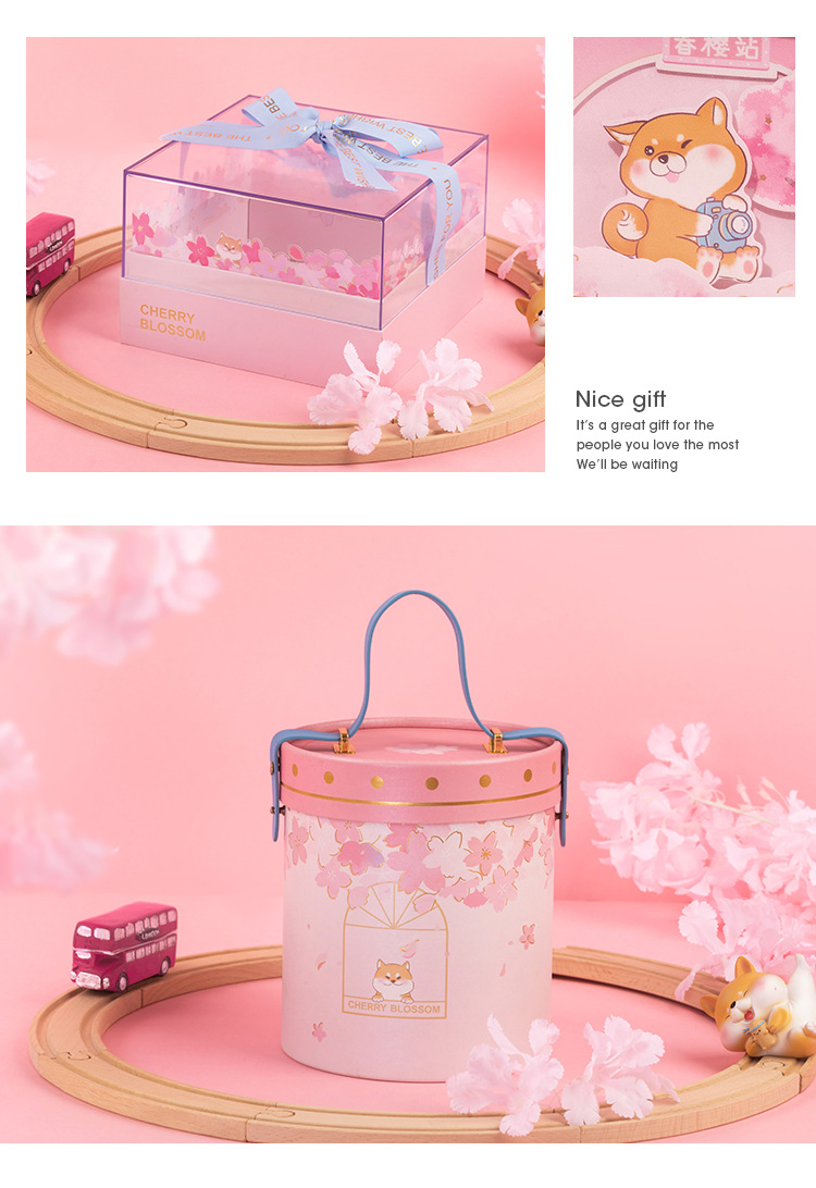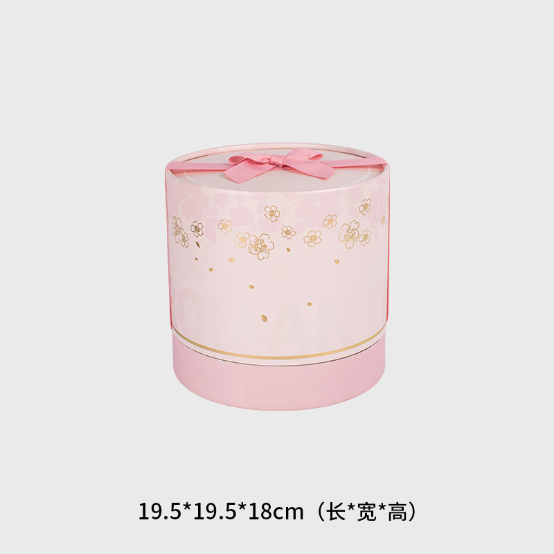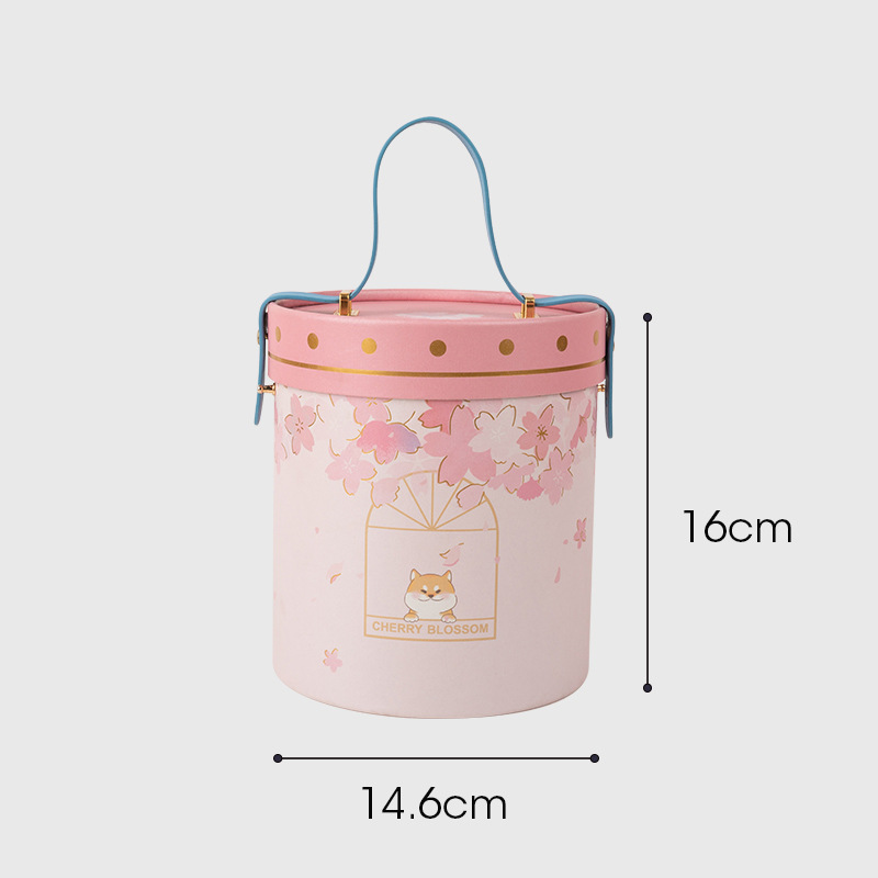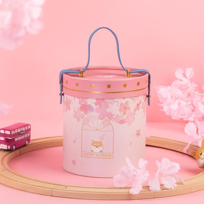 方森园圆形手提桶樱花抱抱桶大号礼盒空盒粉色包装送女生日礼物盒