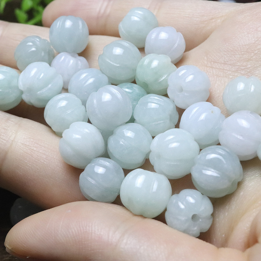 产地直销四会翡翠散珠A货10mm南瓜珠手工DIY珠链饰品配件批发