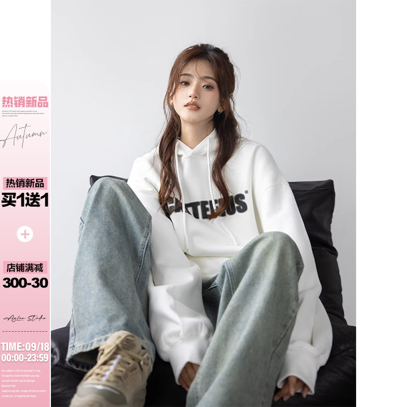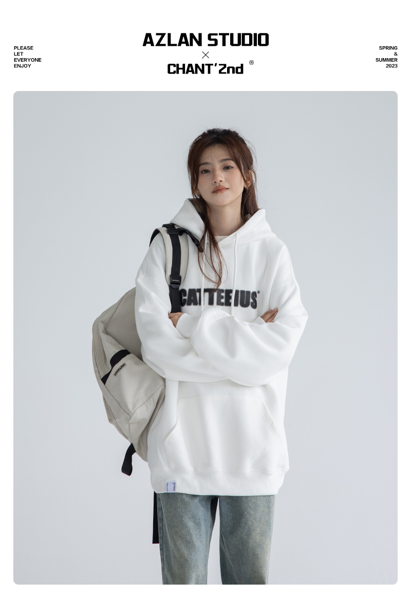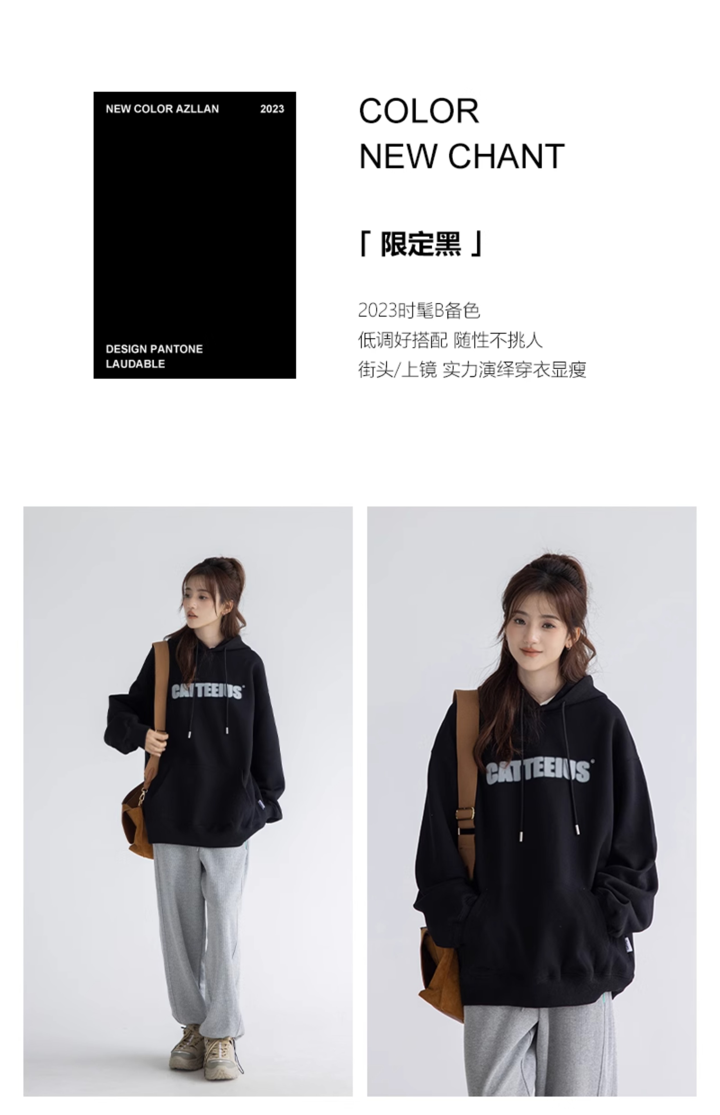 AzLan重磅380G連帽運動衫外套2023新款女春秋寬鬆慵懶風長袖上衣潮