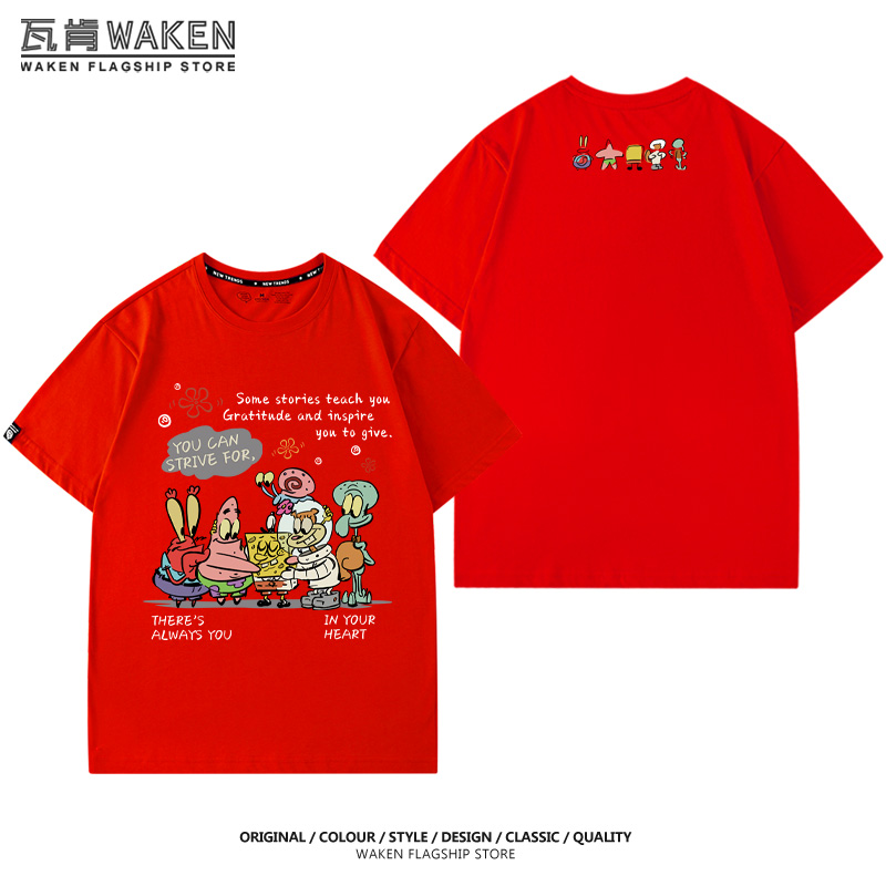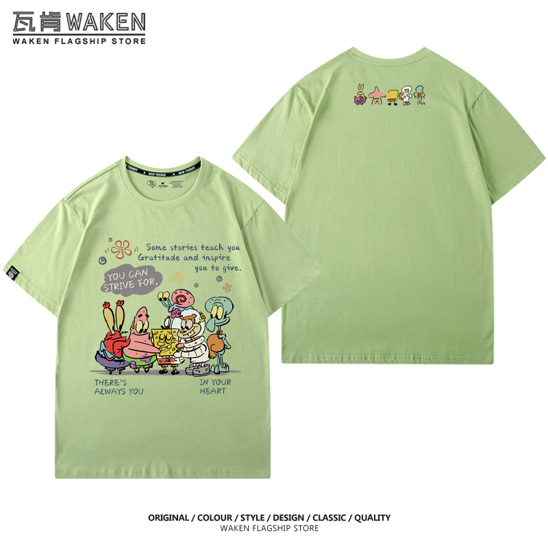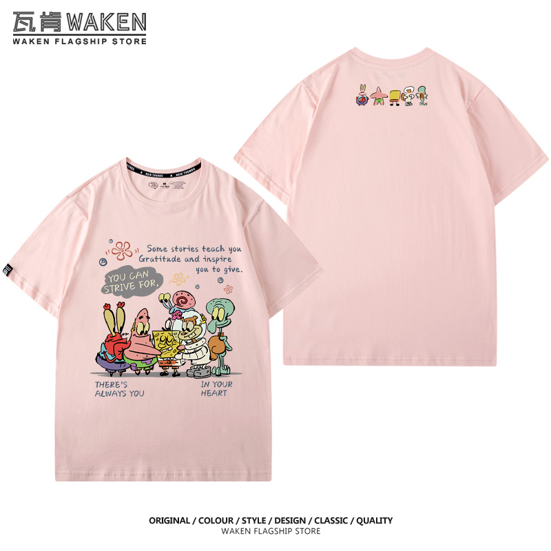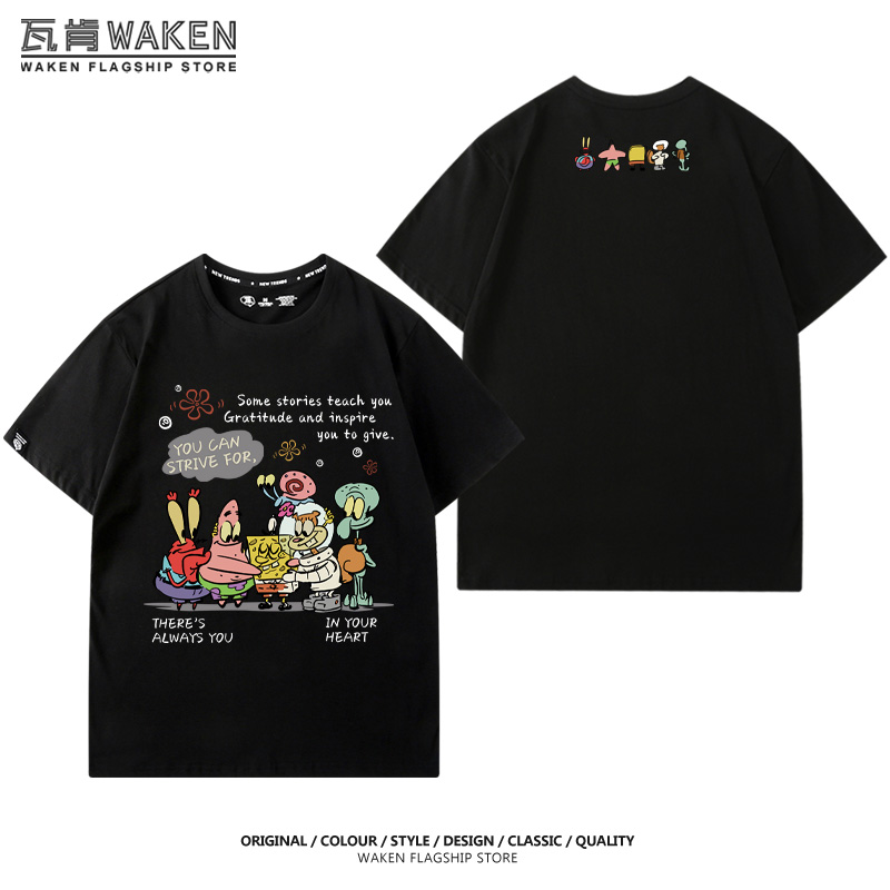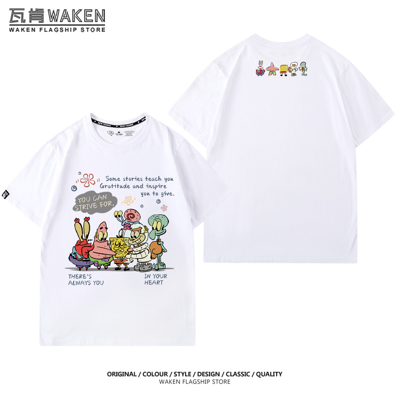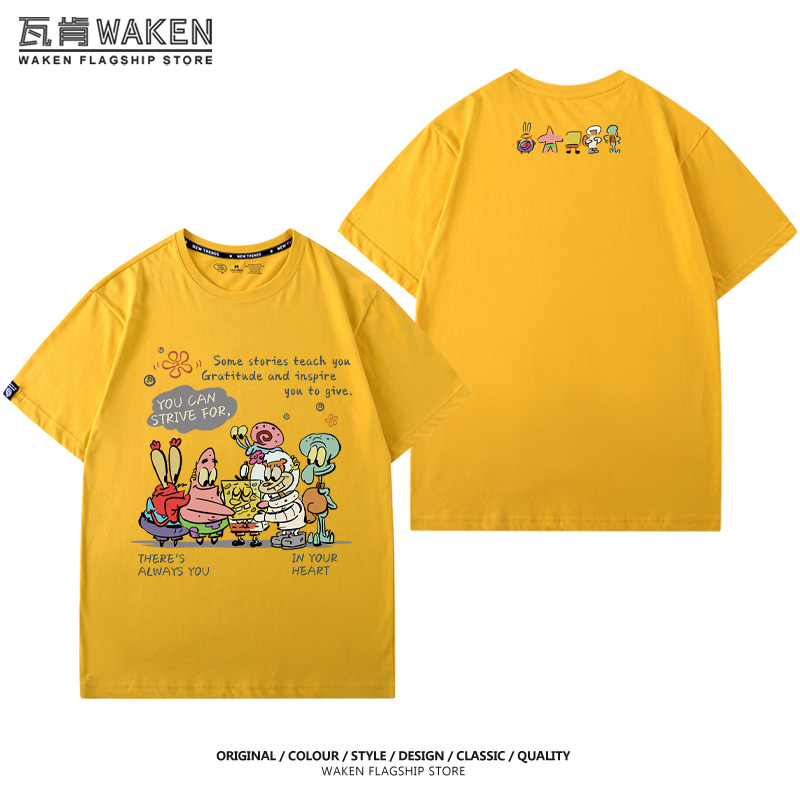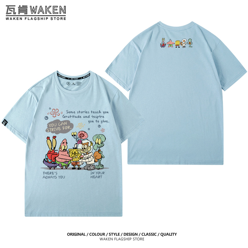 海綿寶寶派大星章魚哥卡通周邊聯名潮牌男女情侶裝夏短袖T恤純棉