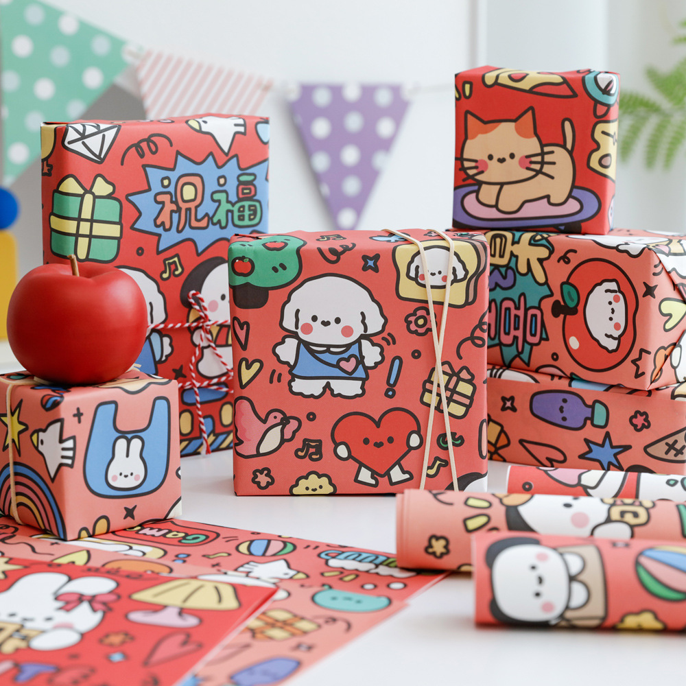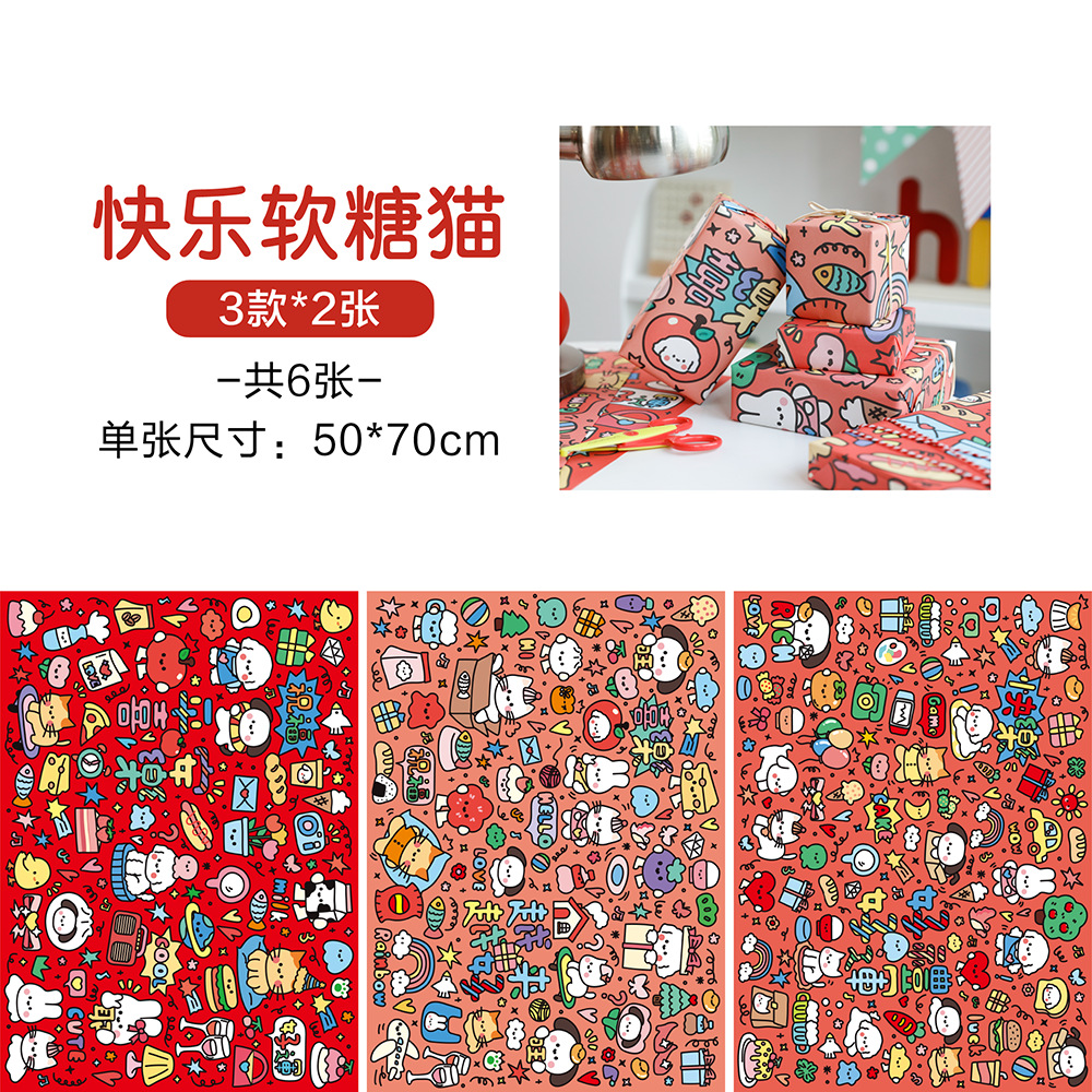贝祥6张快乐软糖猫包装纸礼物礼品纸包书皮纸ins风生日情人节包装