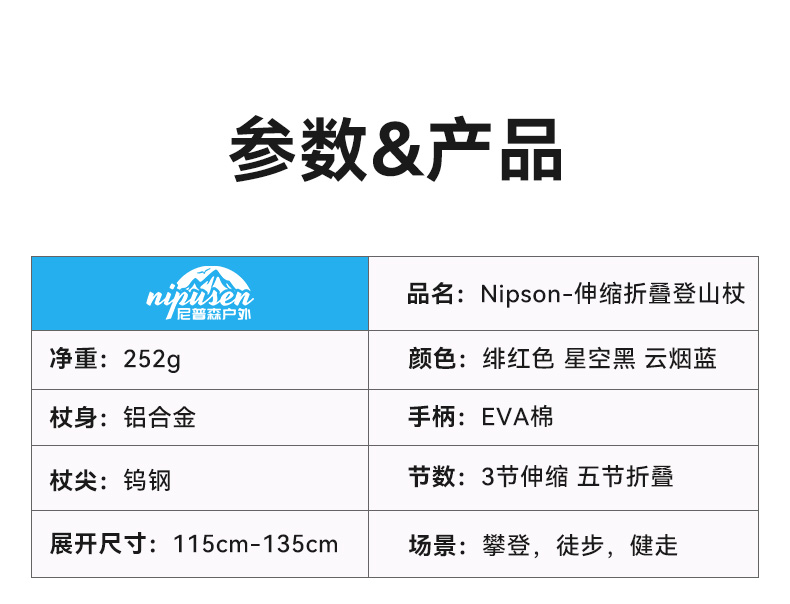 尼普森戶外登山杖無碳素超輕伸縮摺疊手杖老人助行杖徒步爬山柺杖