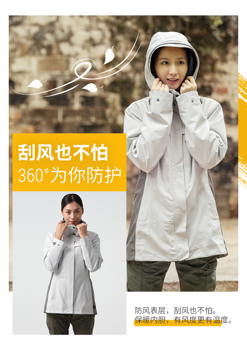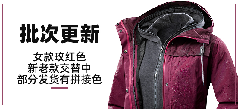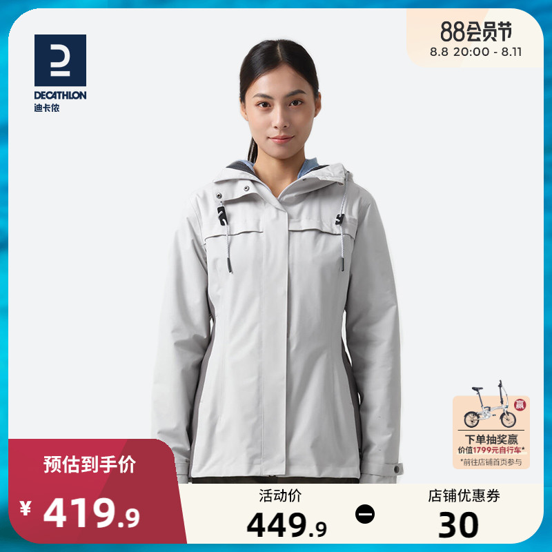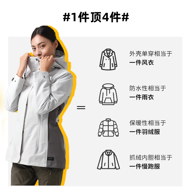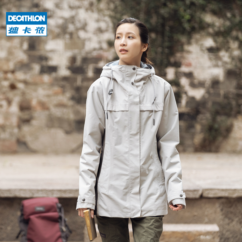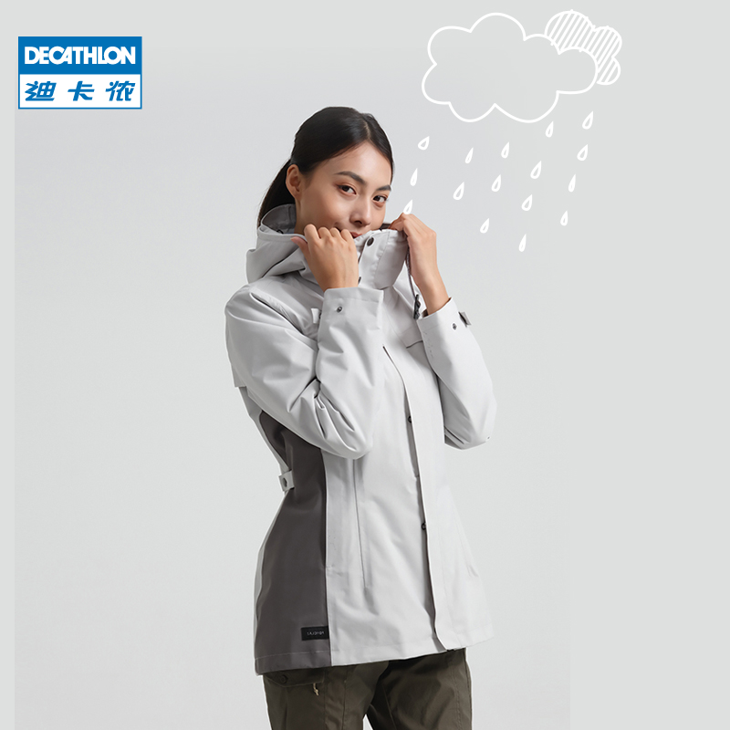迪卡儂衝鋒衣女三合一秋冬戶外登山防水防風寬鬆工裝夾克外套ODT2