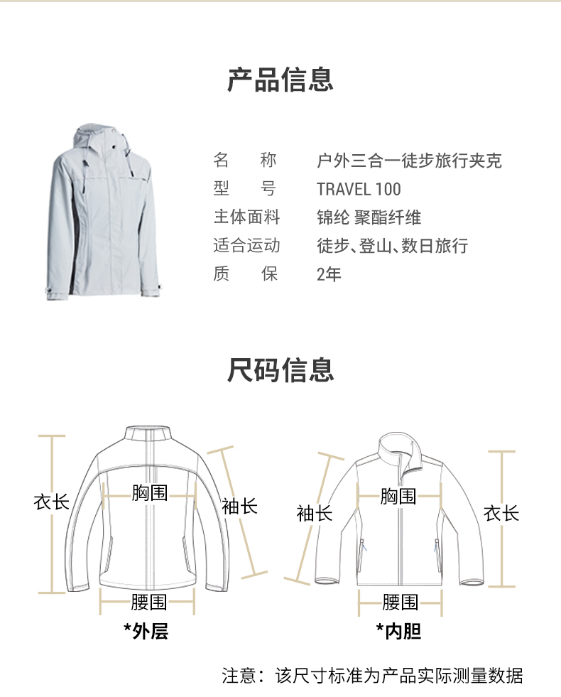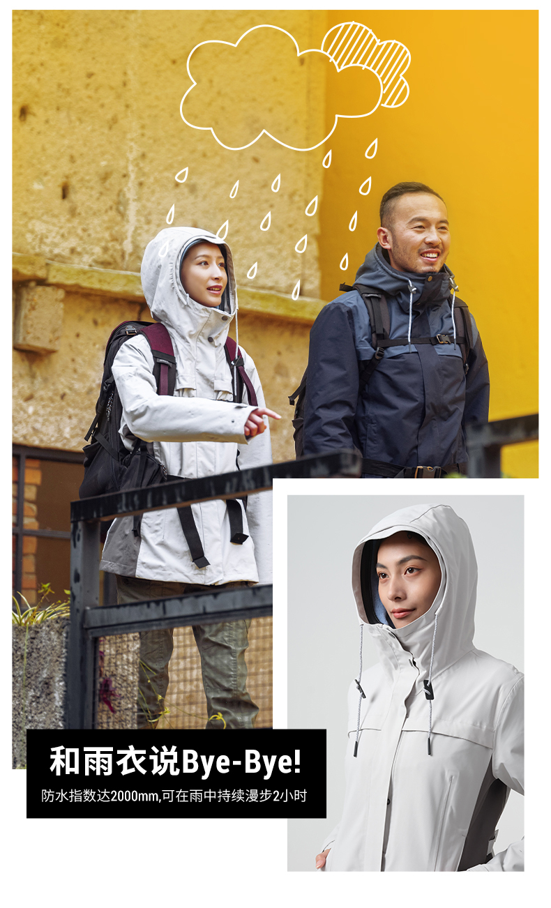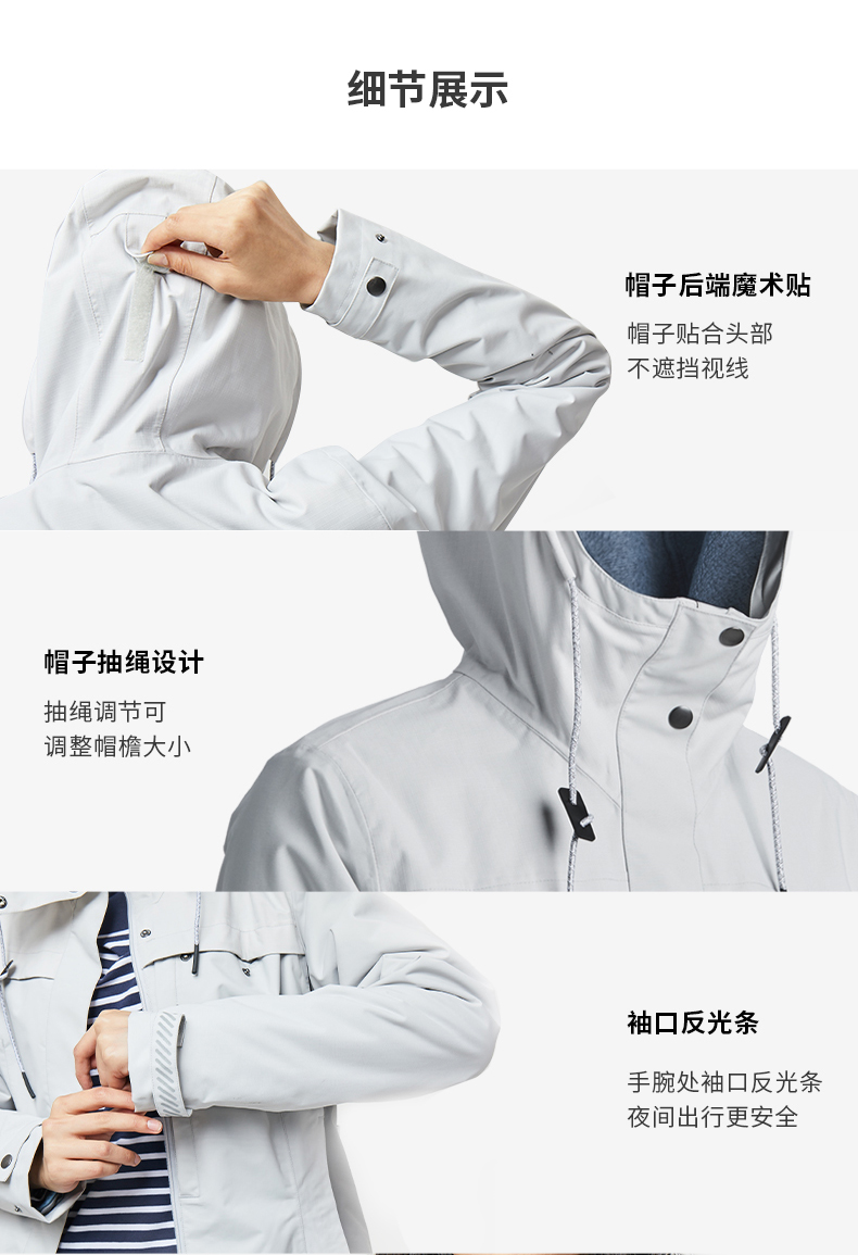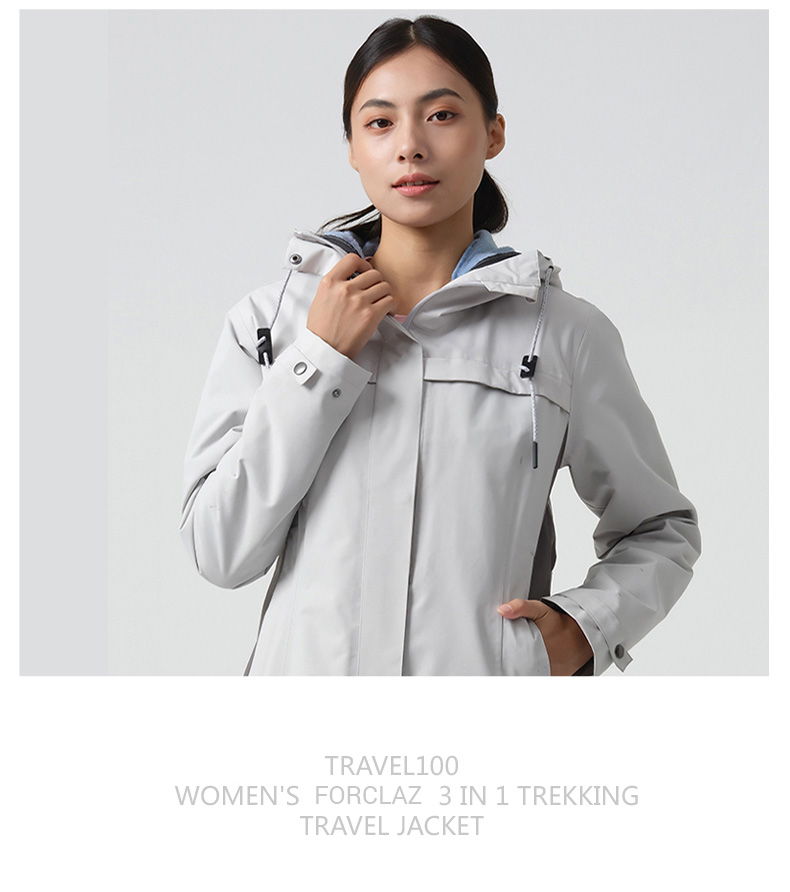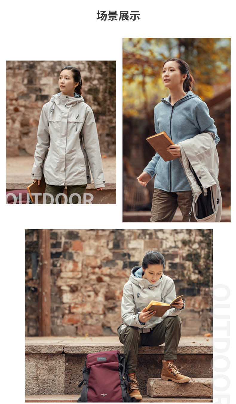 迪卡儂衝鋒衣女三合一秋冬戶外登山防水防風寬鬆工裝夾克外套ODT2