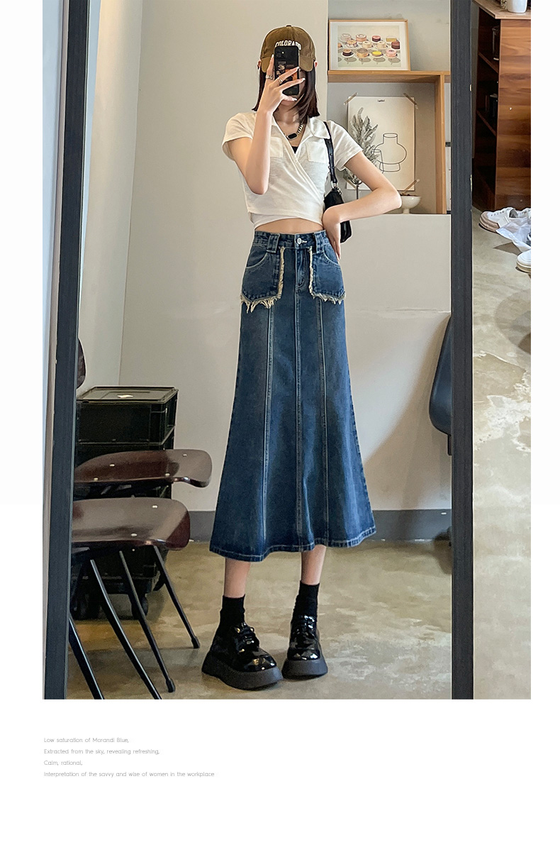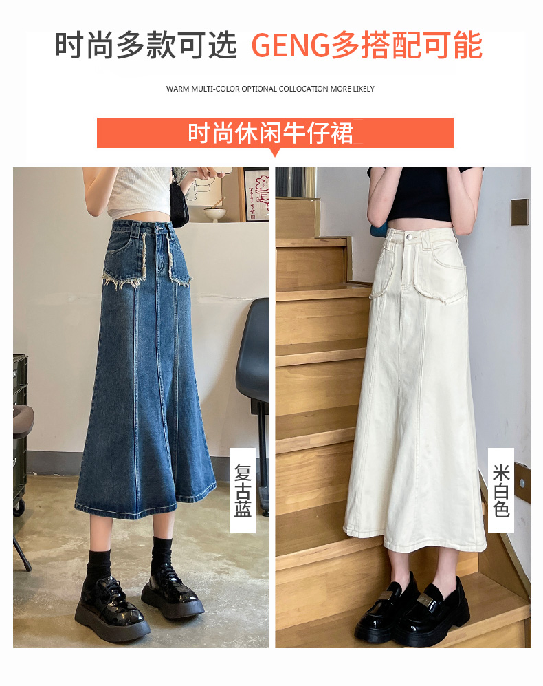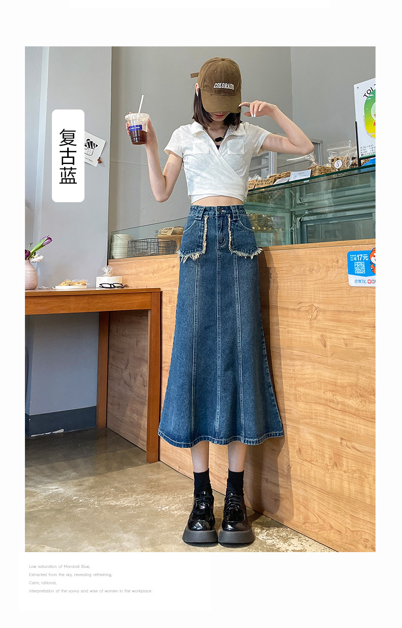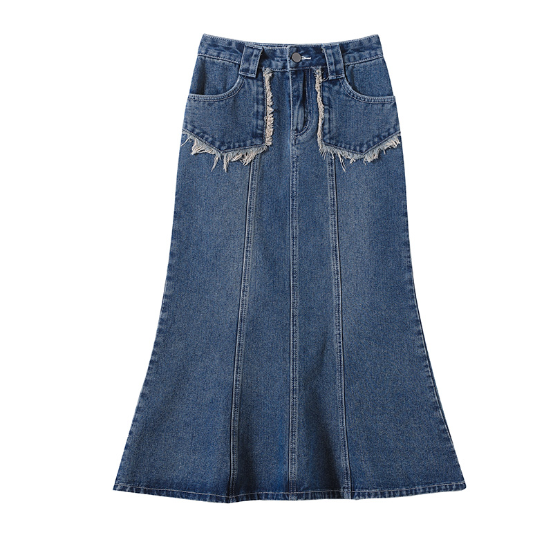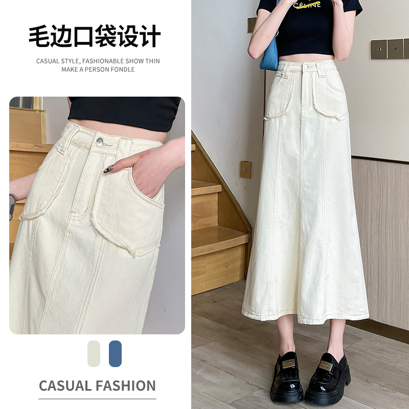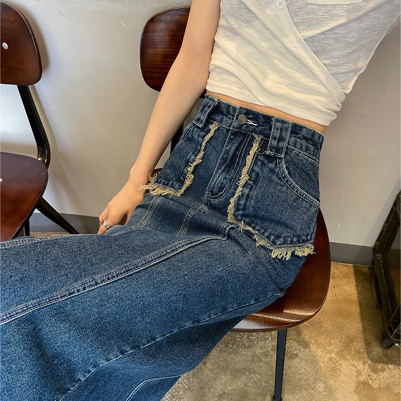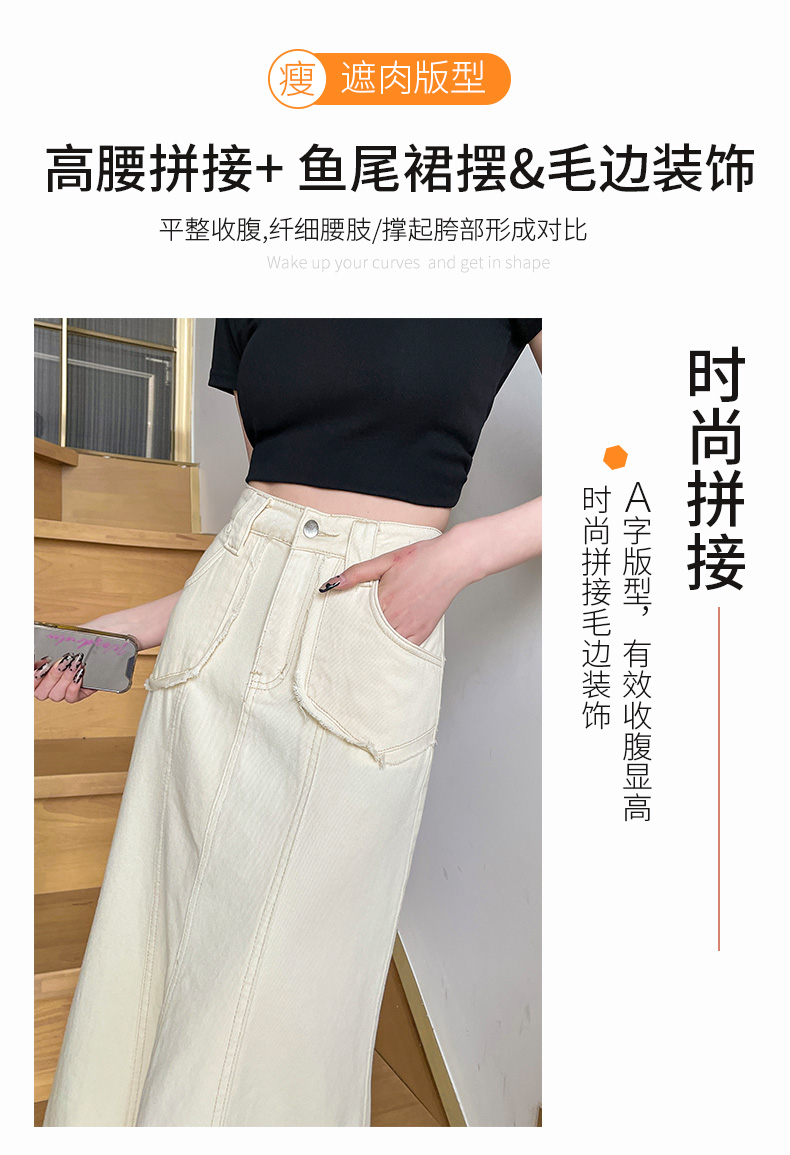 毛邊牛仔裙女夏季小個子中長版高腰垂感荷葉邊a字包臀魚尾半身裙
