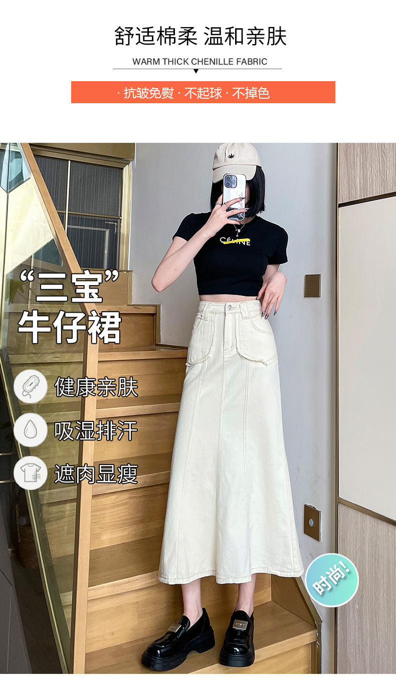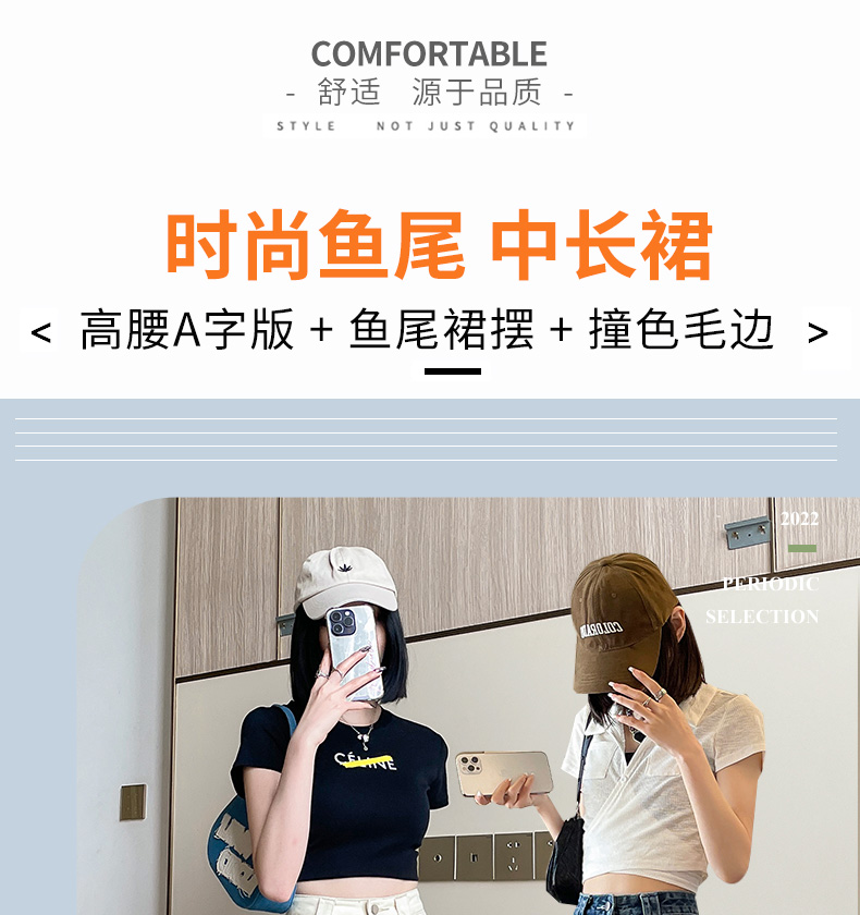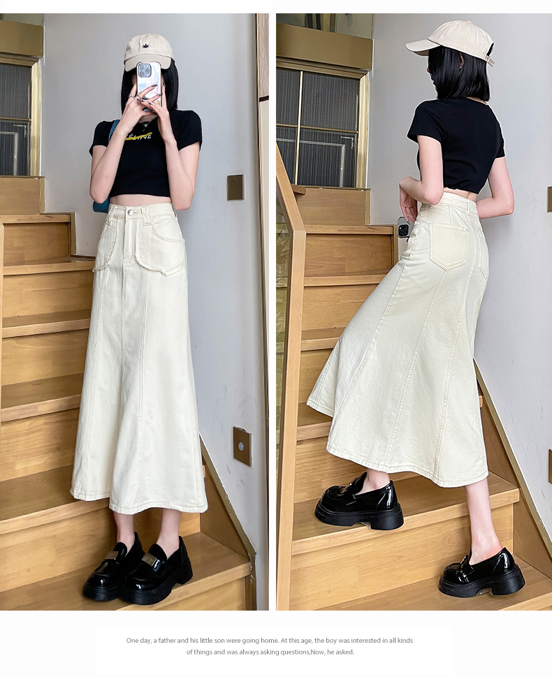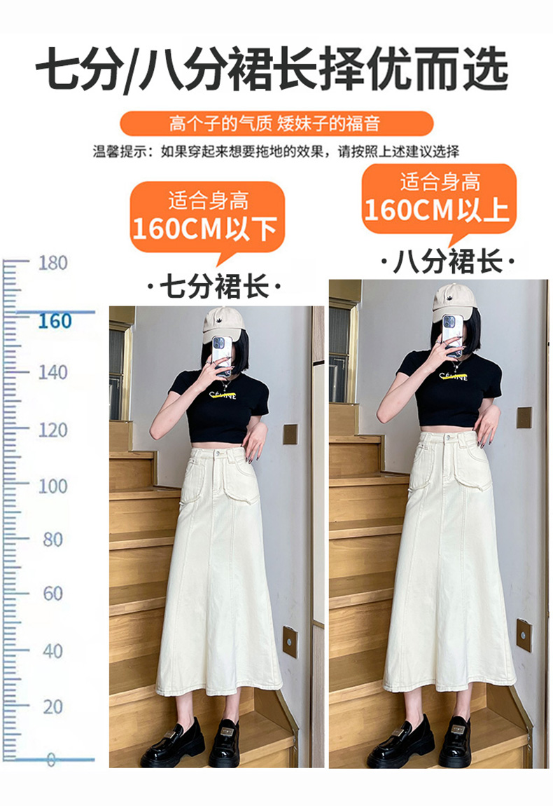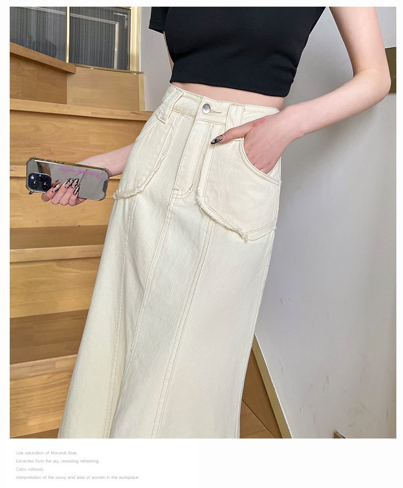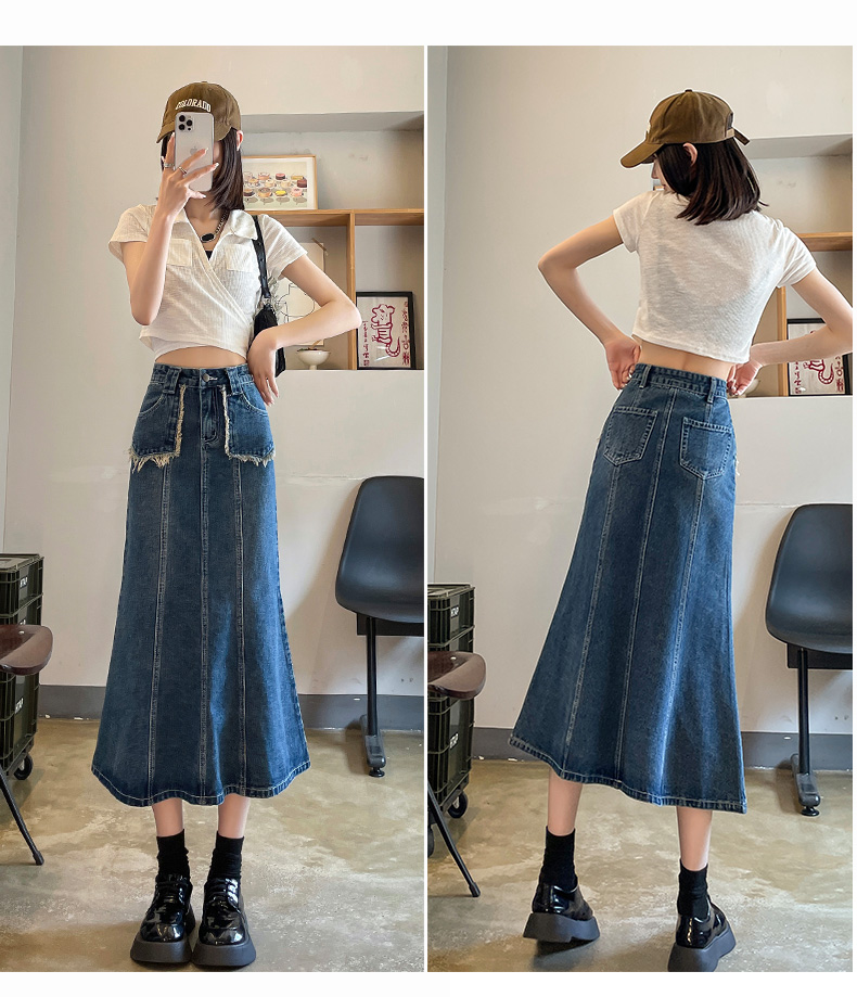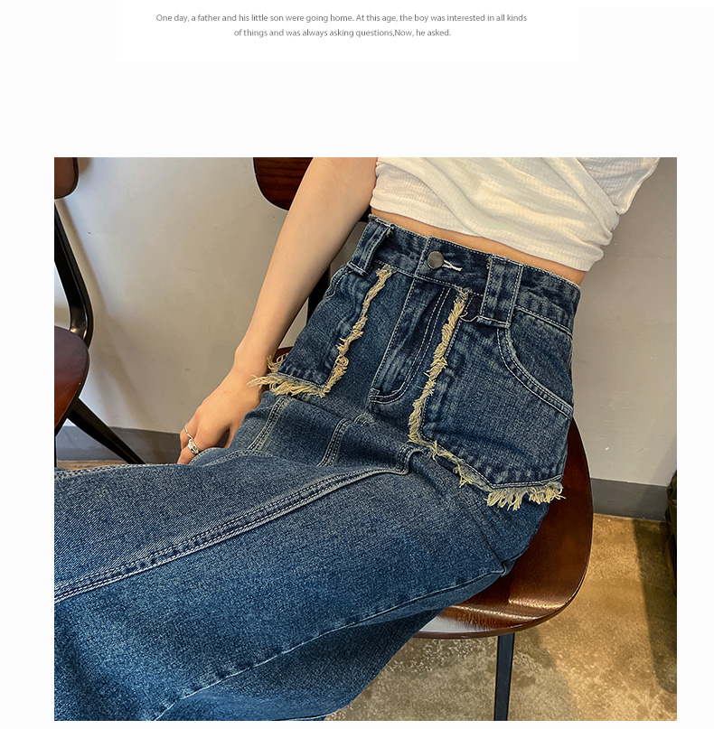 毛邊牛仔裙女夏季小個子中長版高腰垂感荷葉邊a字包臀魚尾半身裙