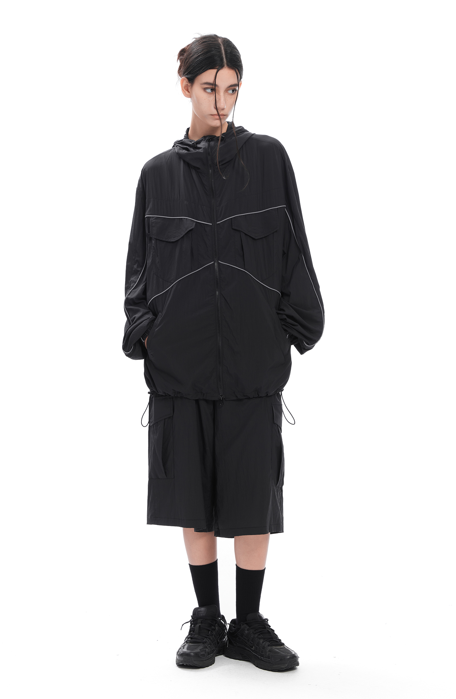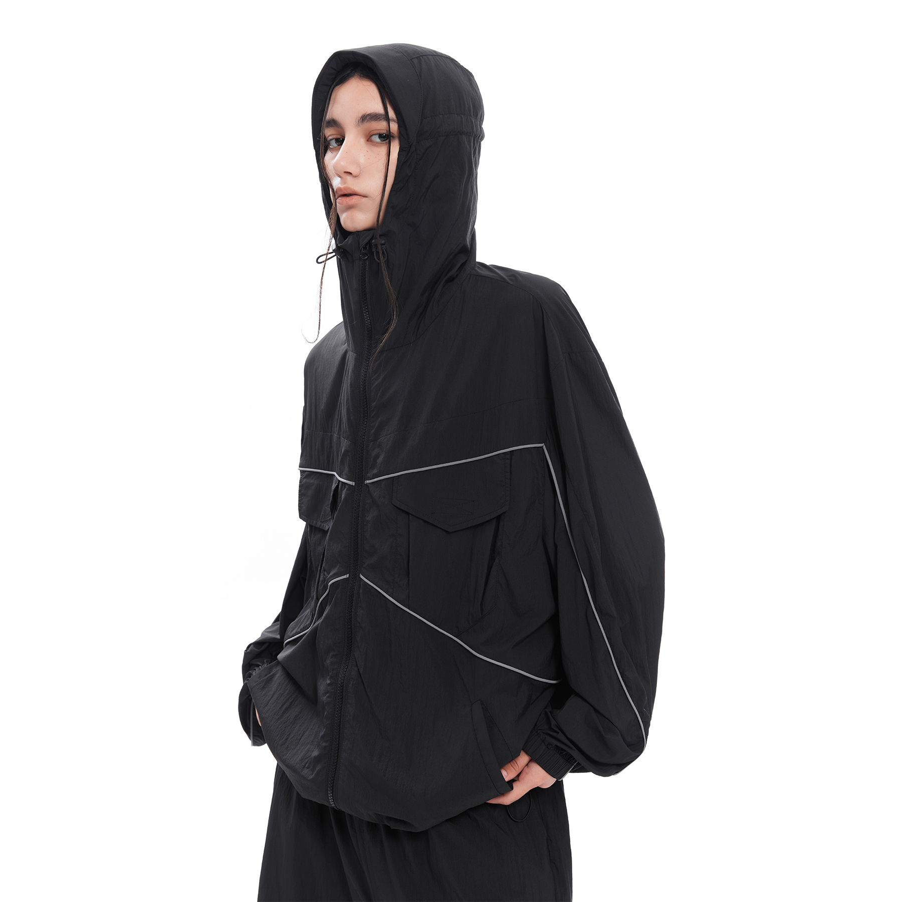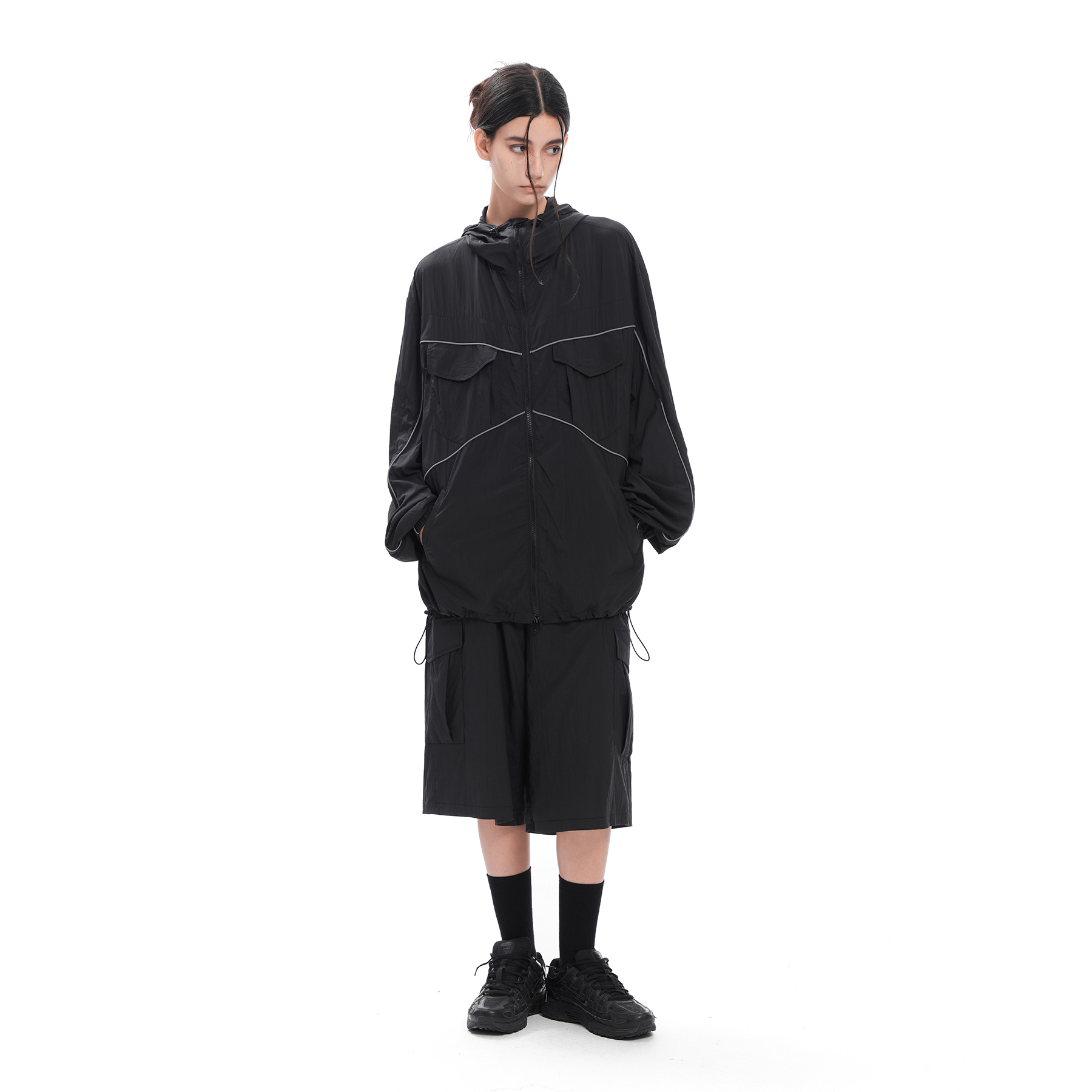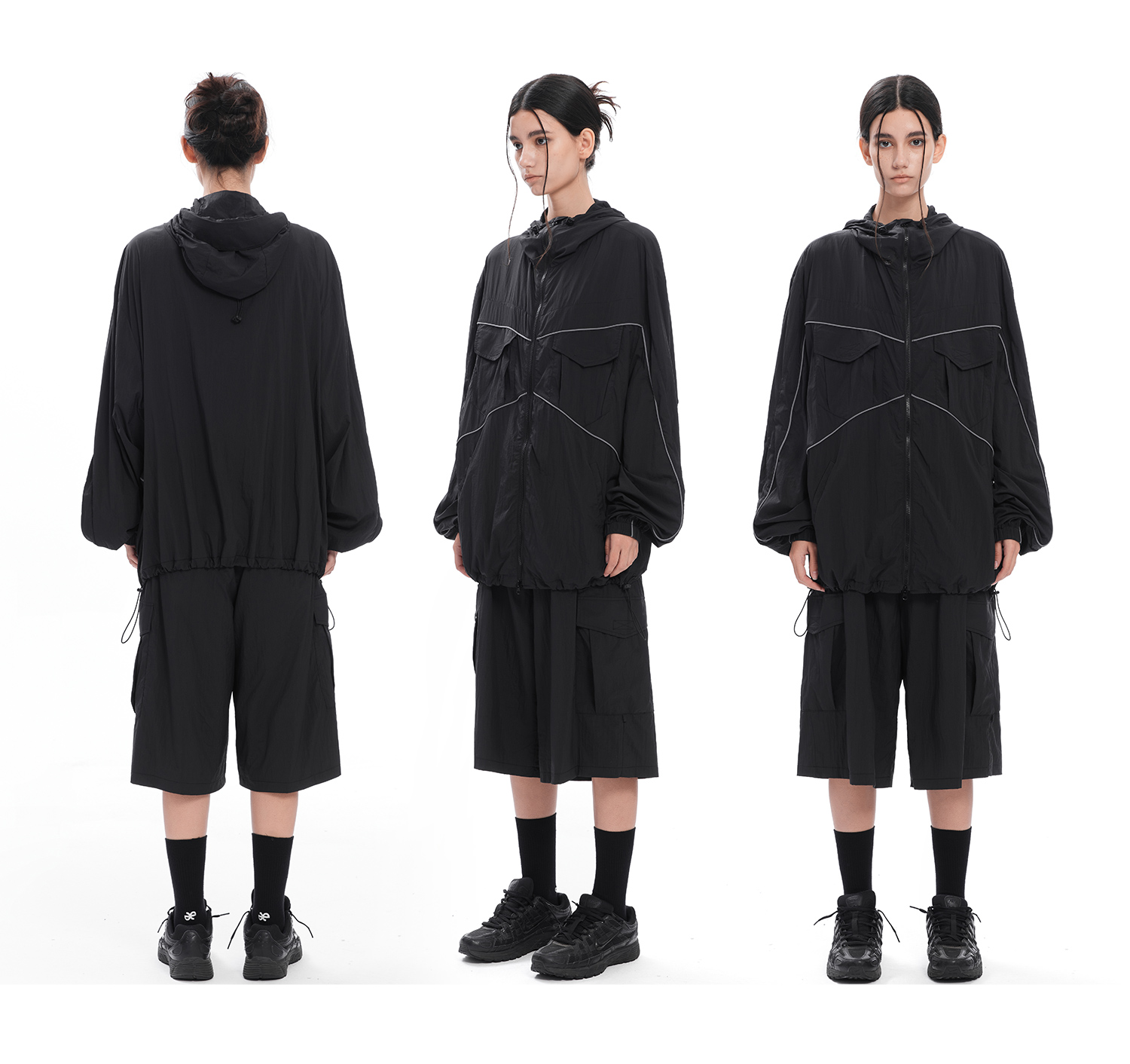 ESAT 23SS黑色廓形連帽UPF50+防曬衣薄款外套
