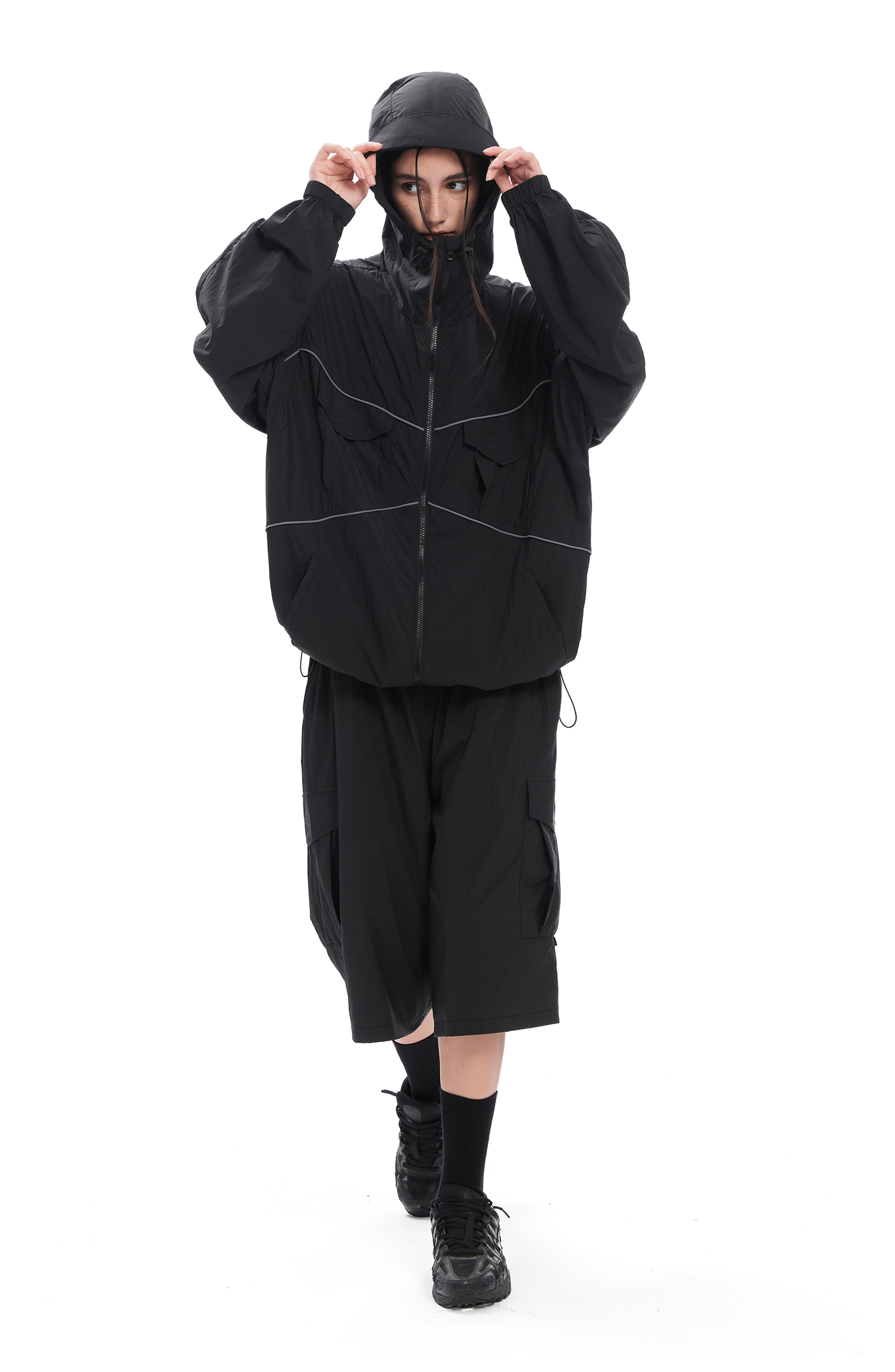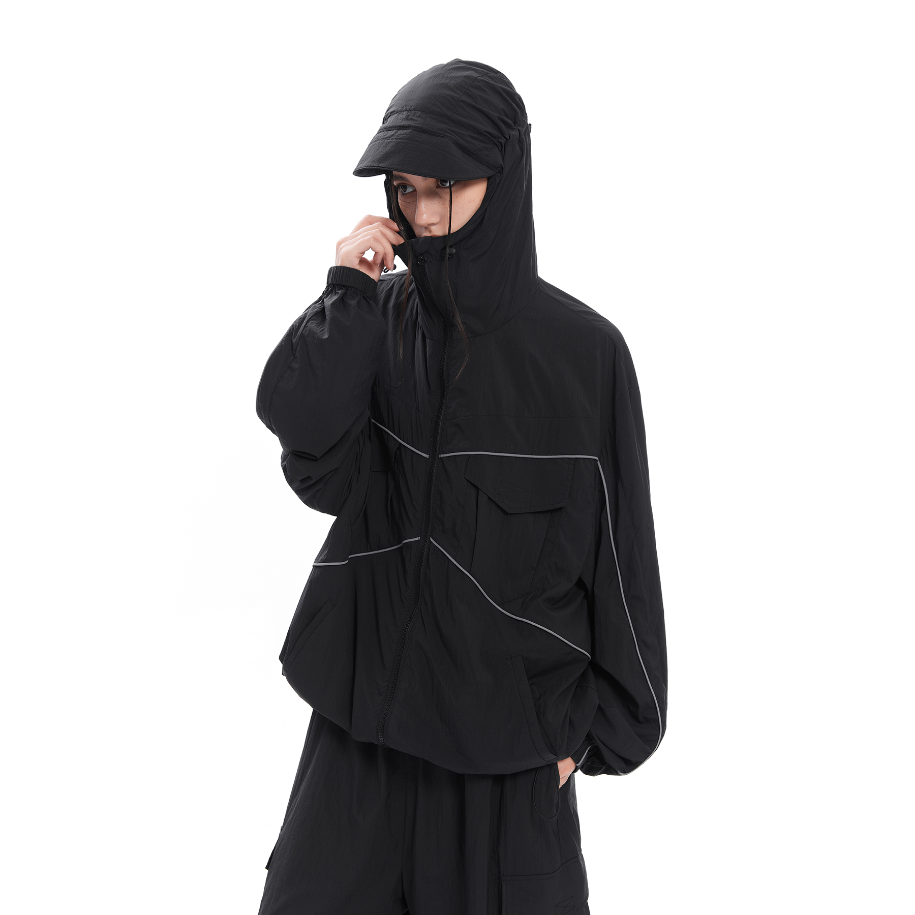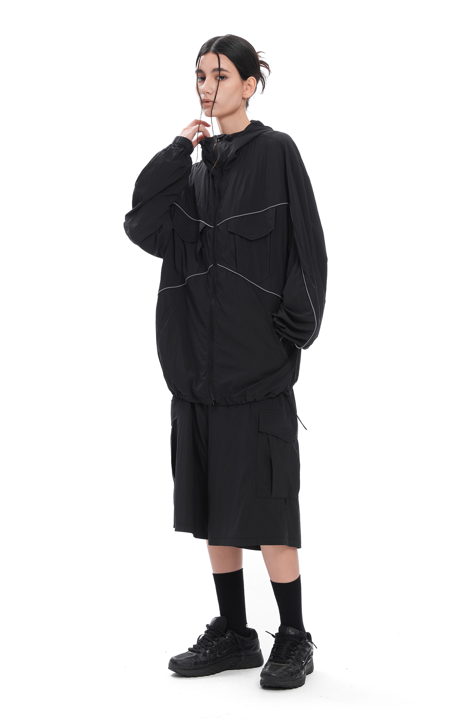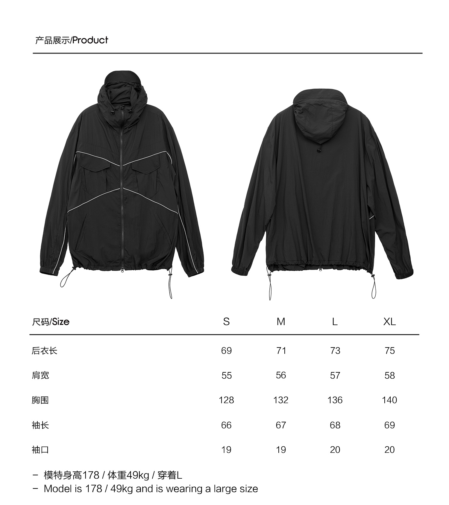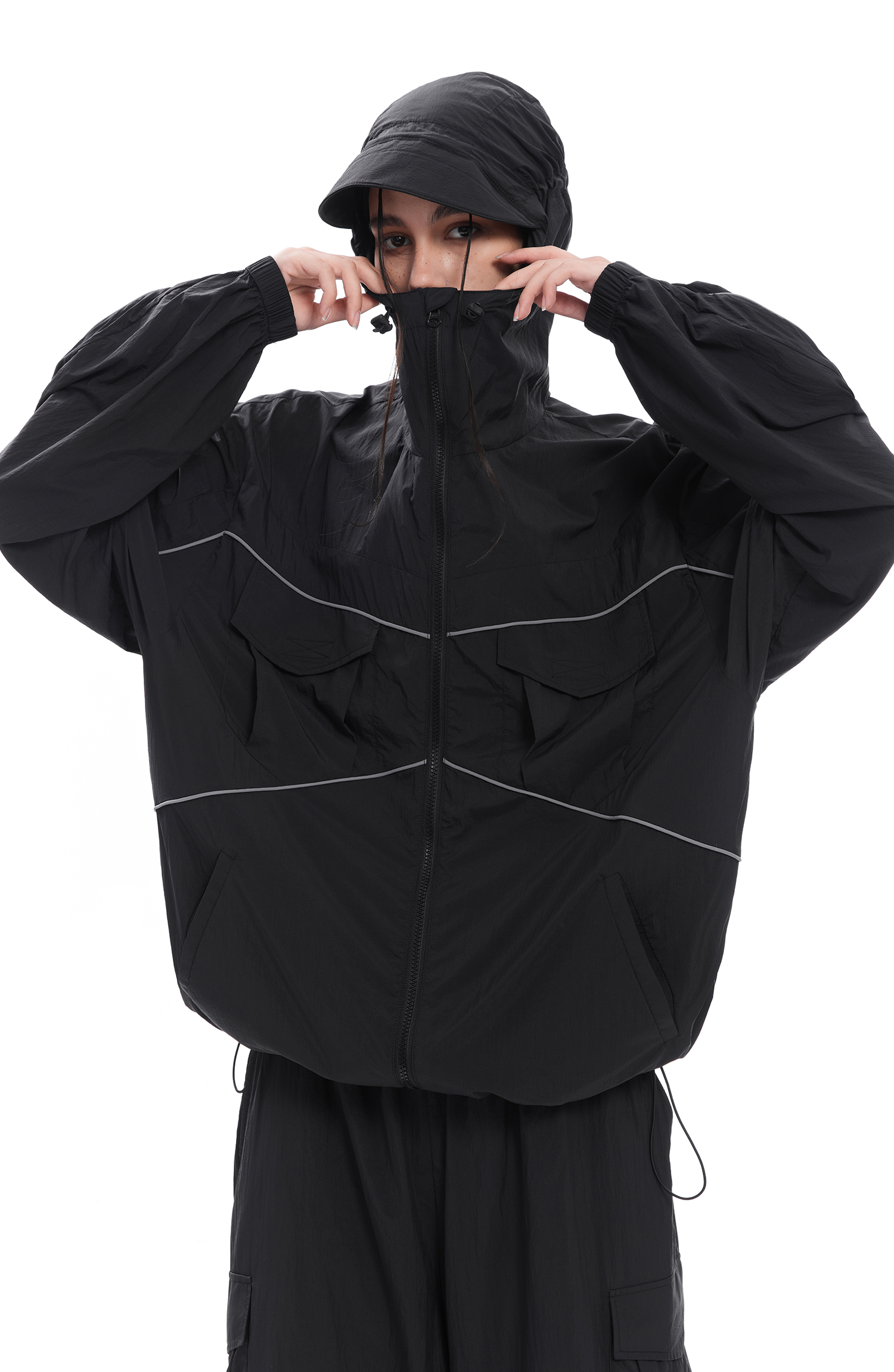 ESAT 23SS黑色廓形連帽UPF50+防曬衣薄款外套
