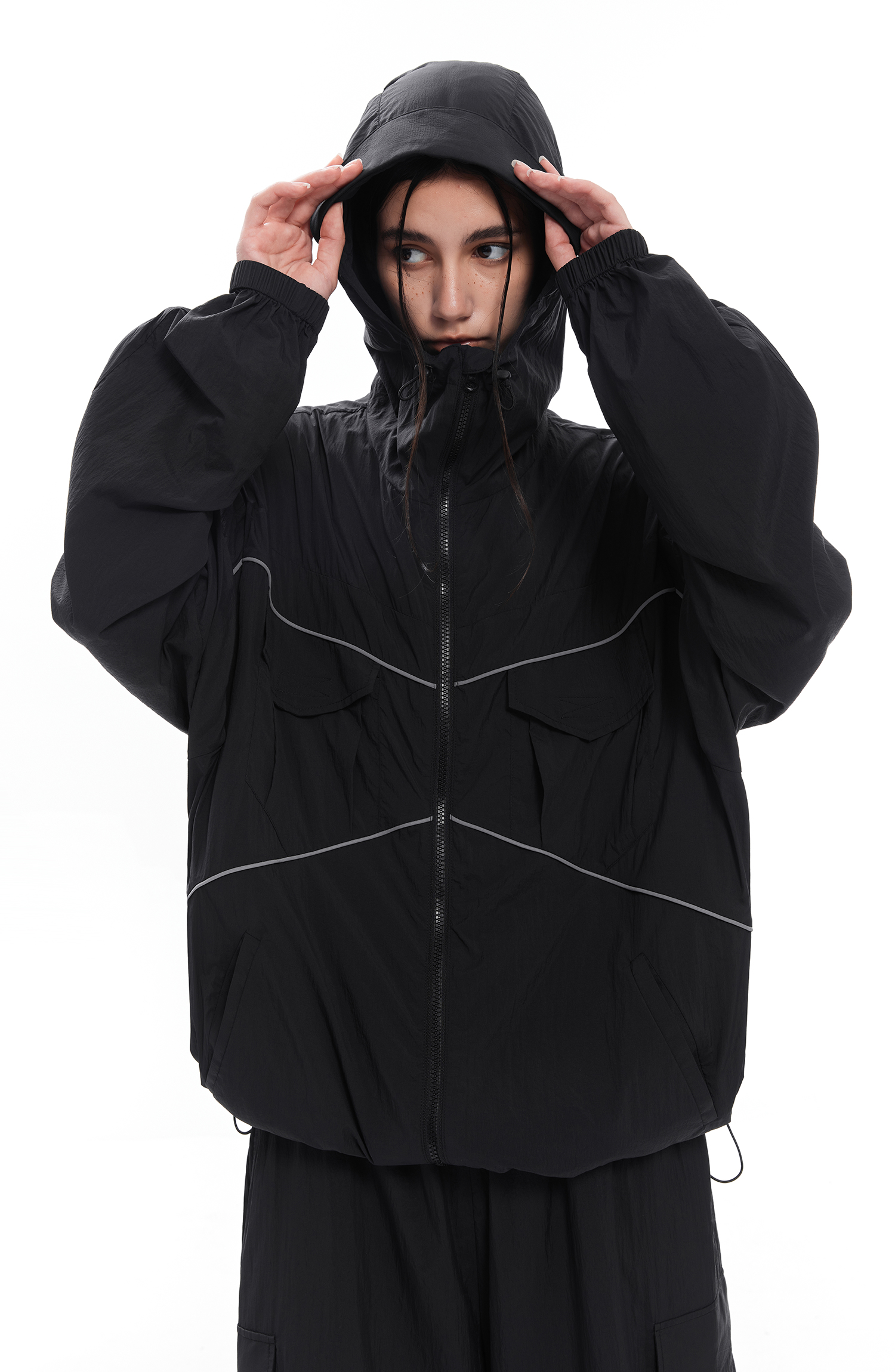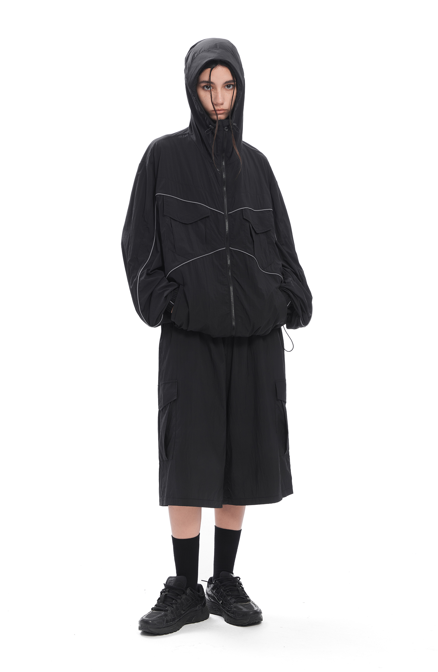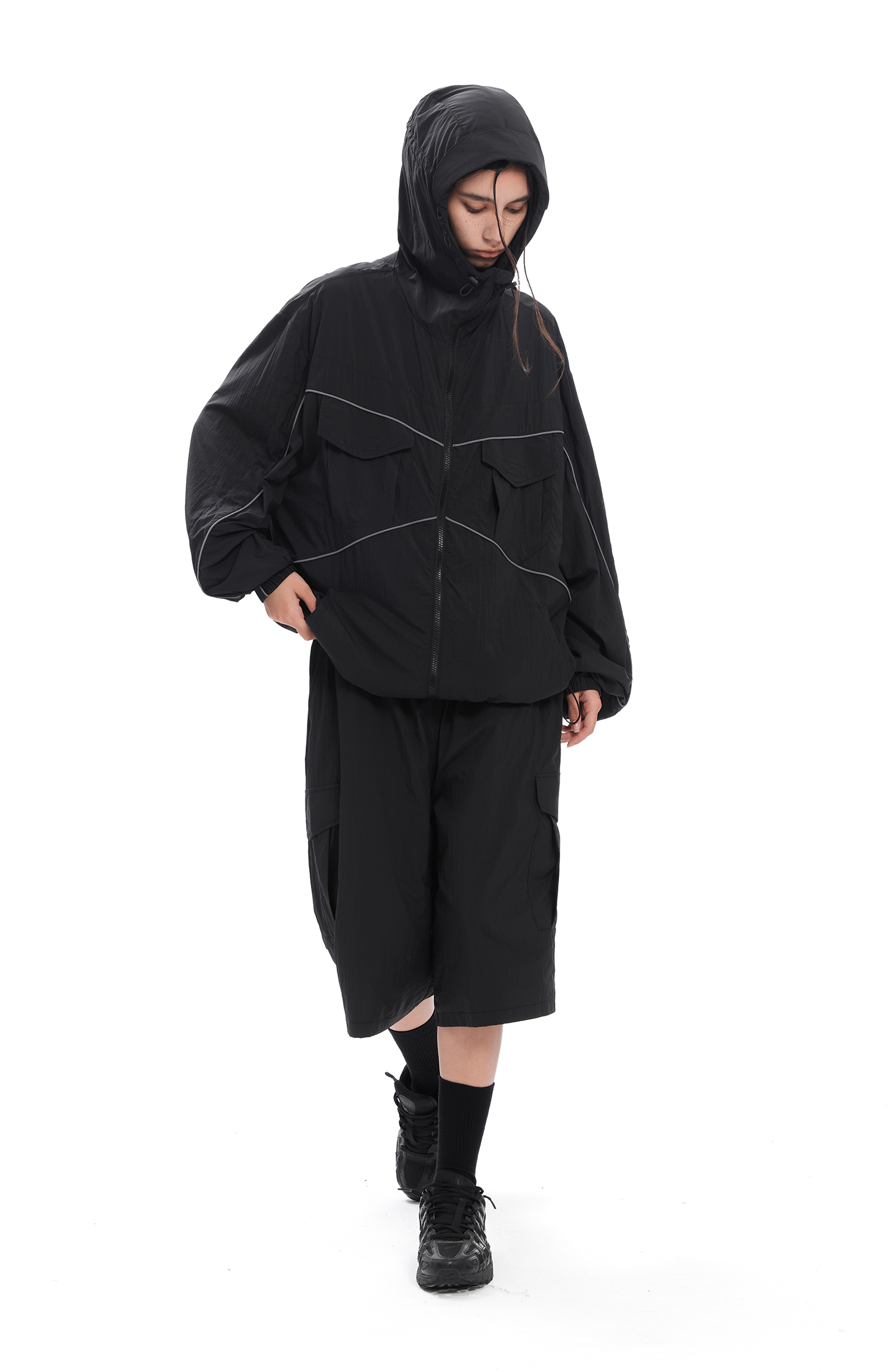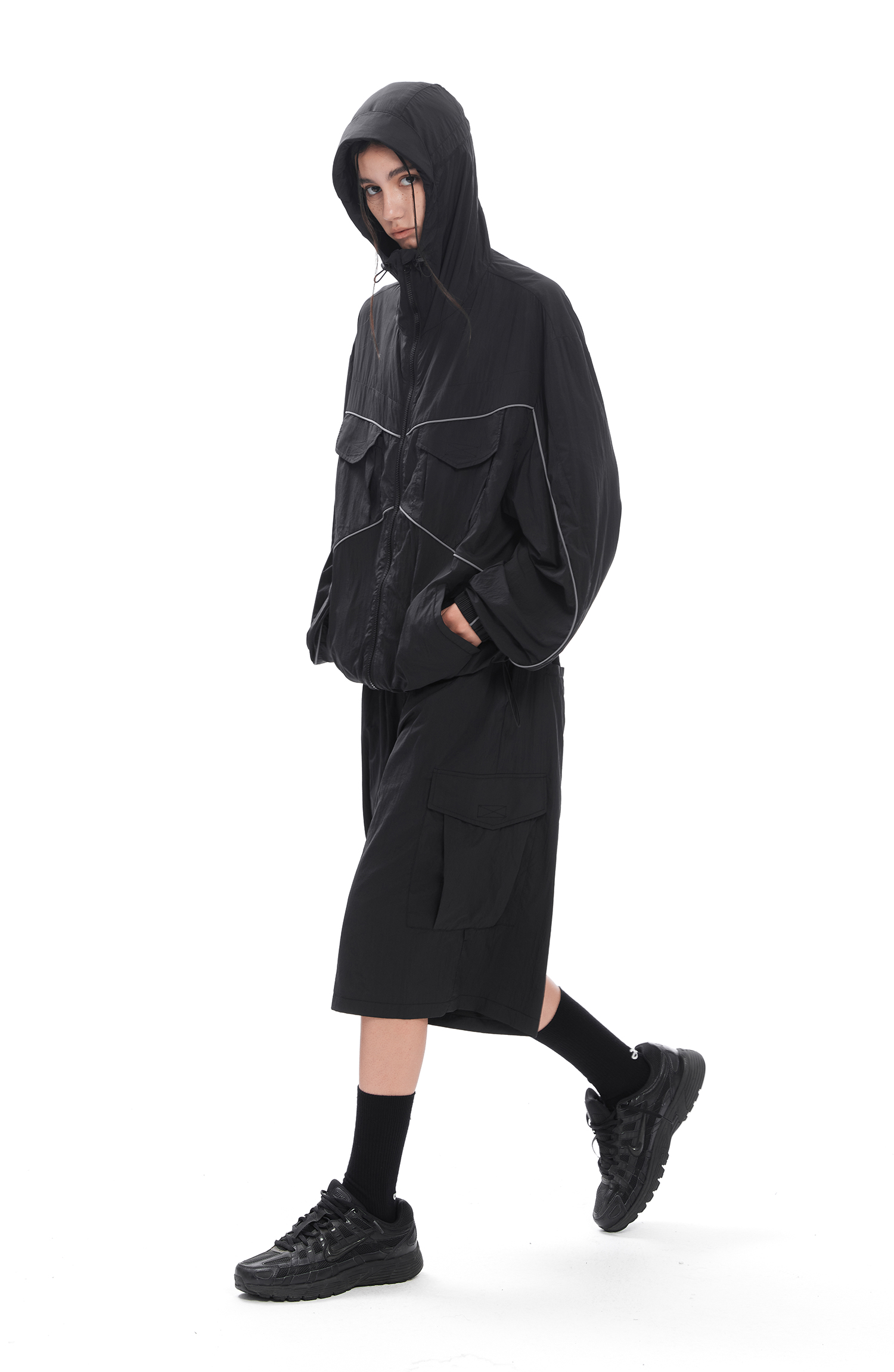 ESAT 23SS黑色廓形連帽UPF50+防曬衣薄款外套