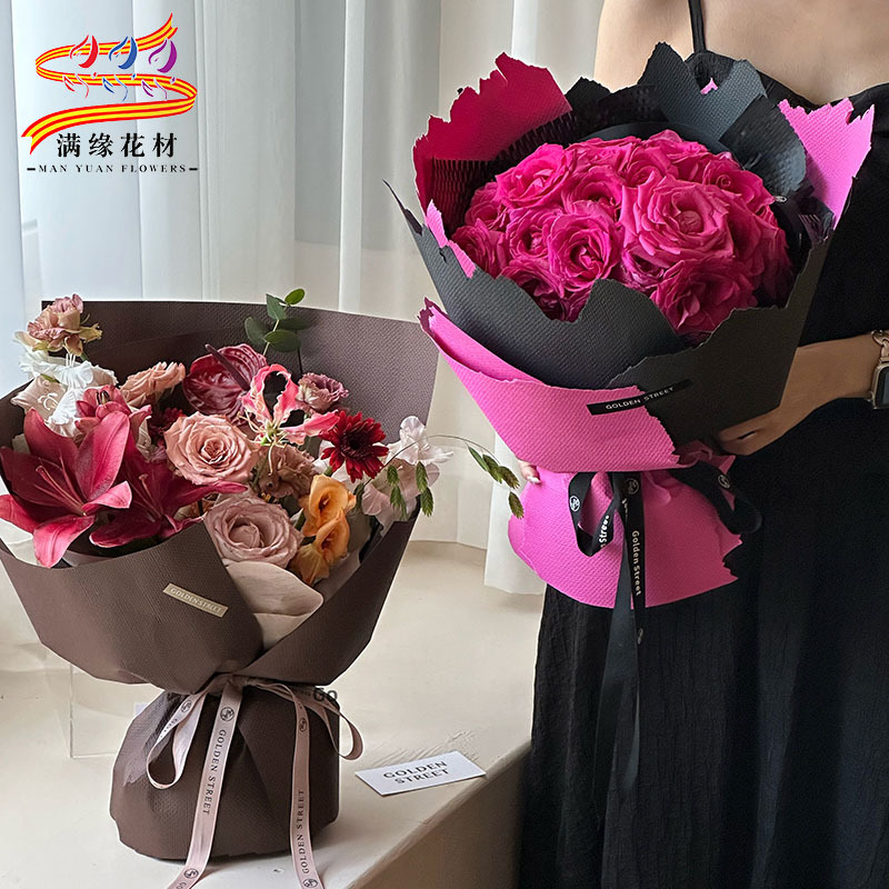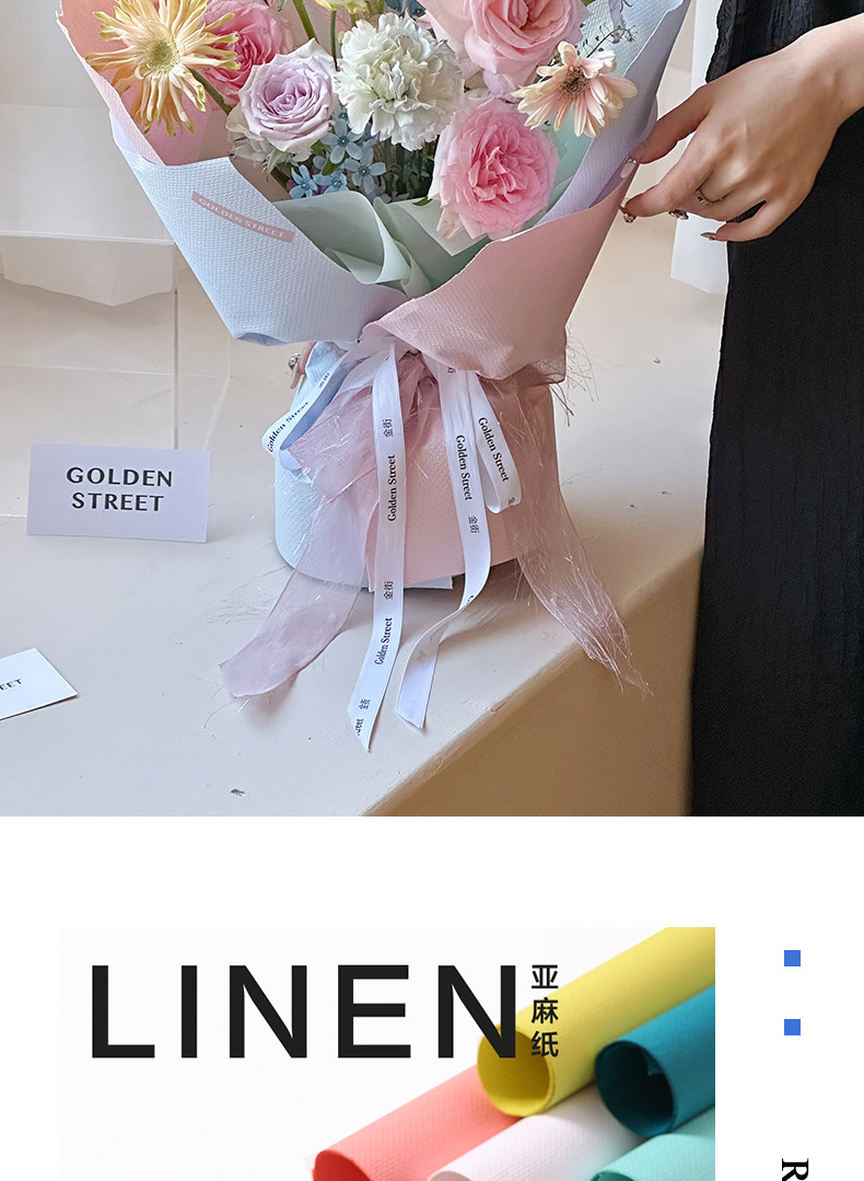 新款亚麻纸鲜花包装材料纯色系列花束包装纸手工DIY花店花艺资材