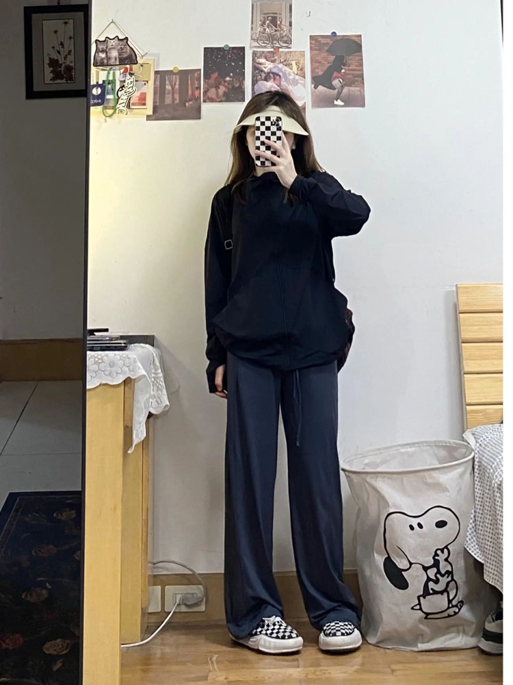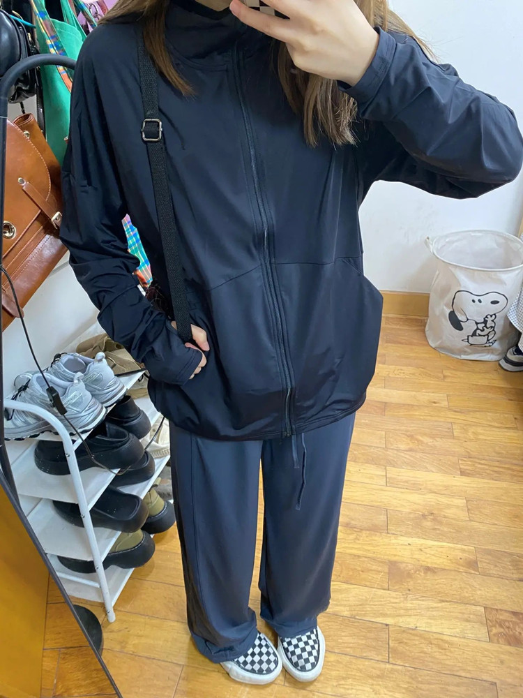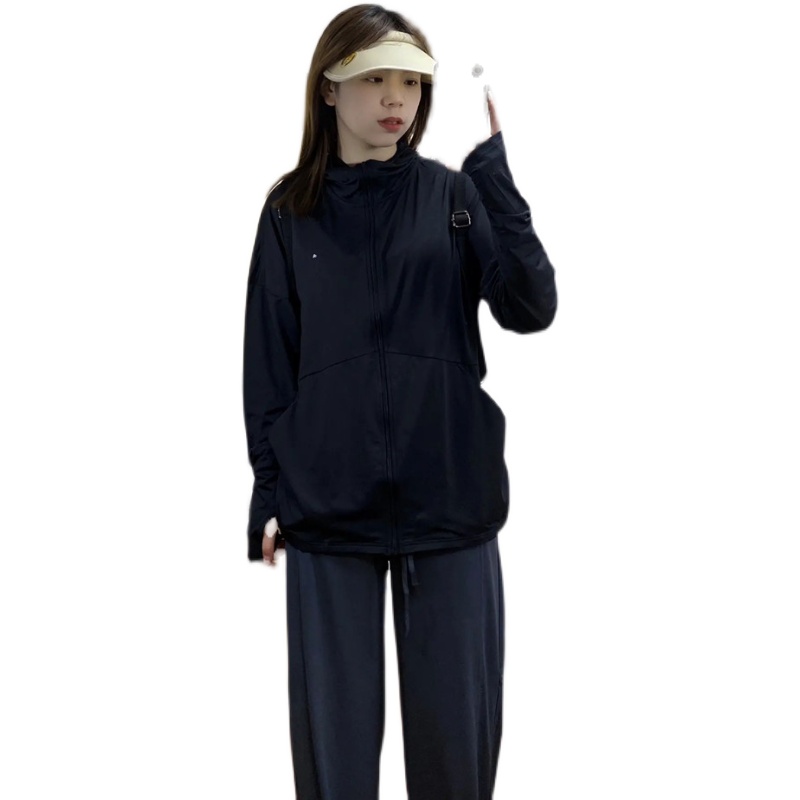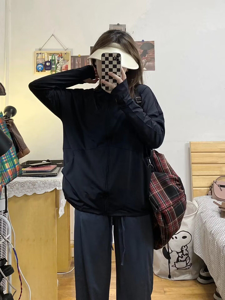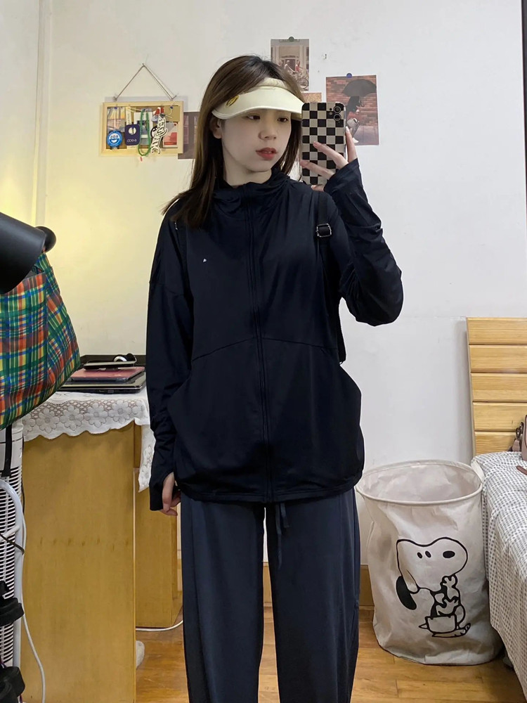 黑色冰絲防曬衣女2023新款春夏運動薄外套抗UV連帽開衫防曬服