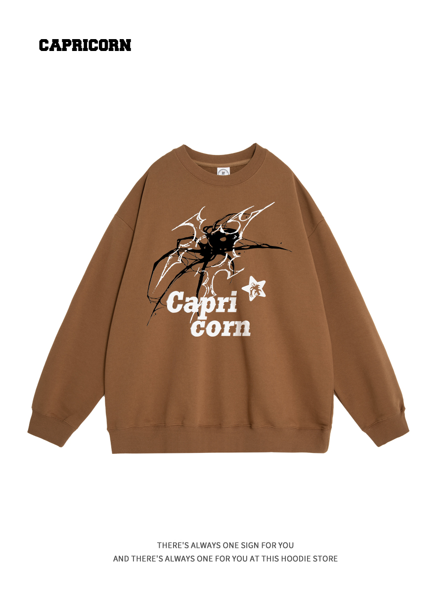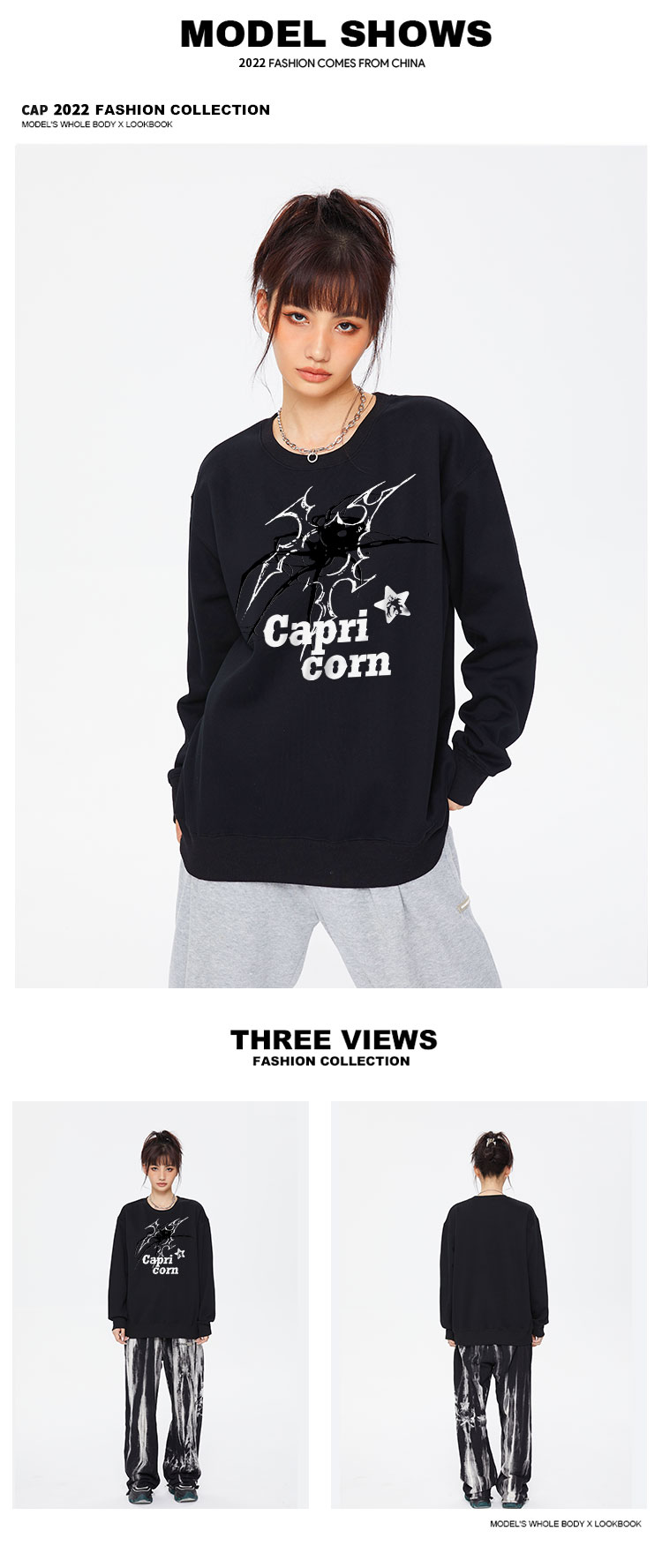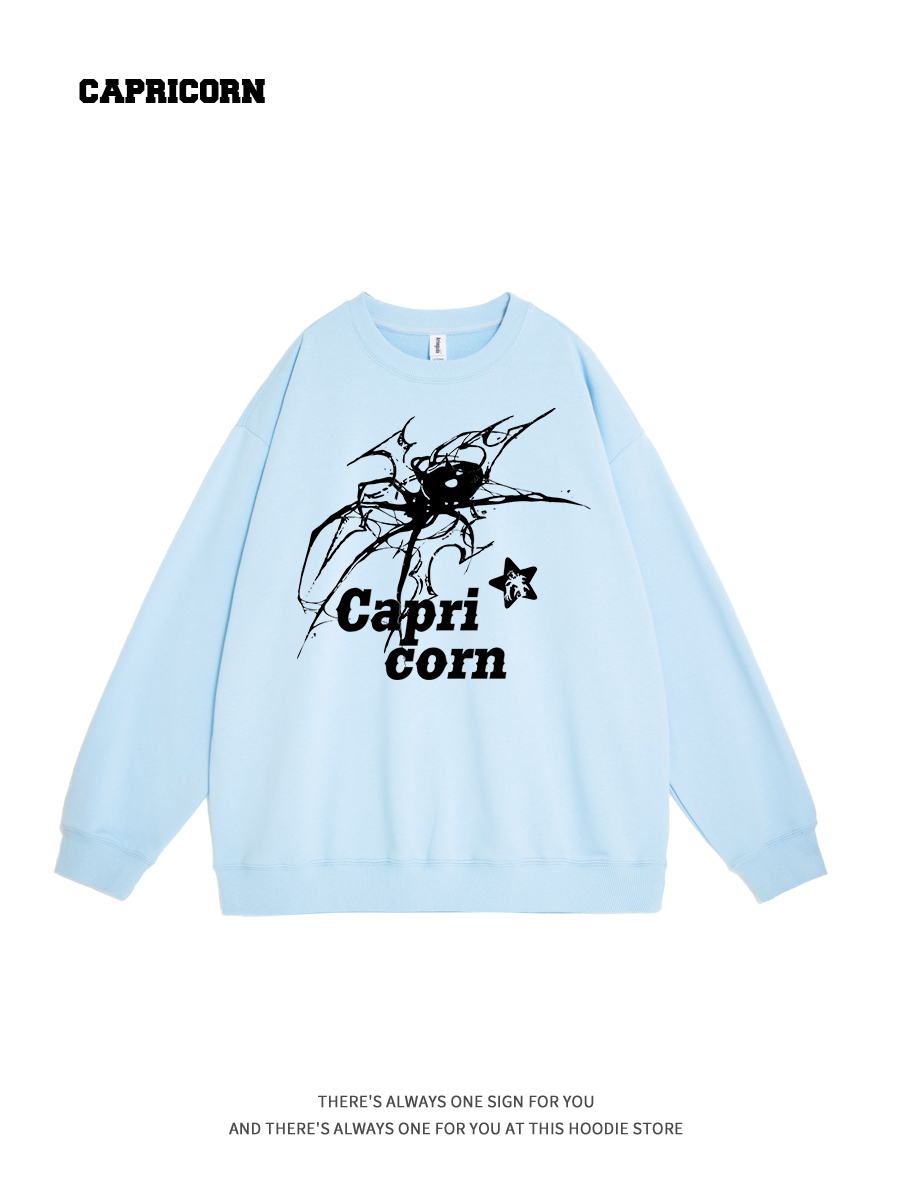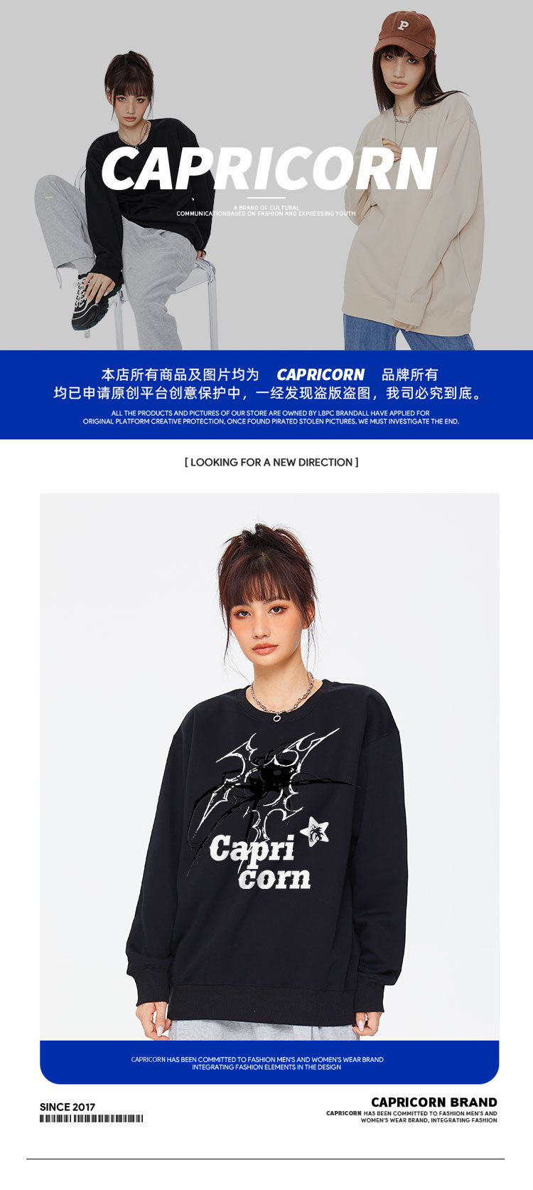 CAPRICORN蜘蛛高街歐美潮圓領厚棉T女2023新款加絨加厚長袖上衣秋