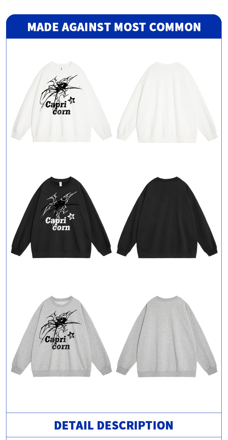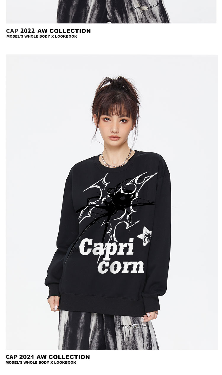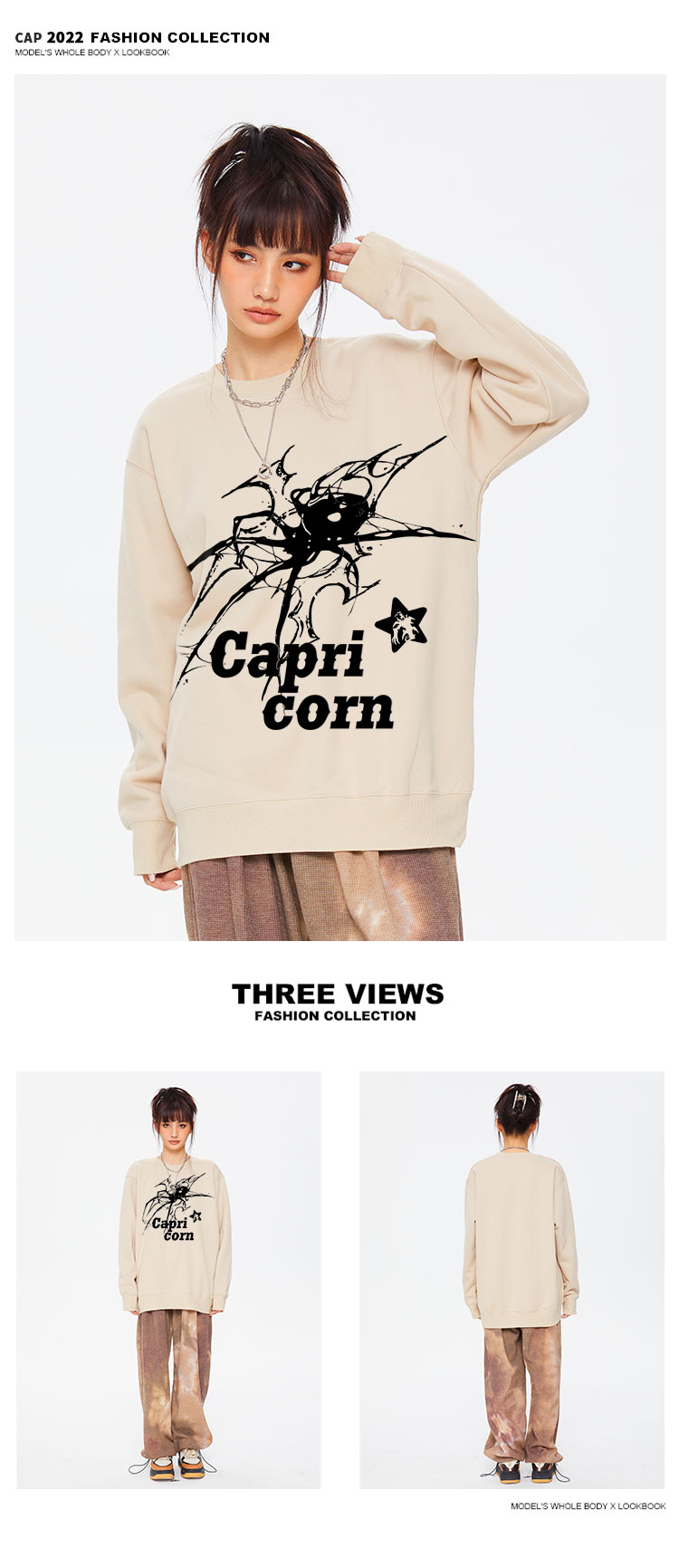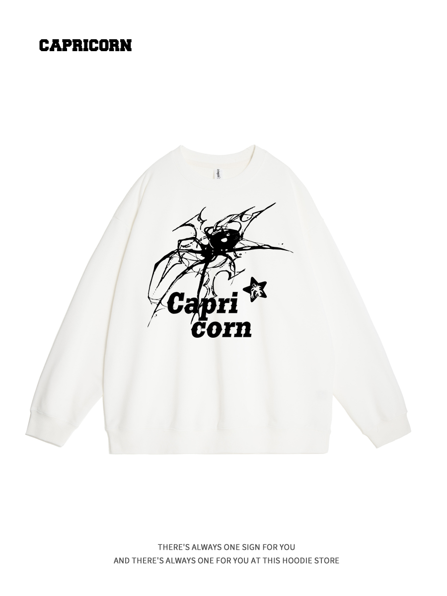 CAPRICORN蜘蛛高街歐美潮圓領厚棉T女2023新款加絨加厚長袖上衣秋