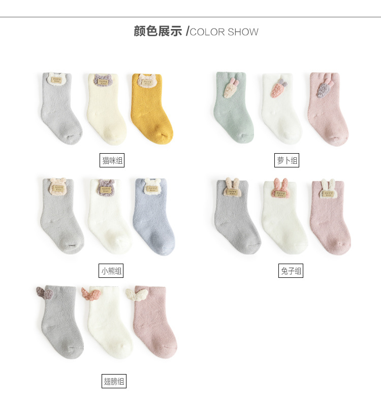 20新款婴儿袜子秋冬毛圈加厚卡通配饰宝宝袜子松口可爱新生儿棉袜