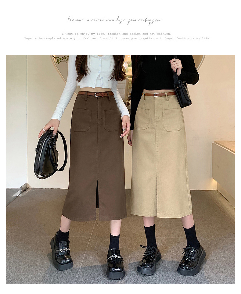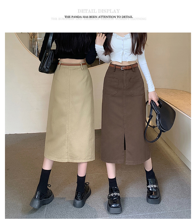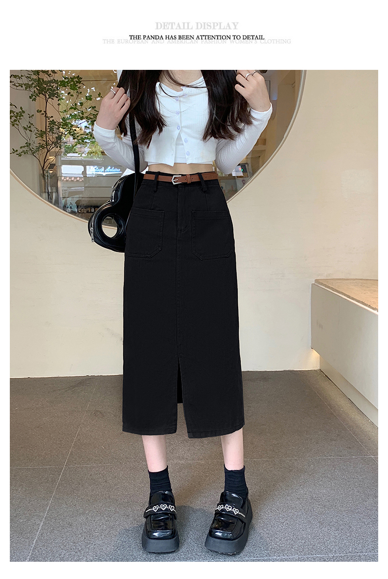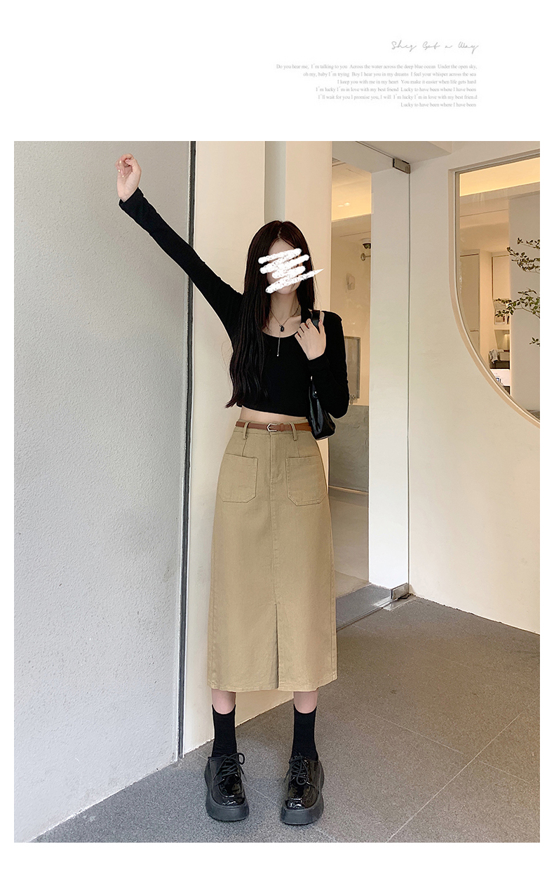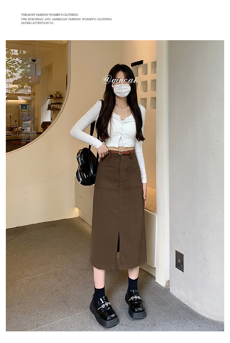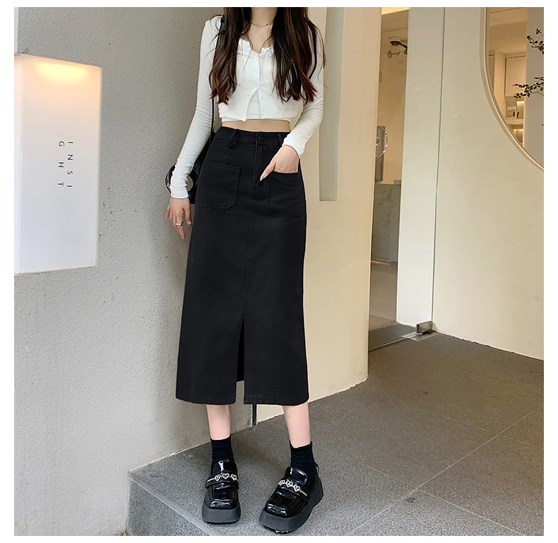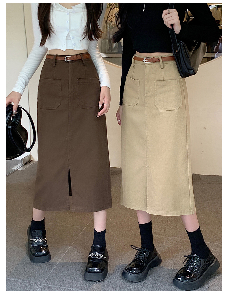 開叉一步牛仔裙卡其色半身裙女春夏中長版直筒包臀a字裙2023新款