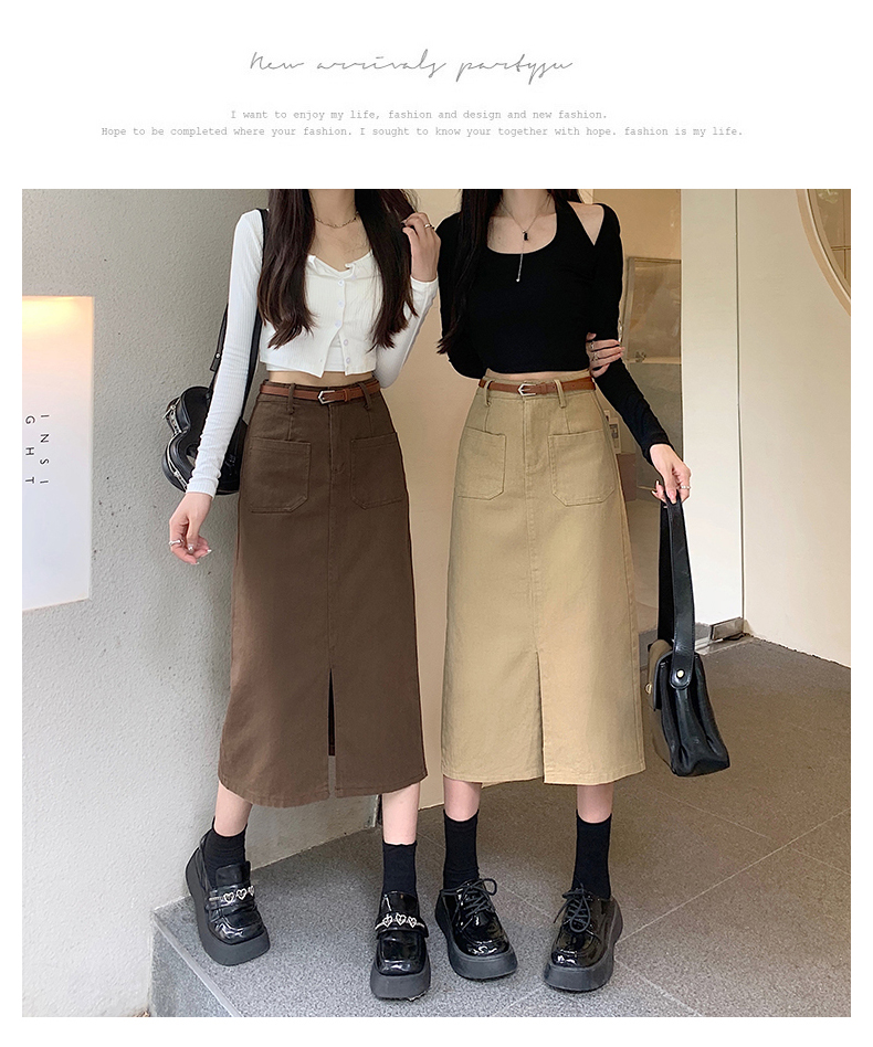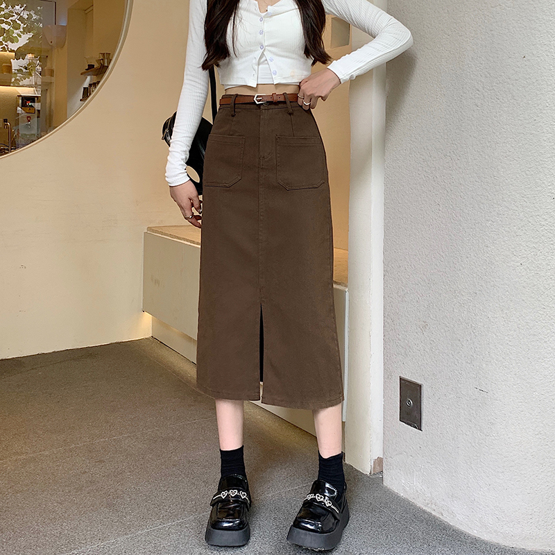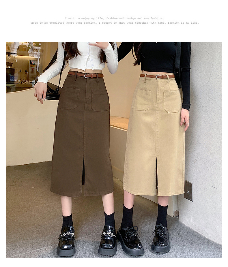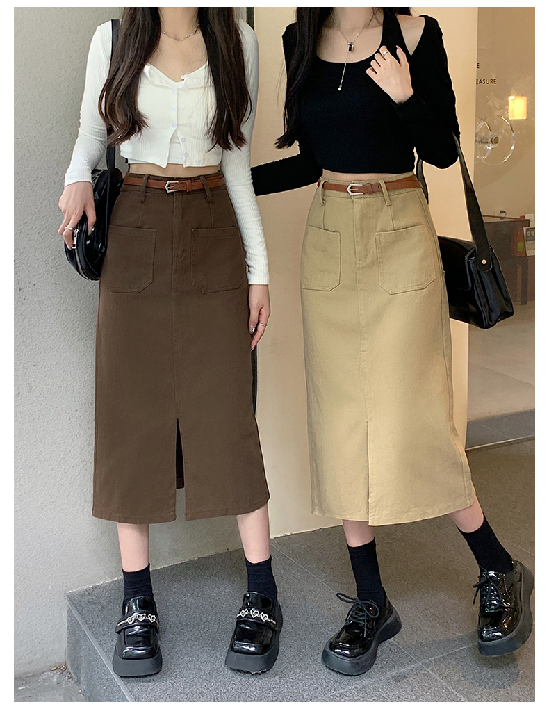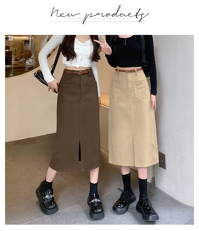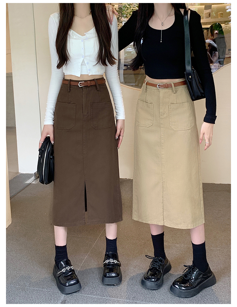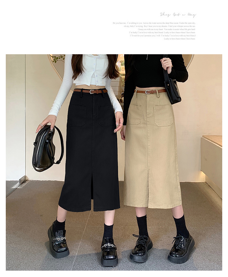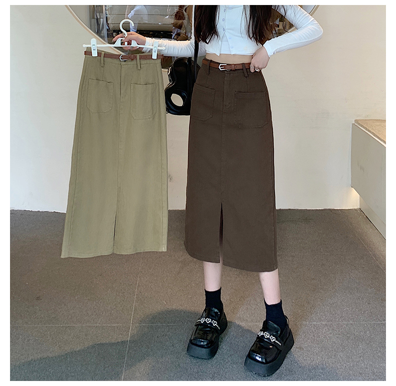 開叉一步牛仔裙卡其色半身裙女春夏中長版直筒包臀a字裙2023新款