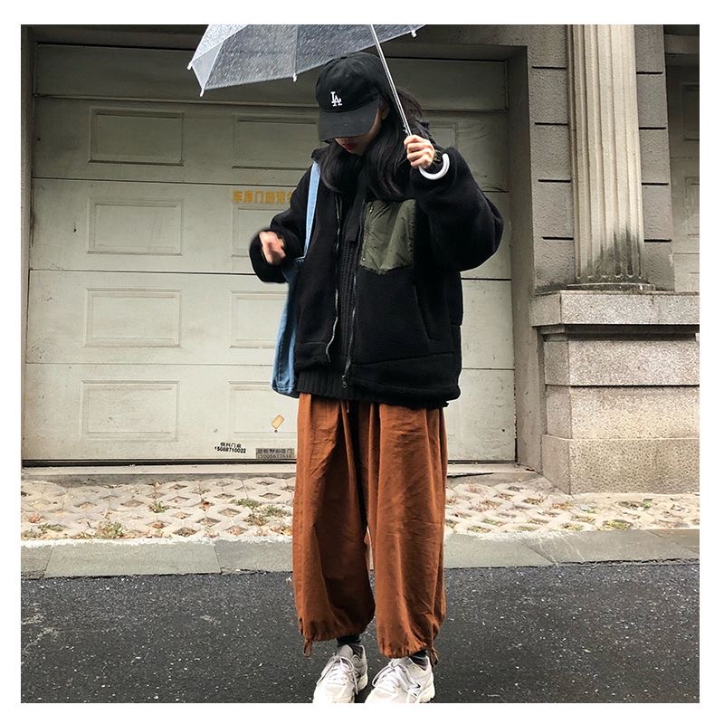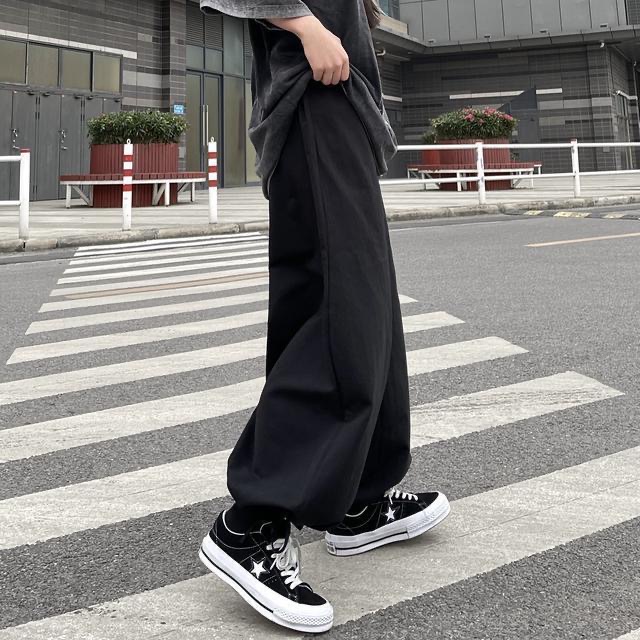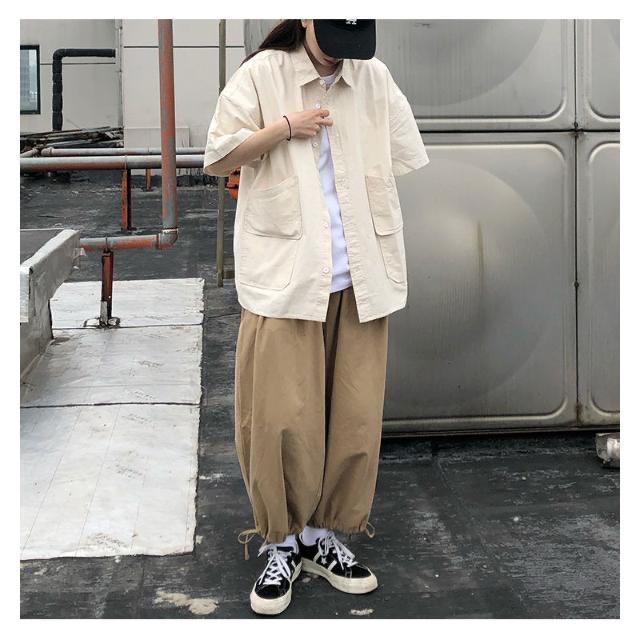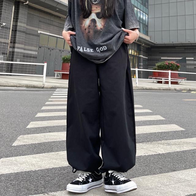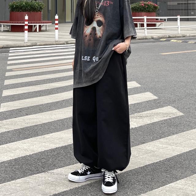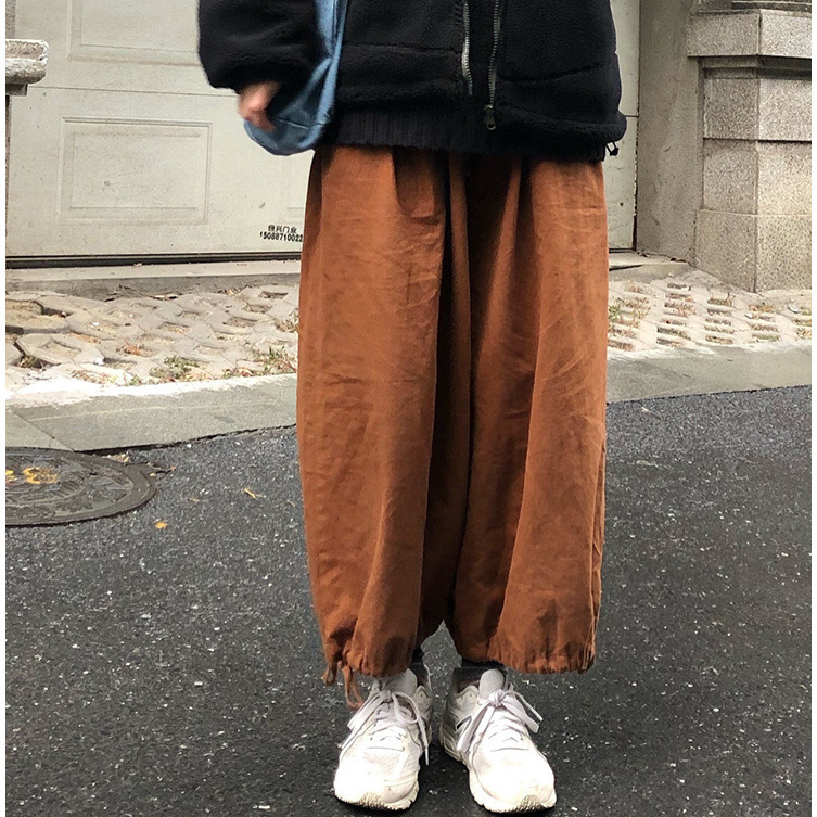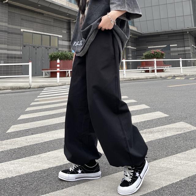 日系ins復古束腳燈籠褲學生高街抽繩闊腿工裝褲休閒長褲子男女潮
