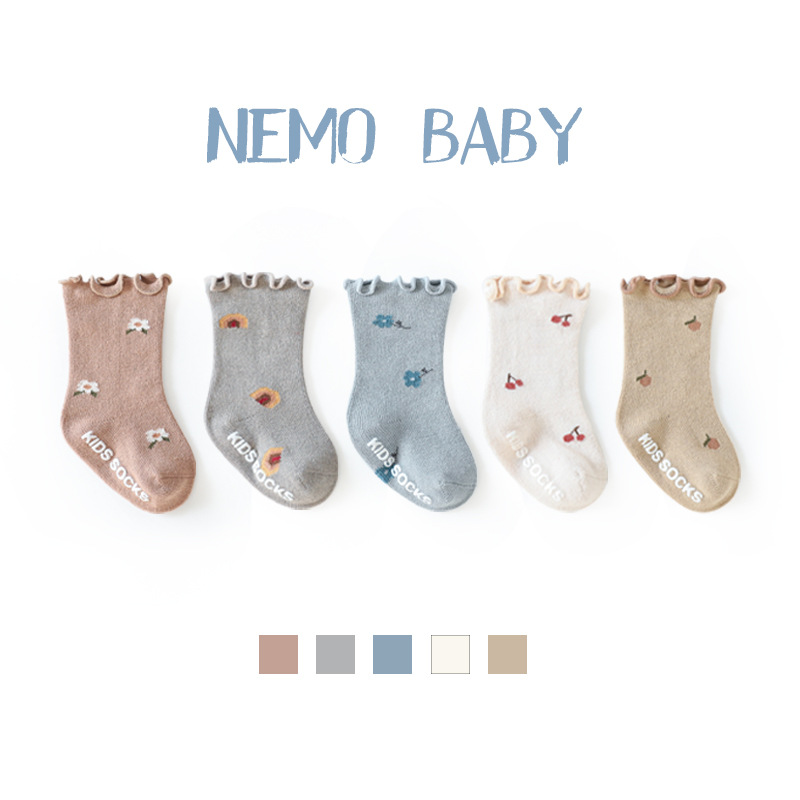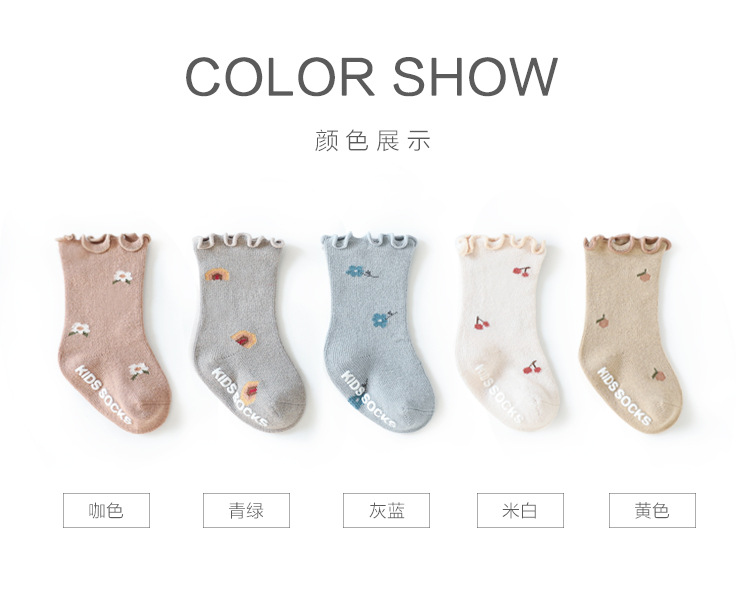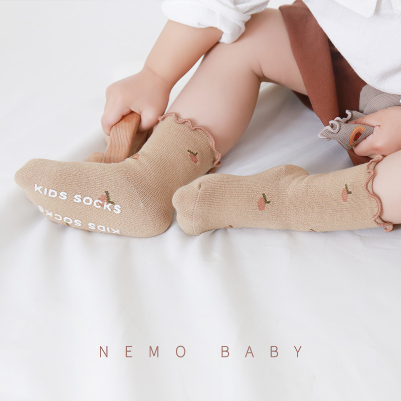 21婴儿宝宝袜子秋冬精梳棉新生儿童松口防滑男女童无骨中筒地板袜