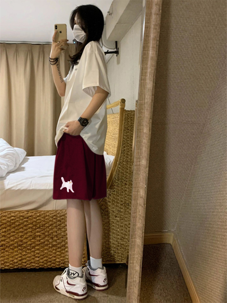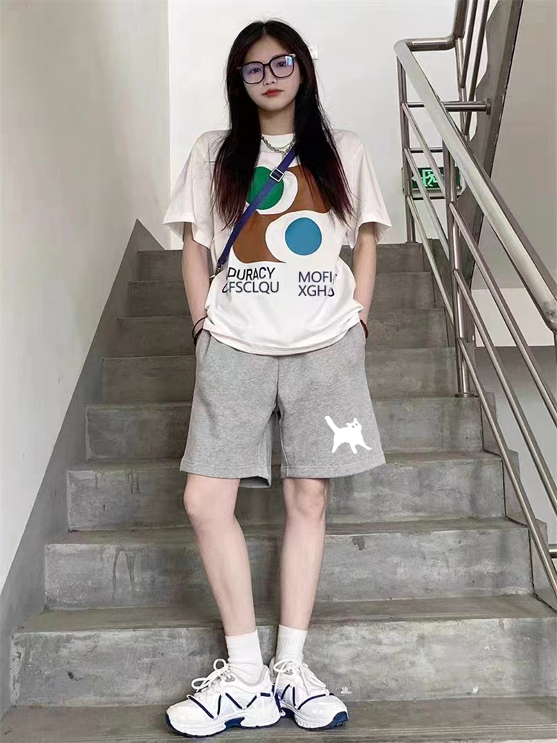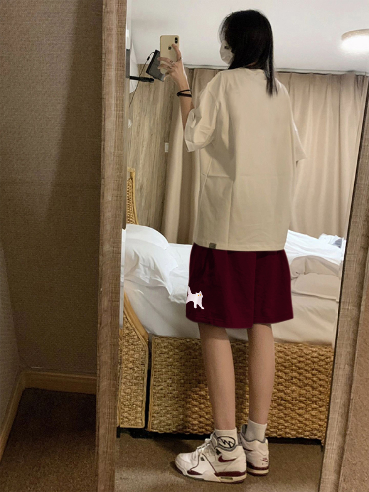 美式復古運動短褲女夏ins潮學生寬鬆顯瘦直筒闊腳薄款休閒五分褲