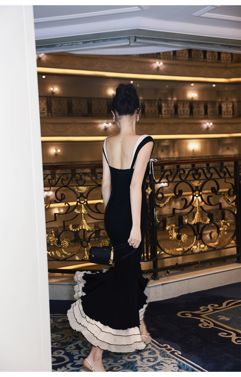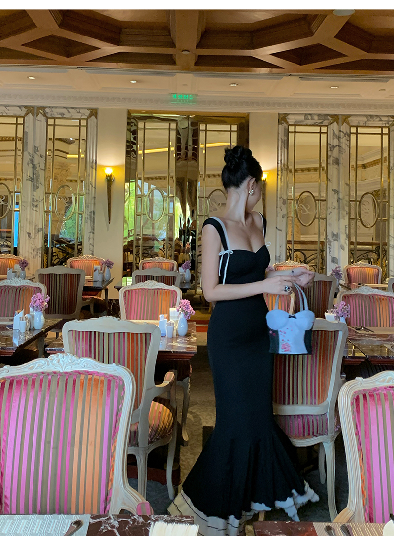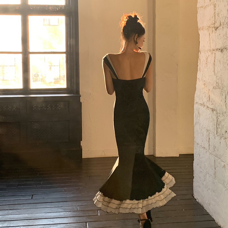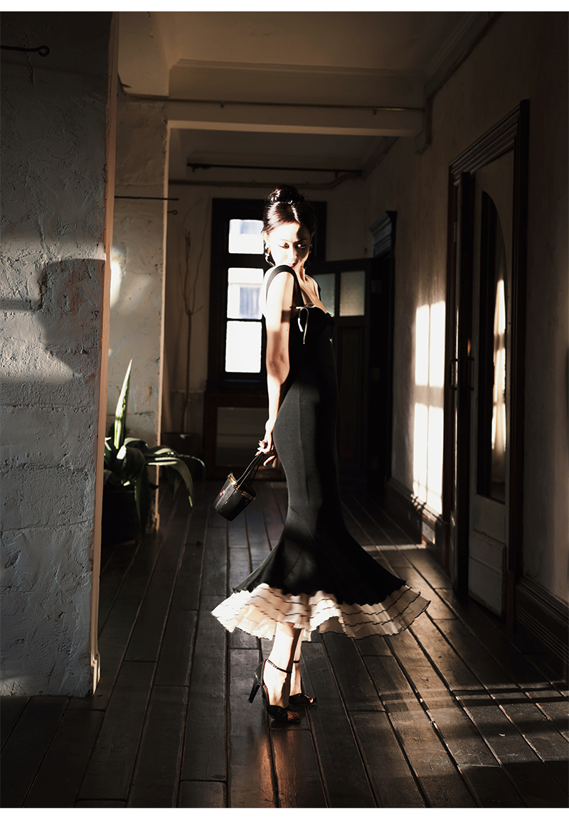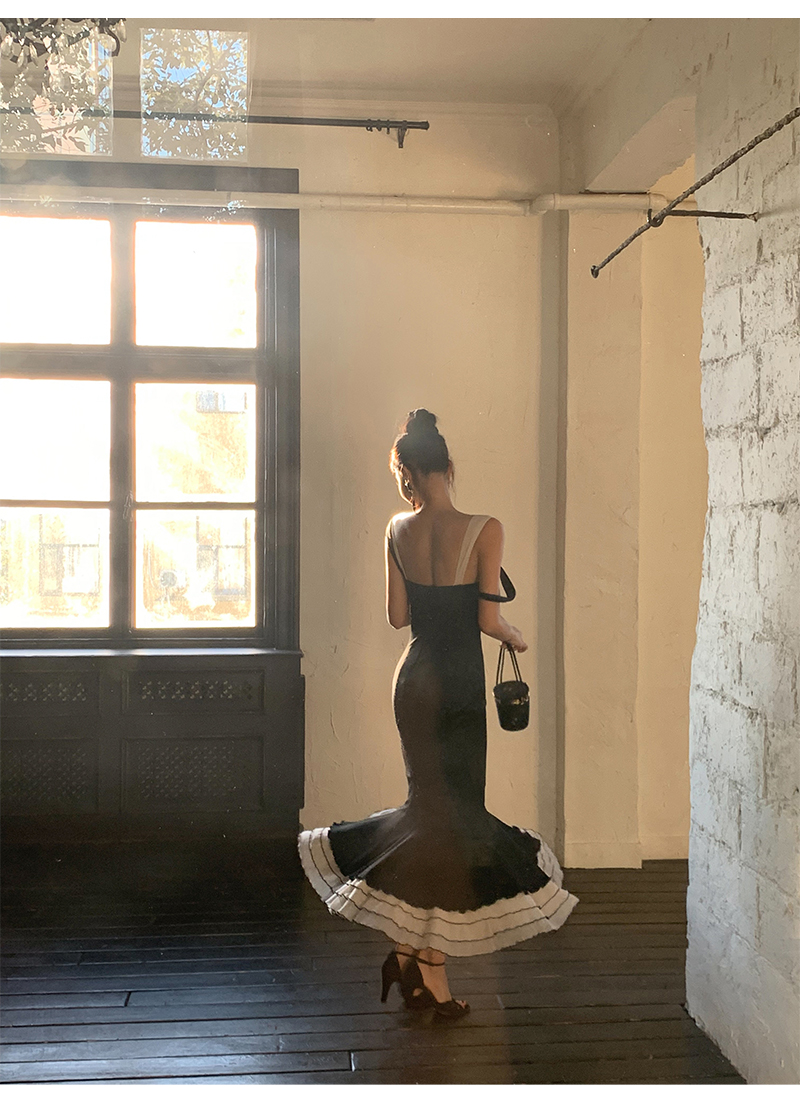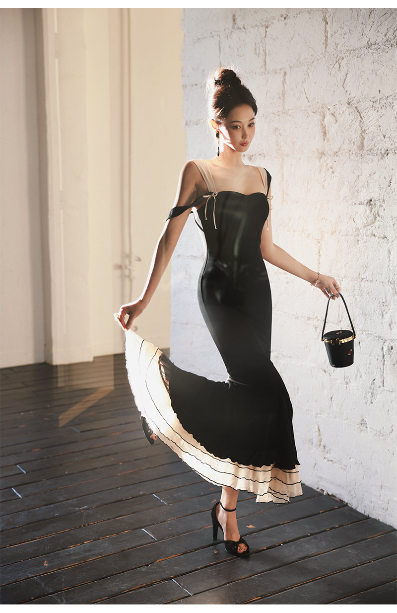 小麗XIAOLI黑夜頌歌醋酸針織吊帶包臀連衣長裙秋冬高級顯瘦魚尾裙
