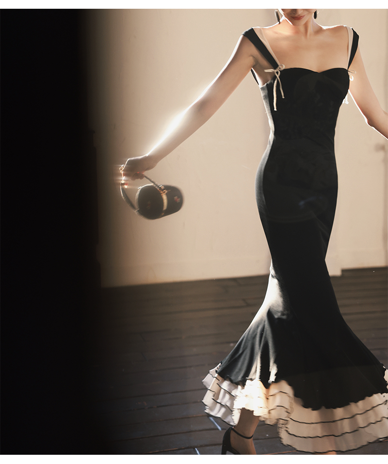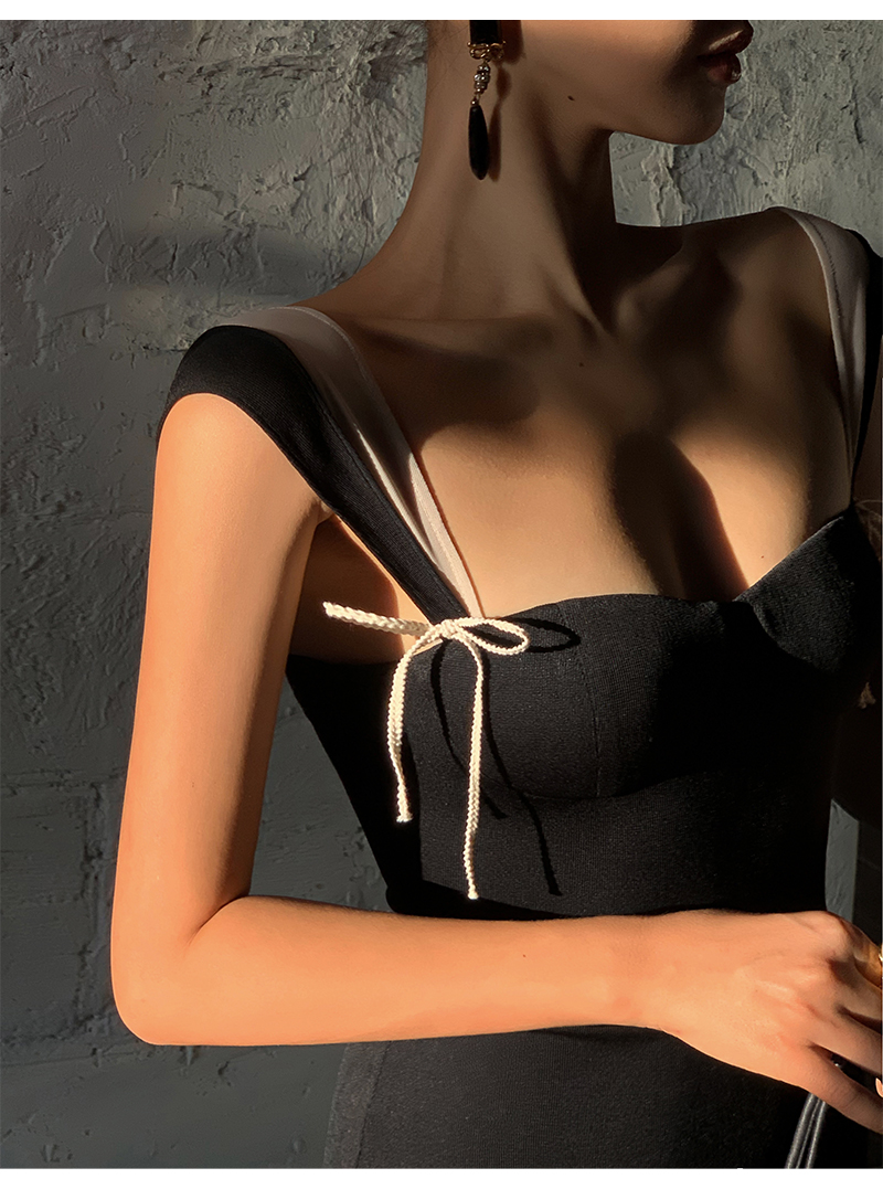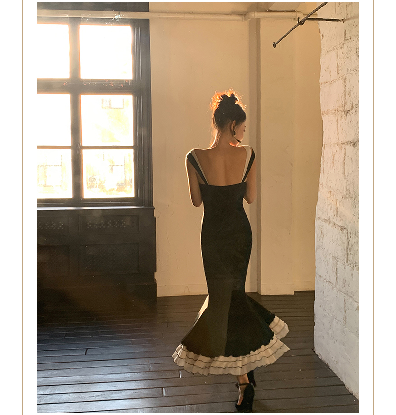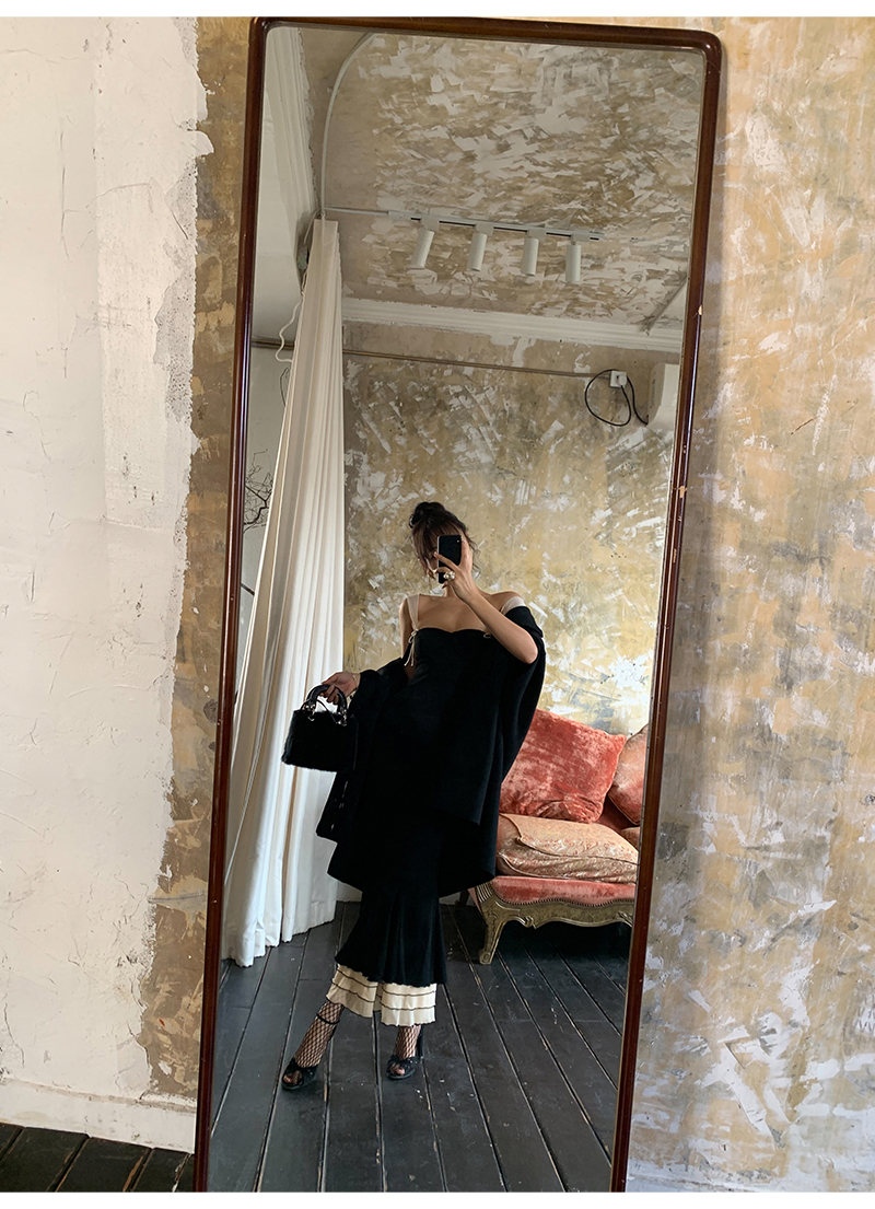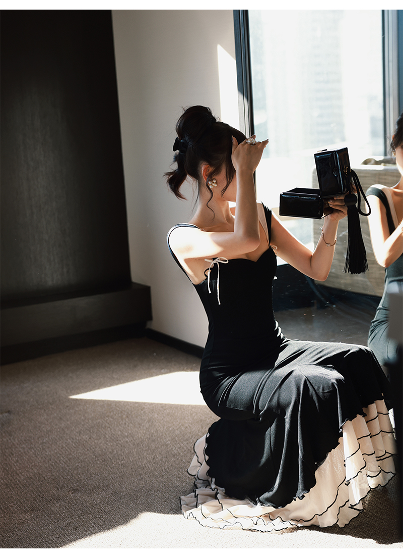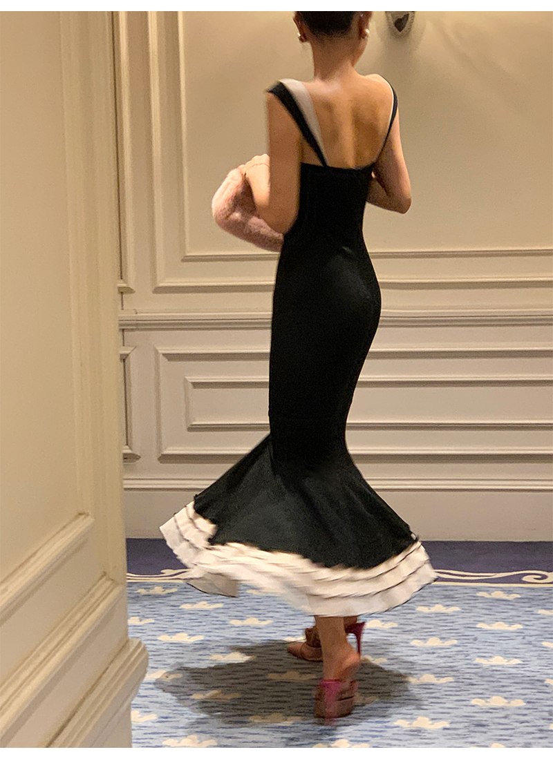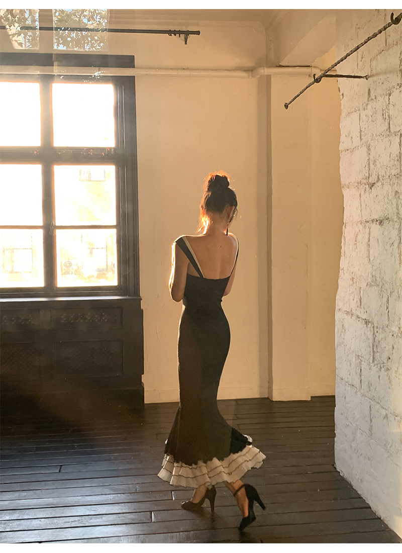 小麗XIAOLI黑夜頌歌醋酸針織吊帶包臀連衣長裙秋冬高級顯瘦魚尾裙