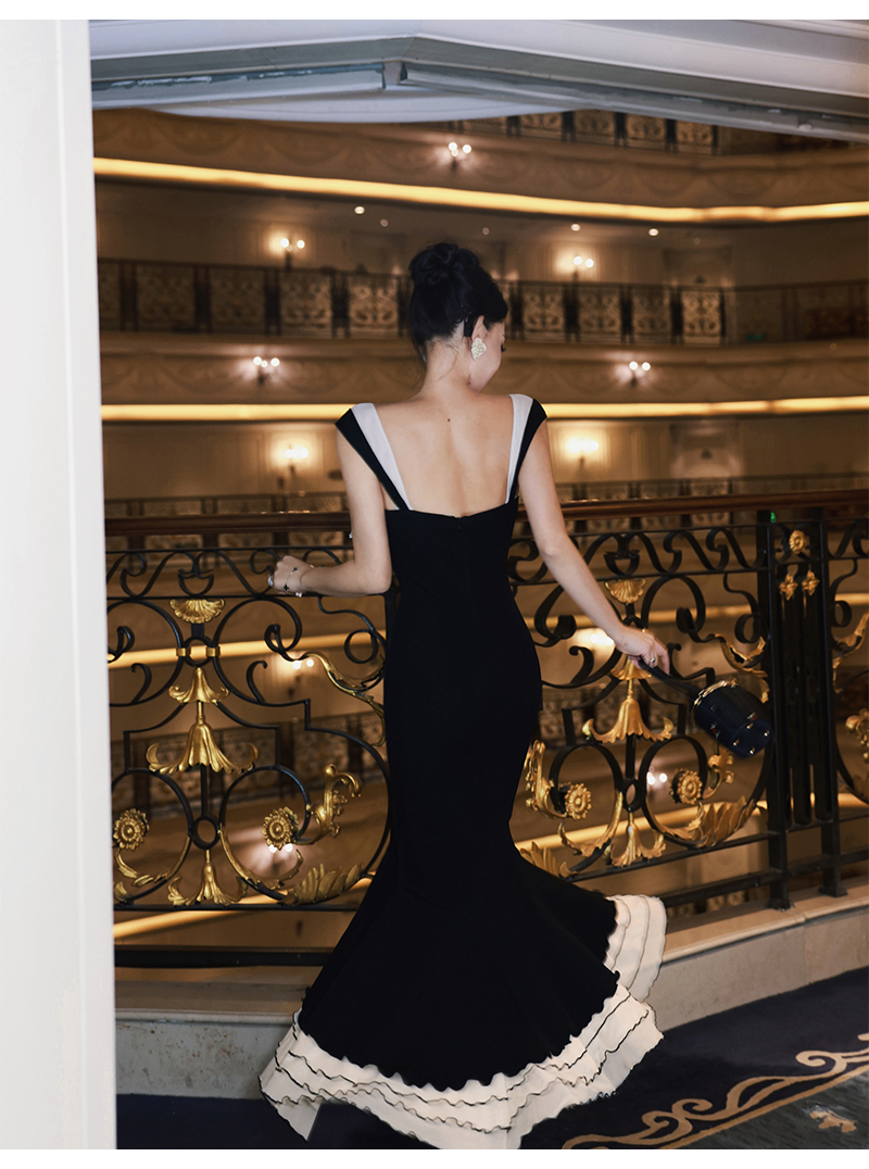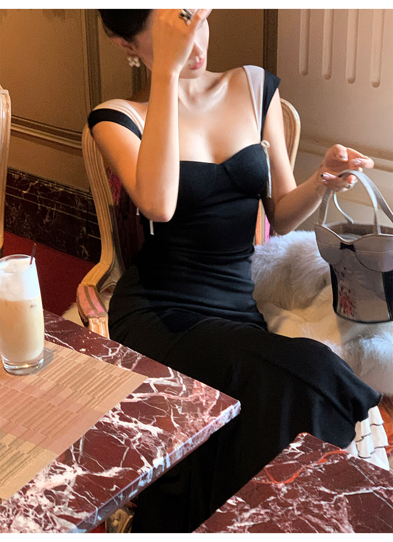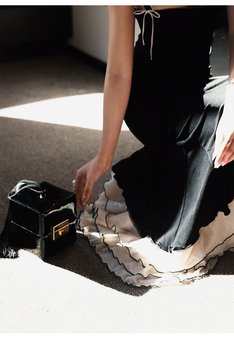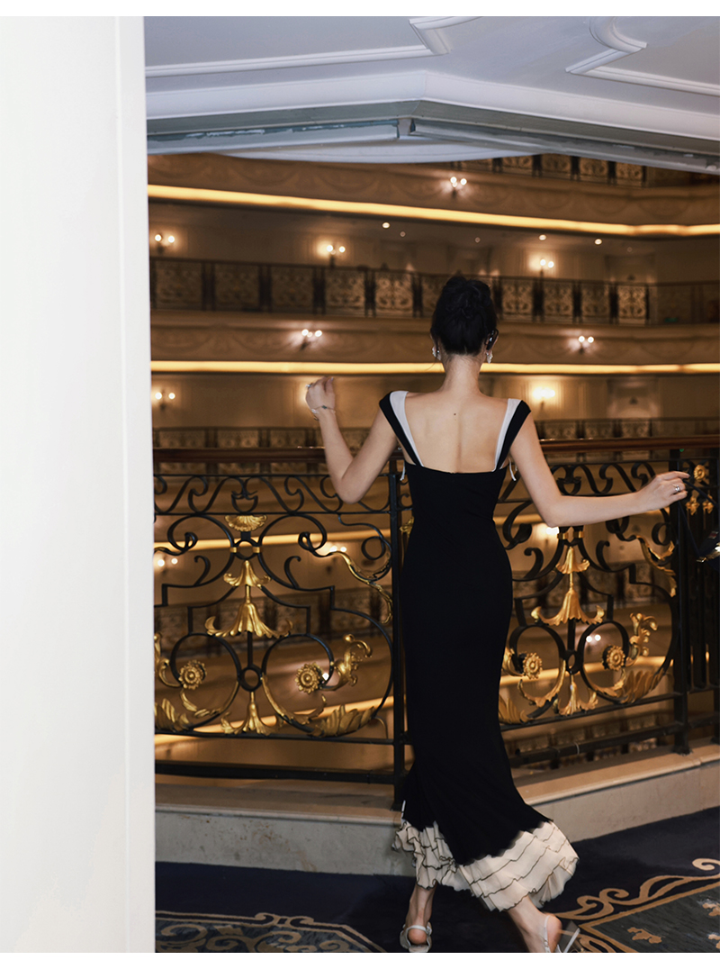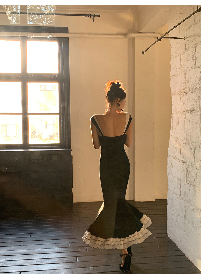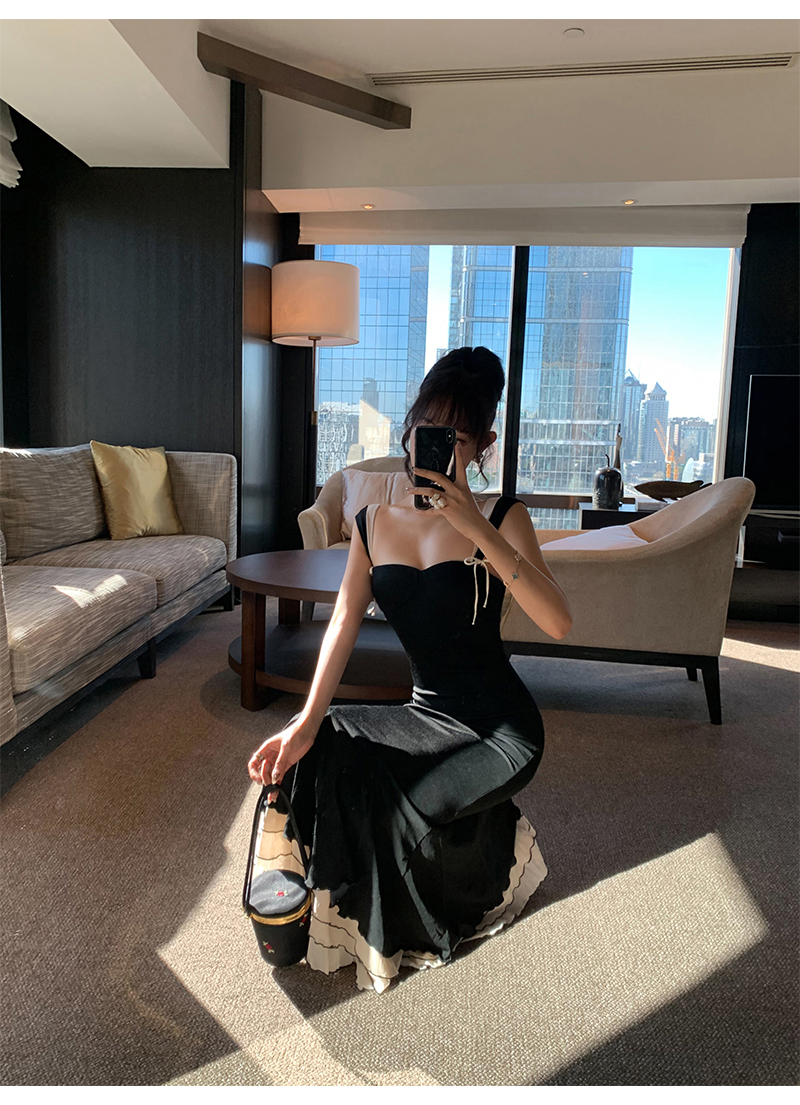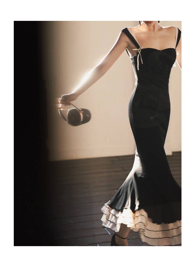 小麗XIAOLI黑夜頌歌醋酸針織吊帶包臀連衣長裙秋冬高級顯瘦魚尾裙