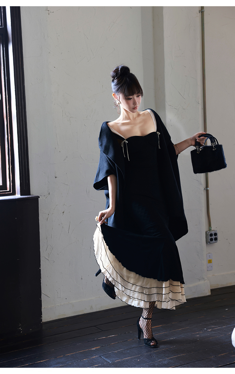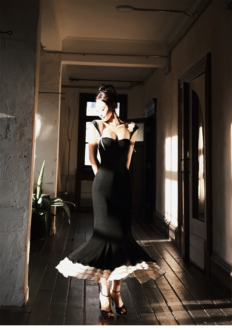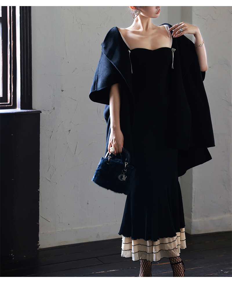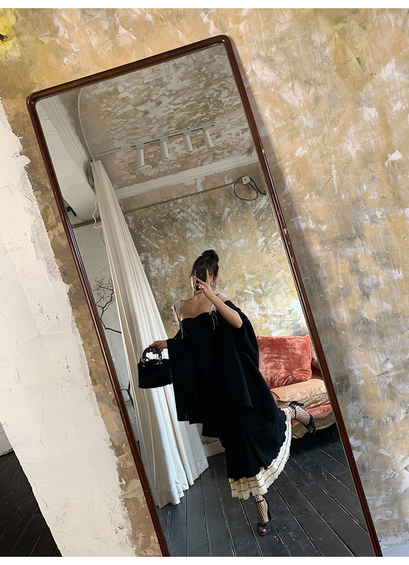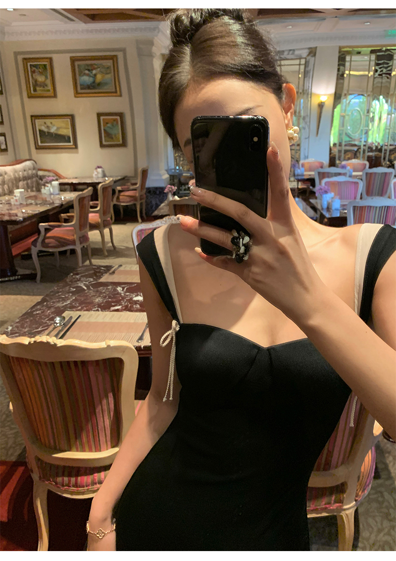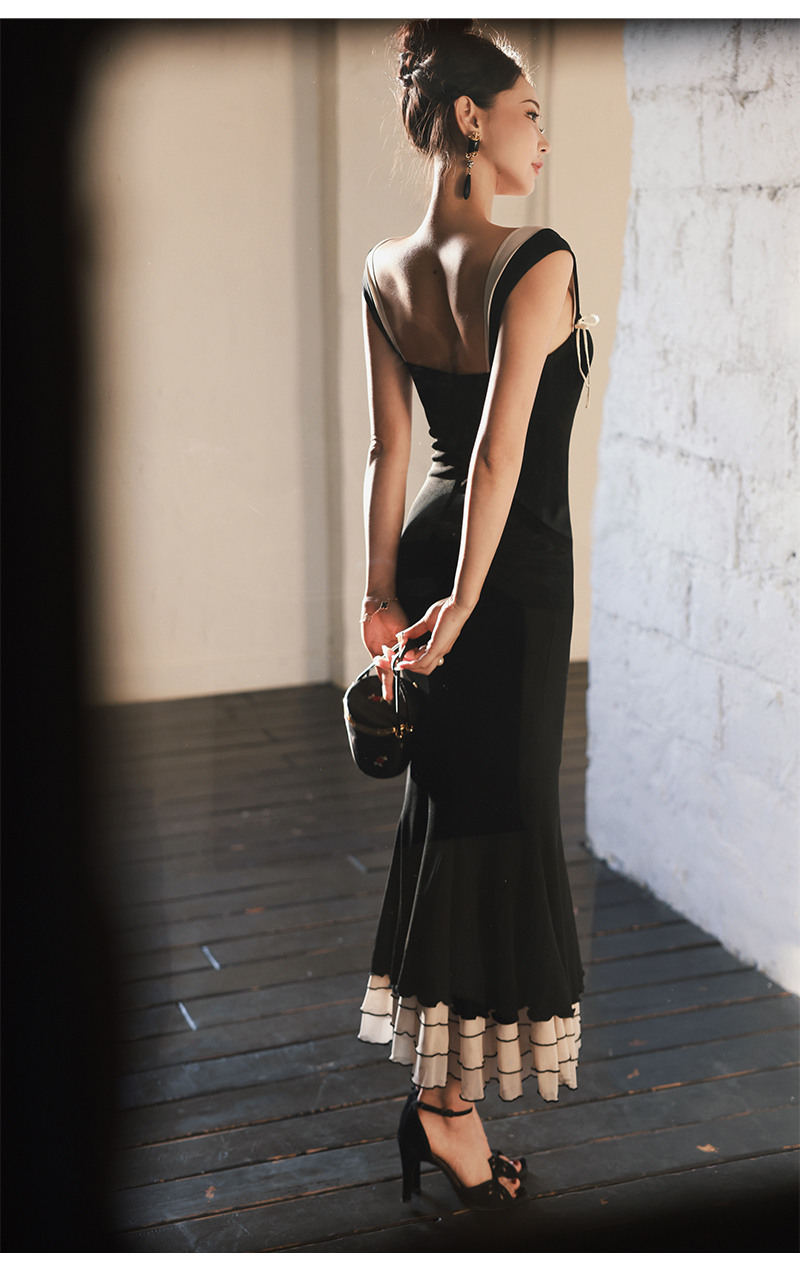 小麗XIAOLI黑夜頌歌醋酸針織吊帶包臀連衣長裙秋冬高級顯瘦魚尾裙