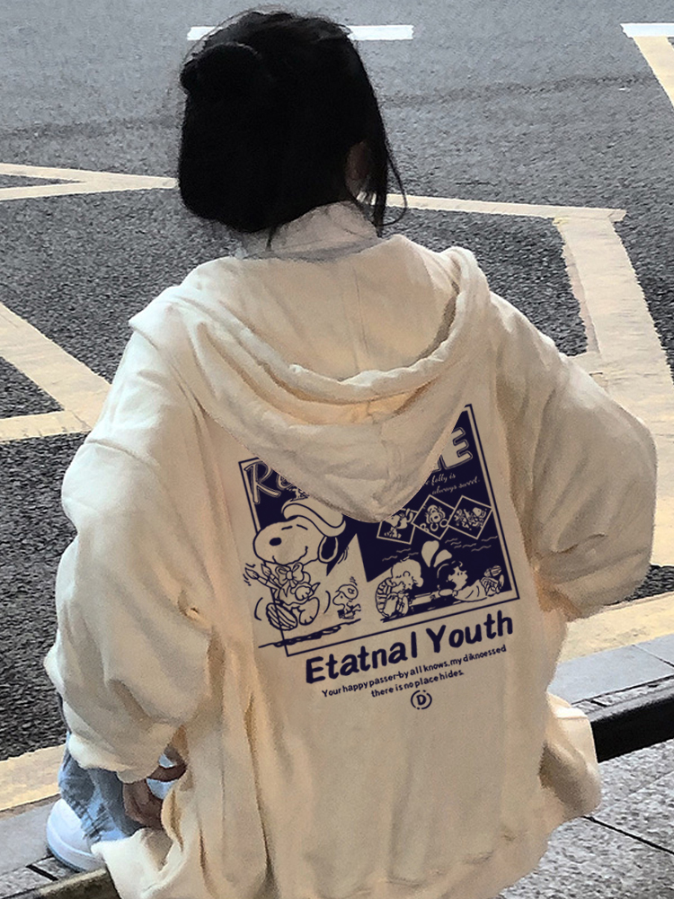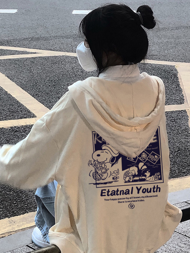 日系史努比連帽運動衫女春秋款設計感小眾寬鬆oversize外套拉鍊開衫