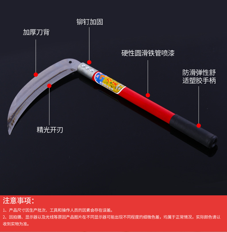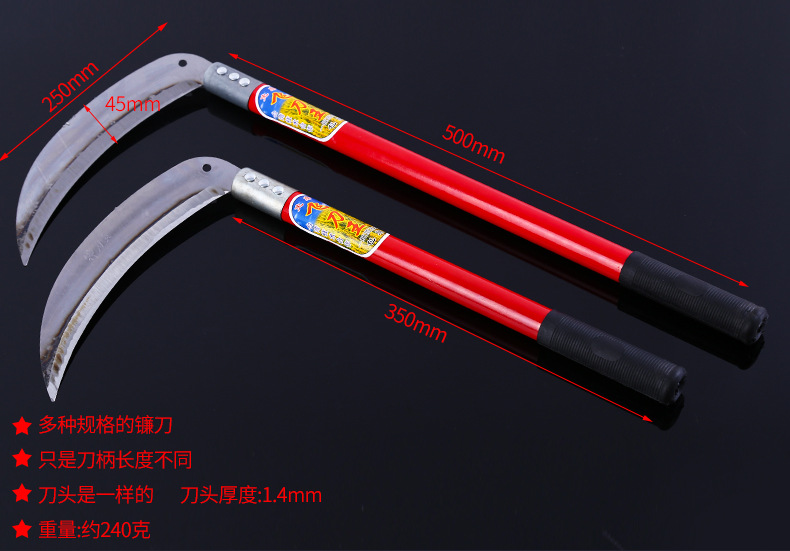 飞刀王 神刀王 直铁柄250镰刀割草长柄镰刀木柄镰刀农用批发